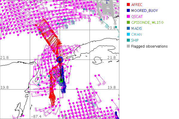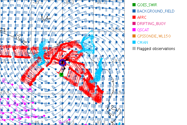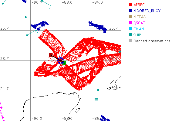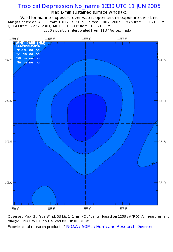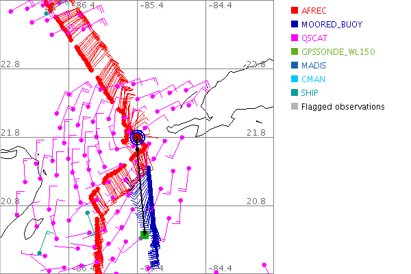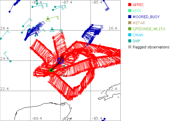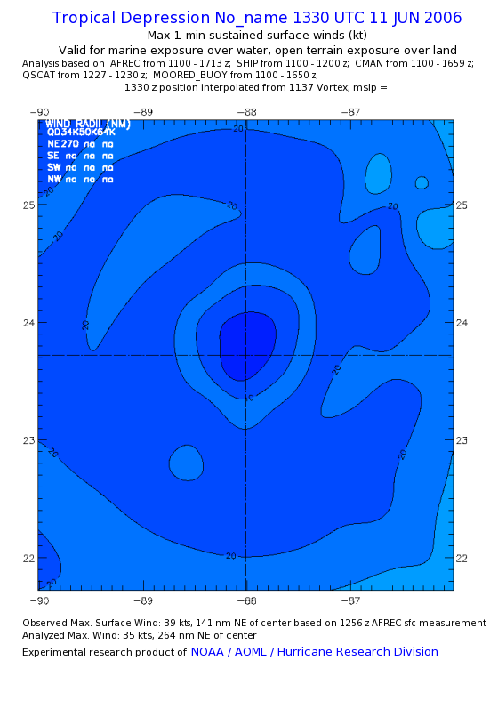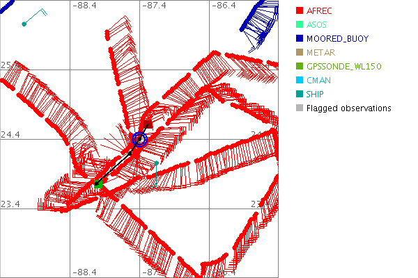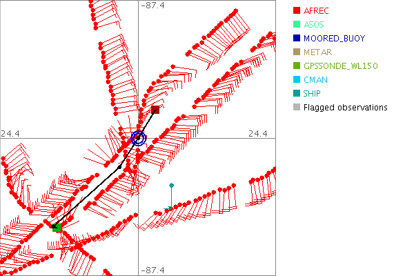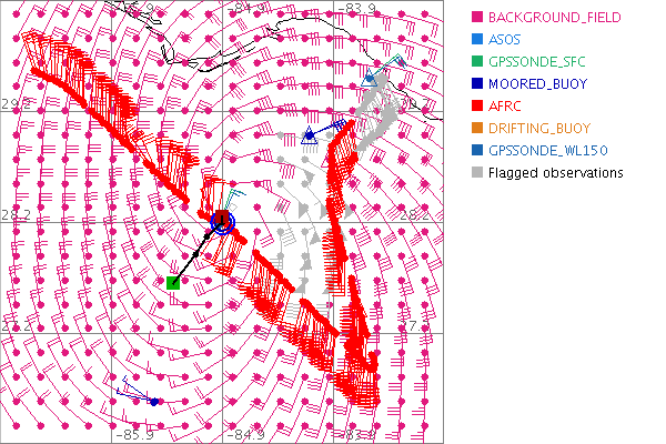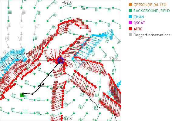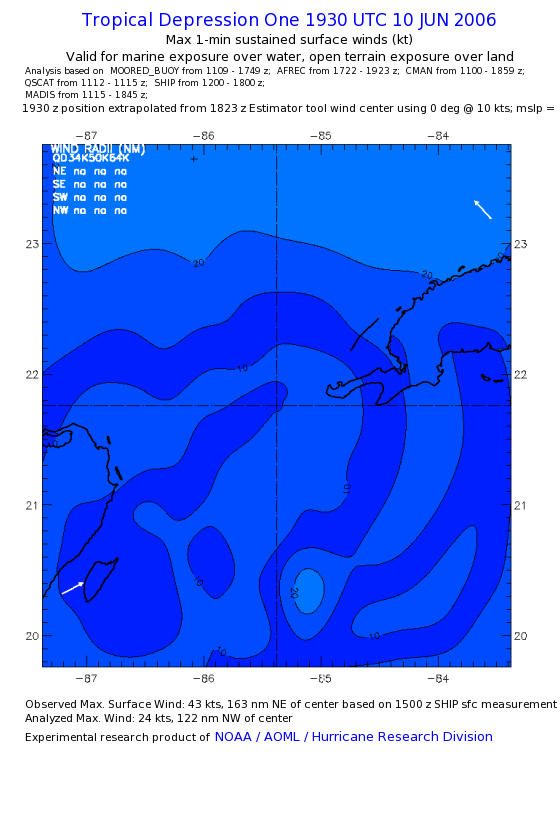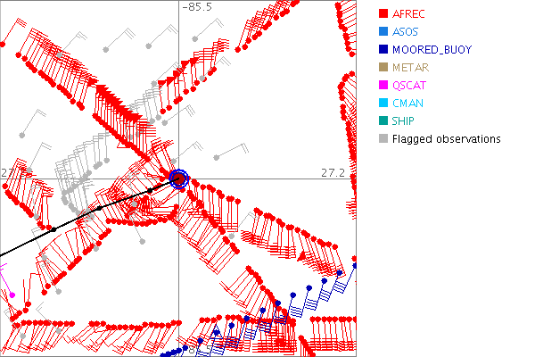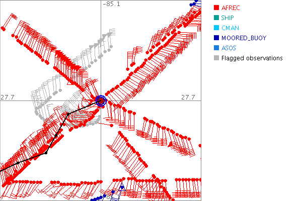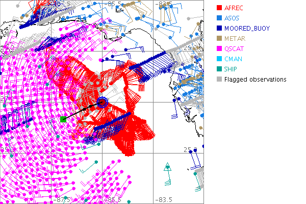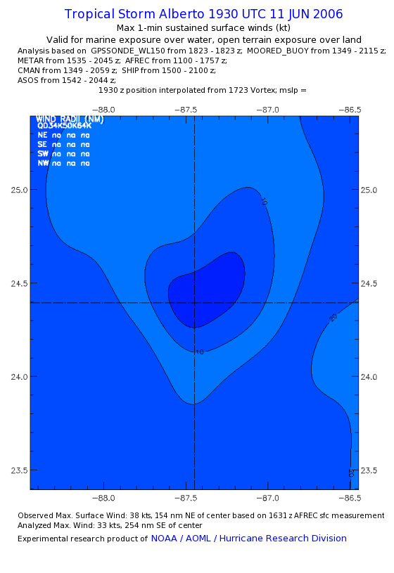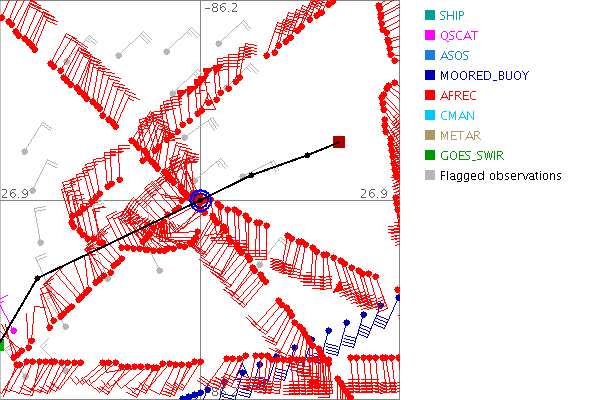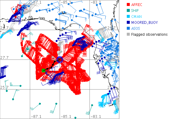 As a public service we are hosting the legacy H*wind archive that was formerly available through NOAA. Most of the archive was conducted in real-time so data collected after the analysis time were not available. Methods used to conduct the analyses evolved over the years. Grid spacing is on the order of 6 km and maximum domain size varies but is typically 8 x 8 degrees. There are known errors in some of the data coverage, mapping, and gridded products. For more information on the archive please go here. For realtime and post storm analysis of the 2014 season and a revised historical archive go here.