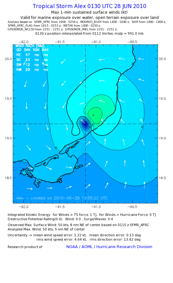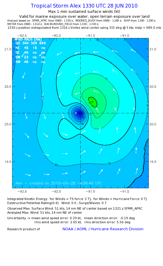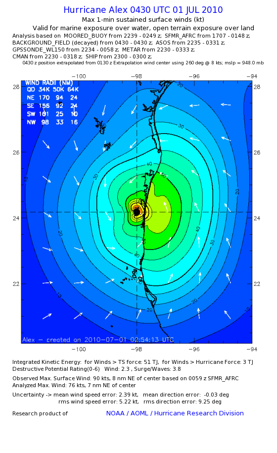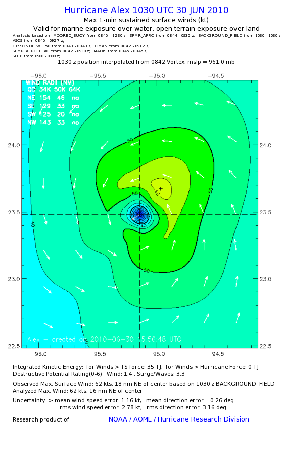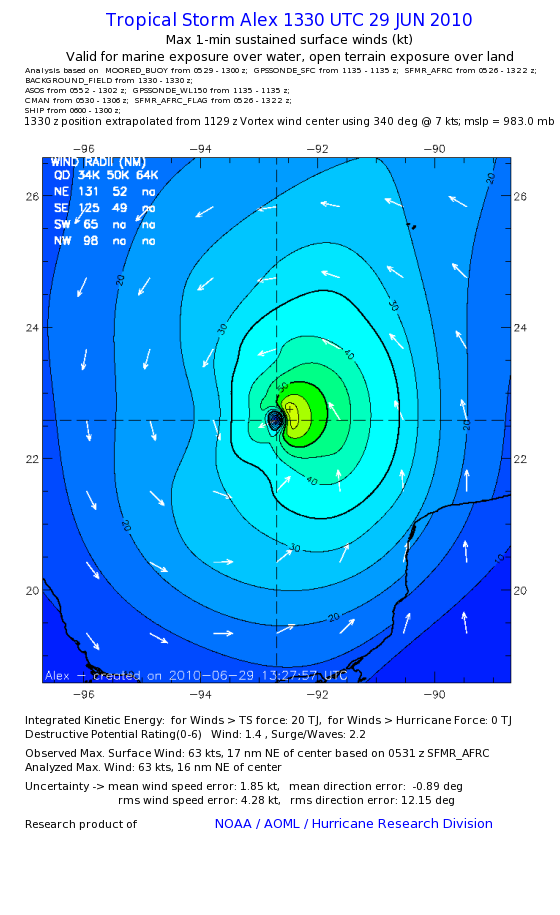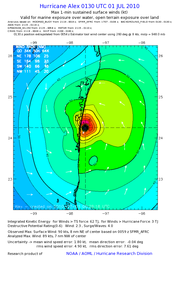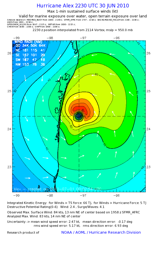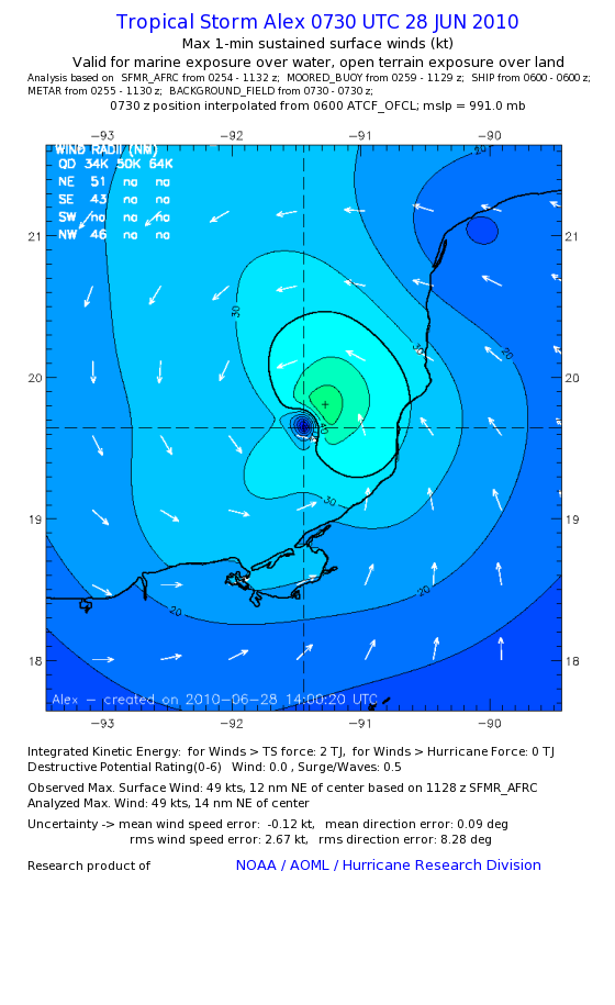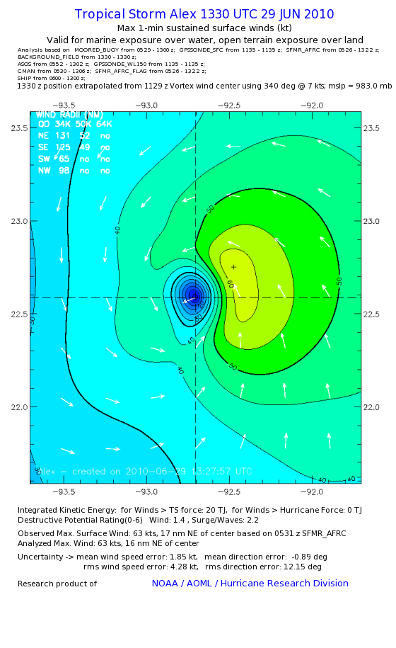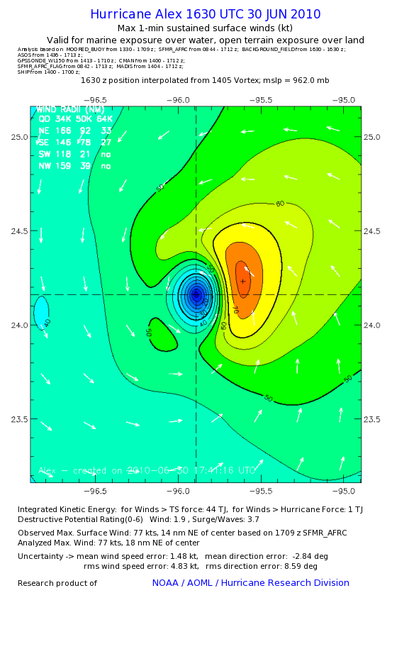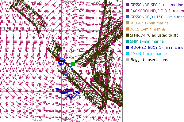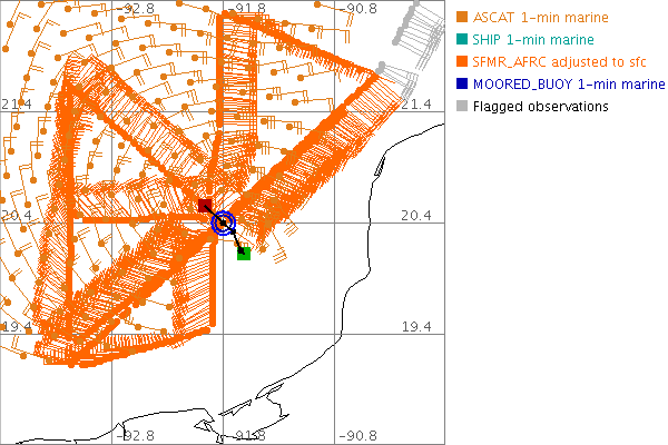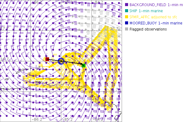 As a public service we are hosting the legacy H*wind archive that was formerly available through NOAA. Most of the archive was conducted in real-time so data collected after the analysis time were not available. Methods used to conduct the analyses evolved over the years. Grid spacing is on the order of 6 km and maximum domain size varies but is typically 8 x 8 degrees. There are known errors in some of the data coverage, mapping, and gridded products. For more information on the archive please go here. For realtime and post storm analysis of the 2014 season and a revised historical archive go here. |