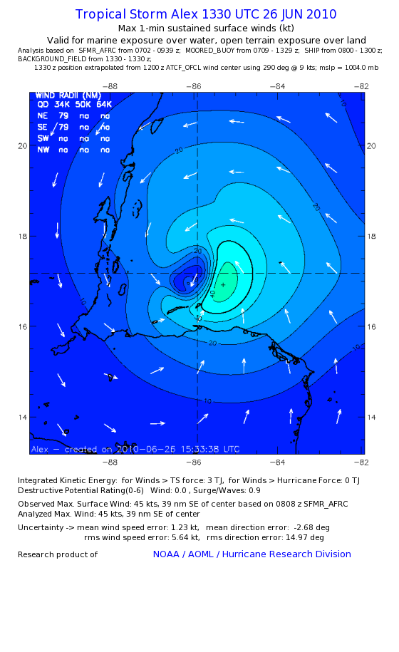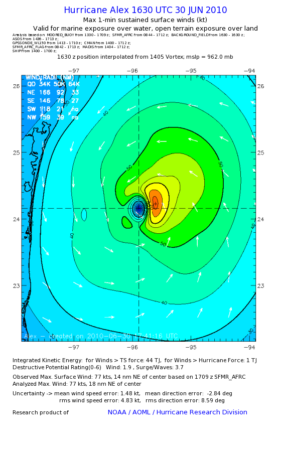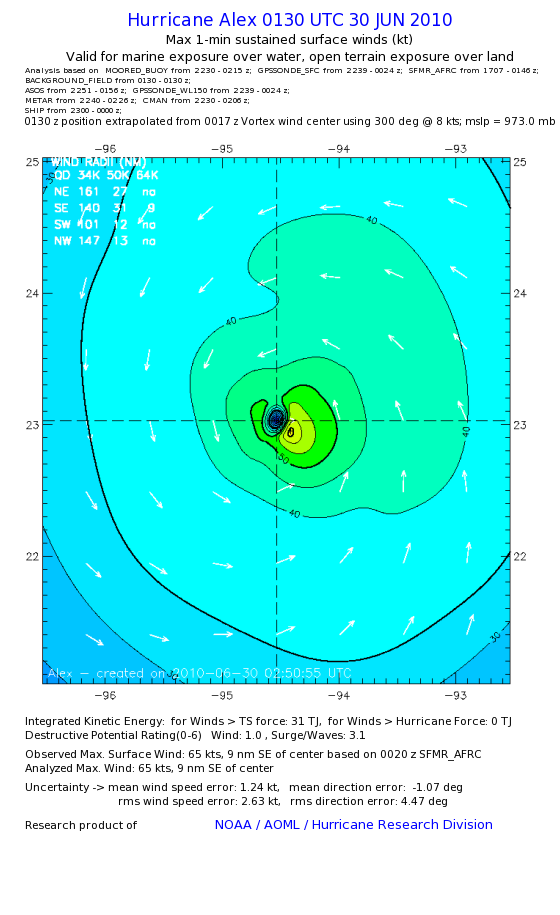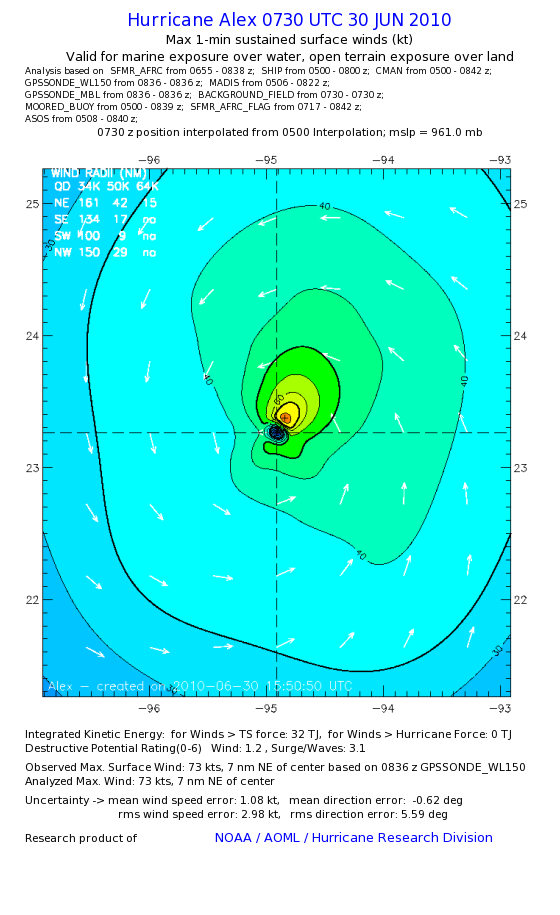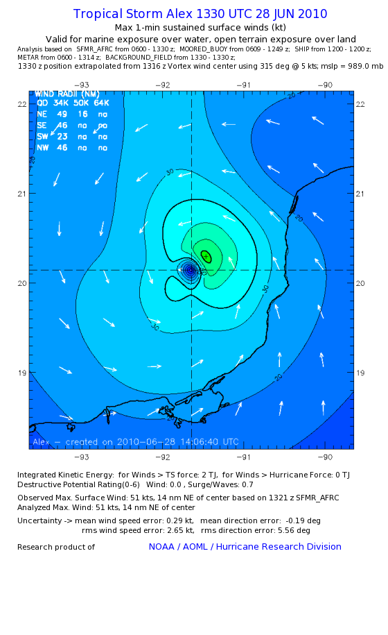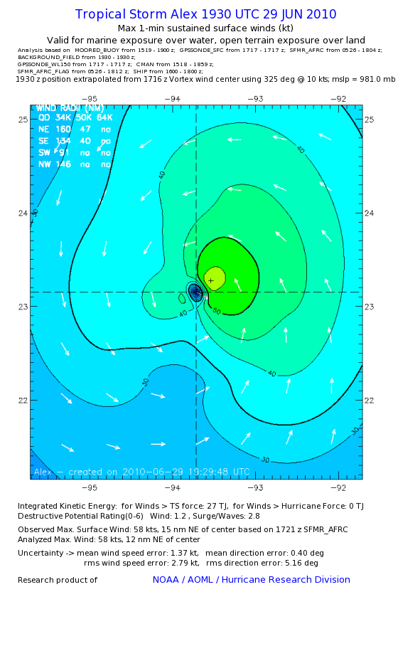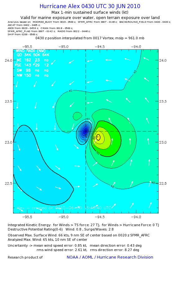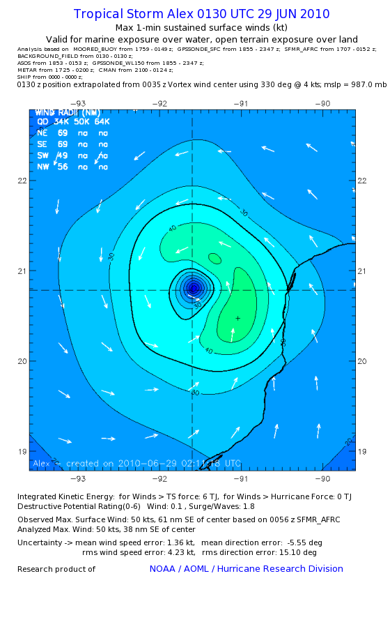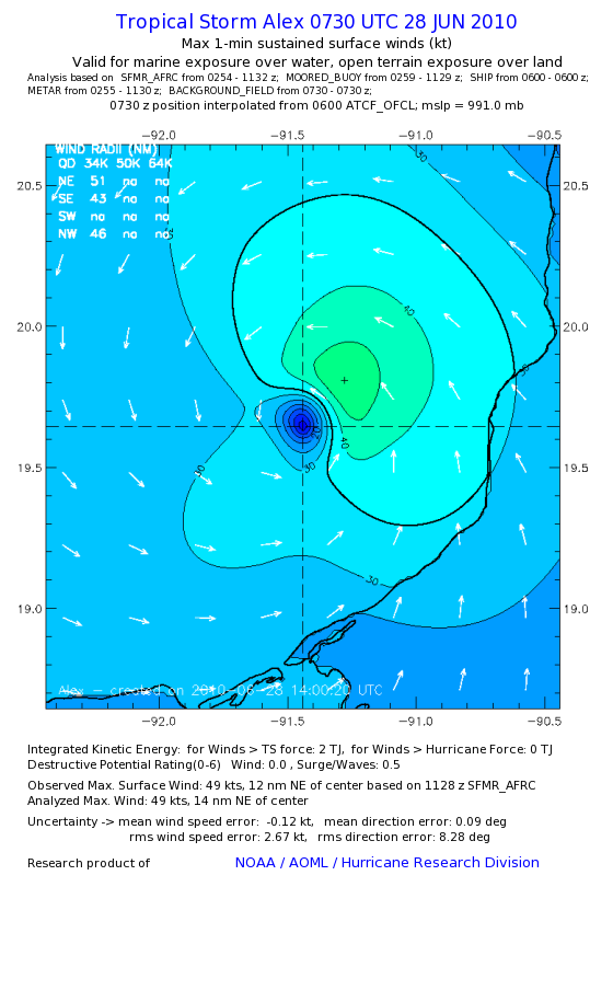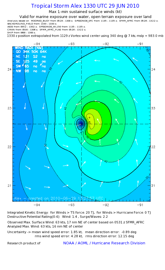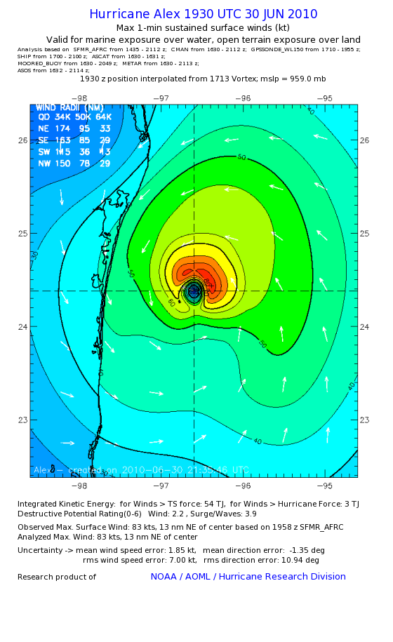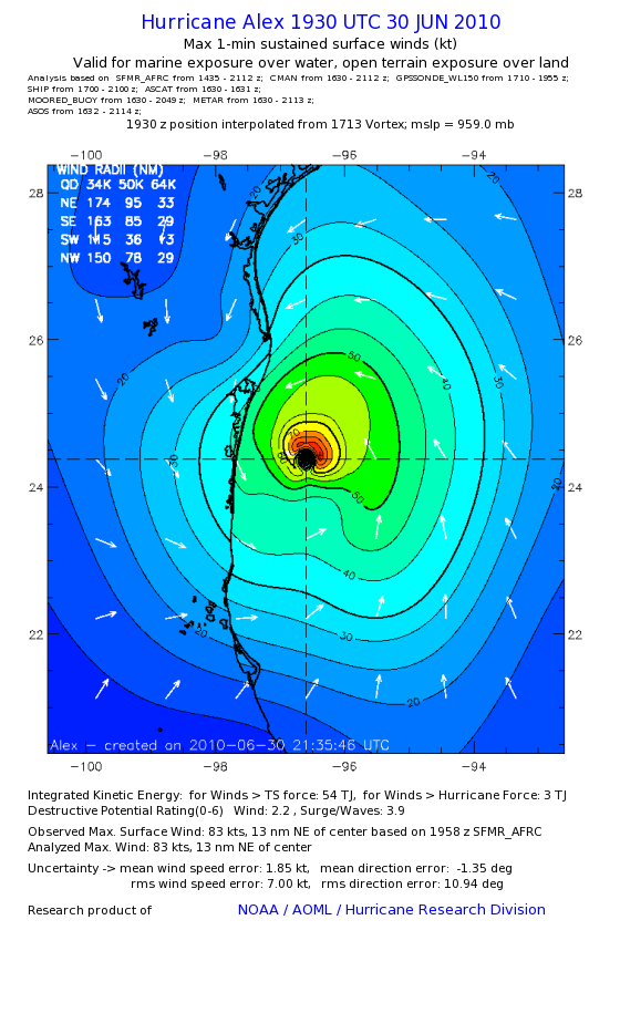 As a public service we are hosting the legacy H*wind archive that was formerly available through NOAA. Most of the archive was conducted in real-time so data collected after the analysis time were not available. Methods used to conduct the analyses evolved over the years. Grid spacing is on the order of 6 km and maximum domain size varies but is typically 8 x 8 degrees. There are known errors in some of the data coverage, mapping, and gridded products. For more information on the archive please go here. For realtime and post storm analysis of the 2014 season and a revised historical archive go here. |