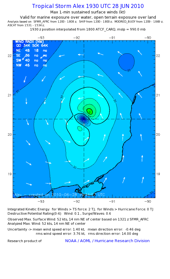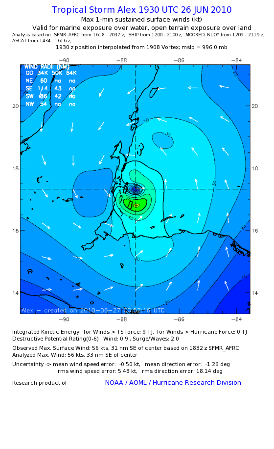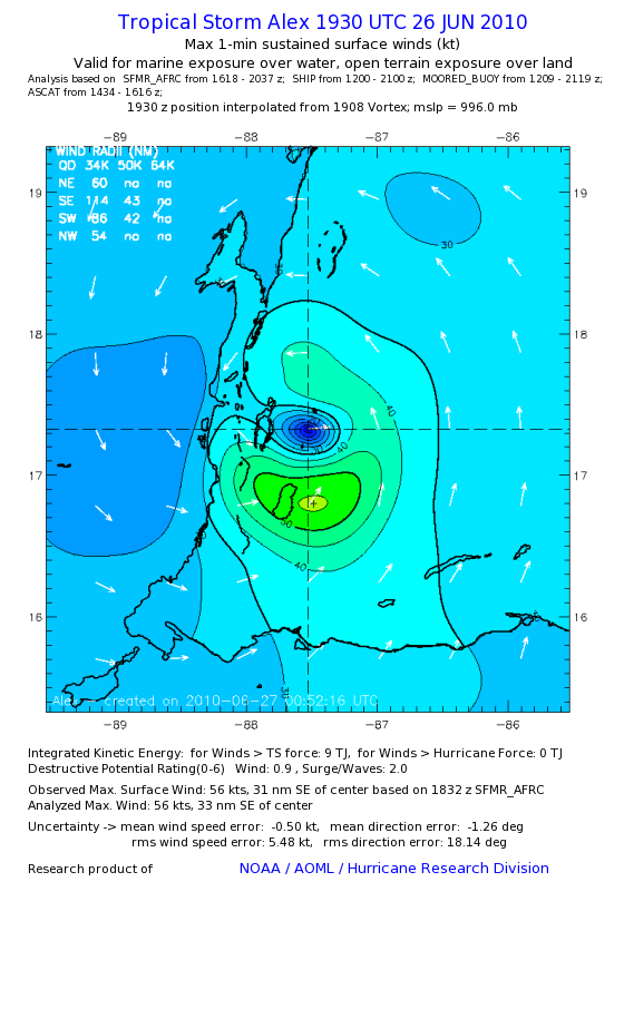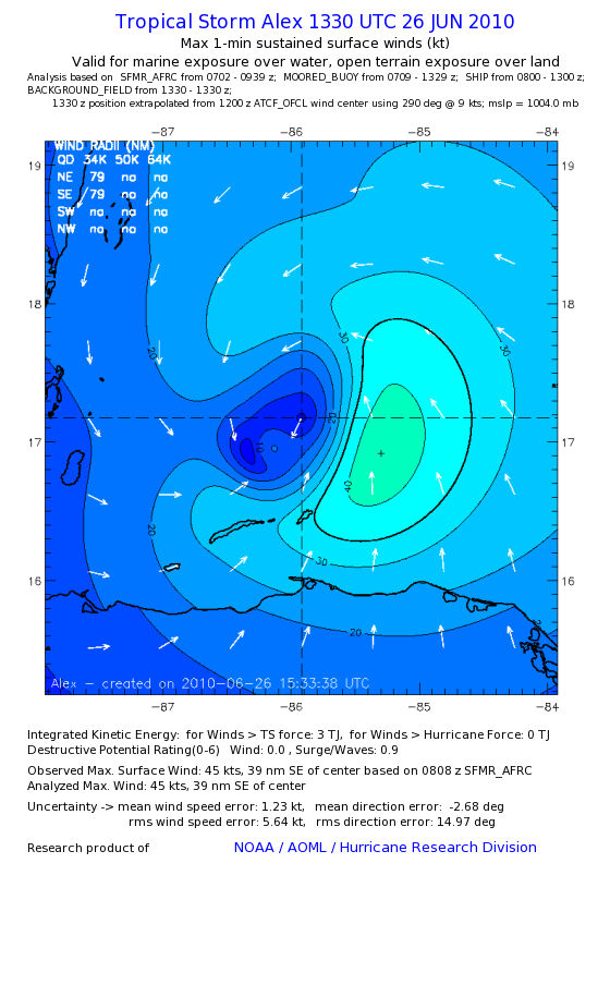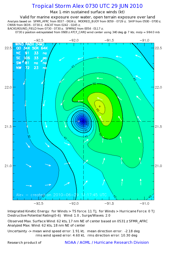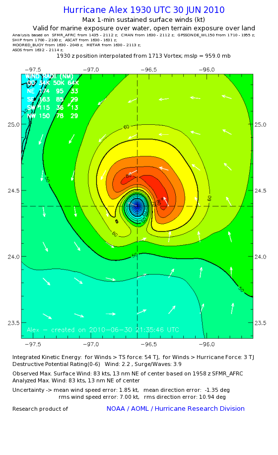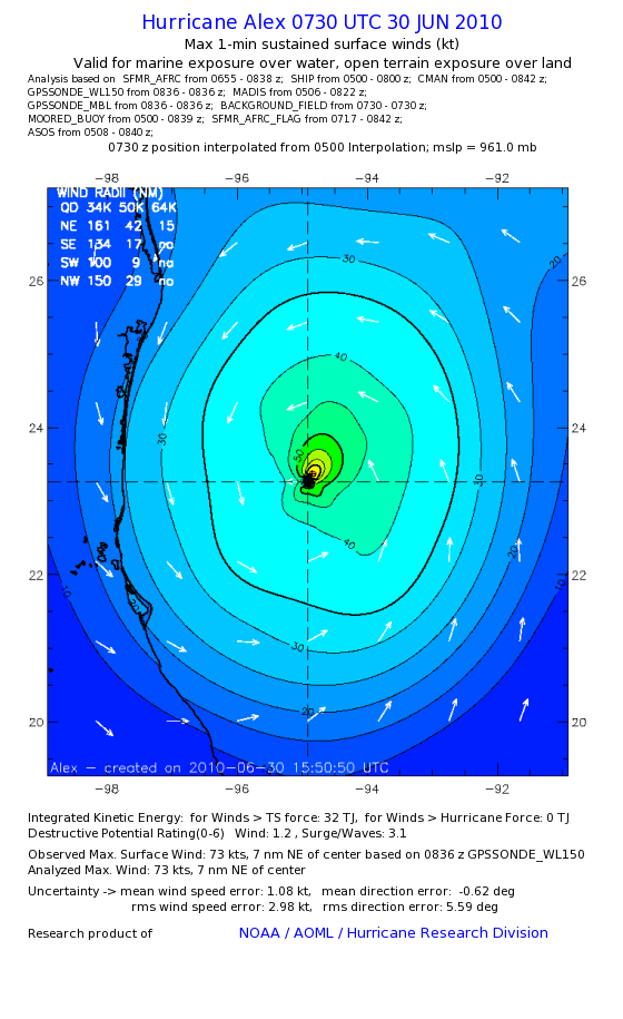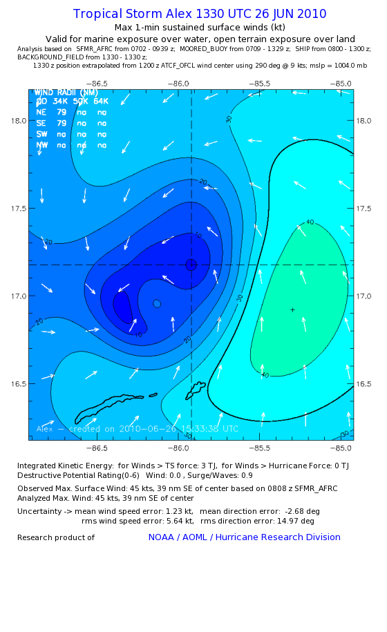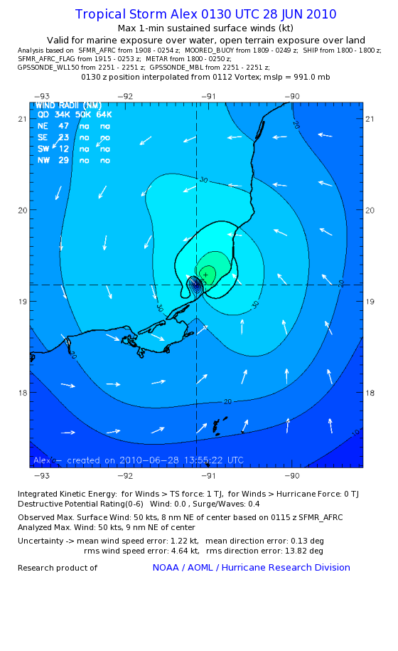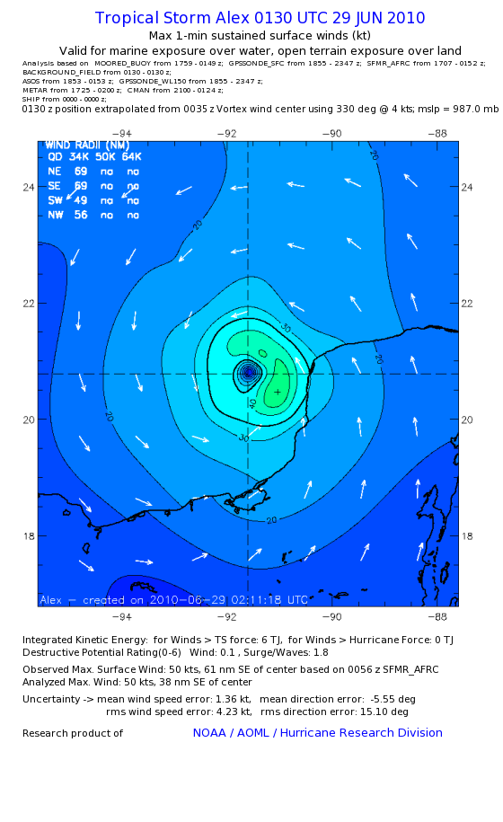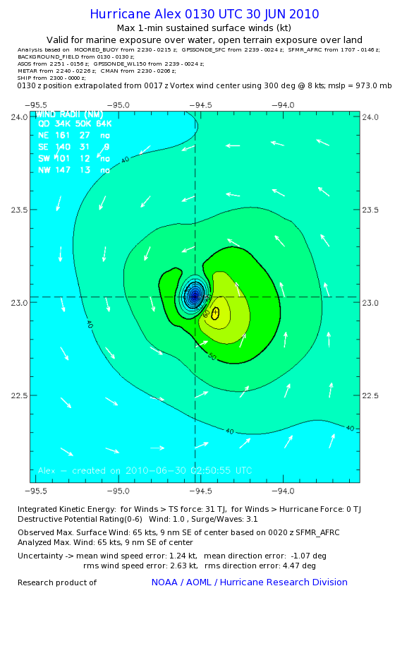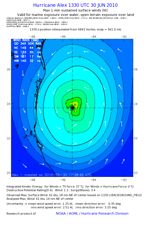 As a public service we are hosting the legacy H*wind archive that was formerly available through NOAA. Most of the archive was conducted in real-time so data collected after the analysis time were not available. Methods used to conduct the analyses evolved over the years. Grid spacing is on the order of 6 km and maximum domain size varies but is typically 8 x 8 degrees. There are known errors in some of the data coverage, mapping, and gridded products. For more information on the archive please go here. For realtime and post storm analysis of the 2014 season and a revised historical archive go here. |