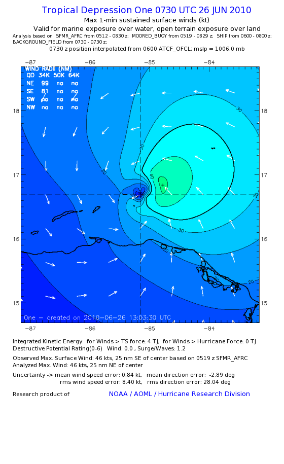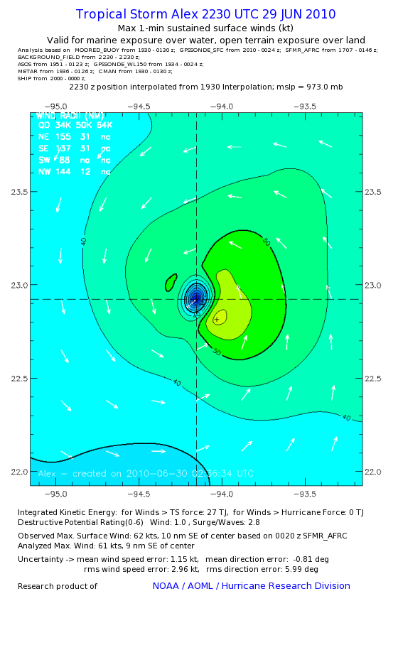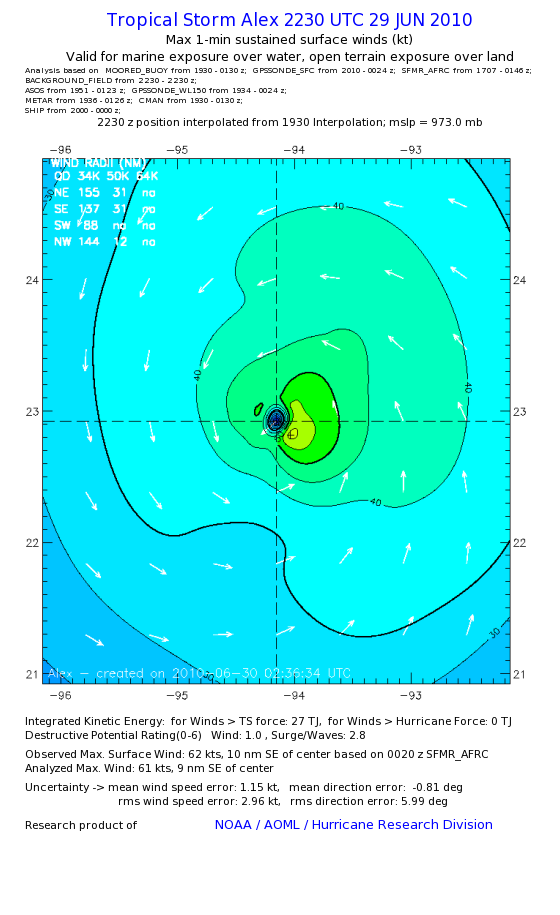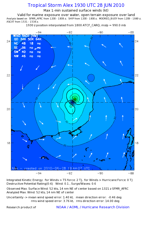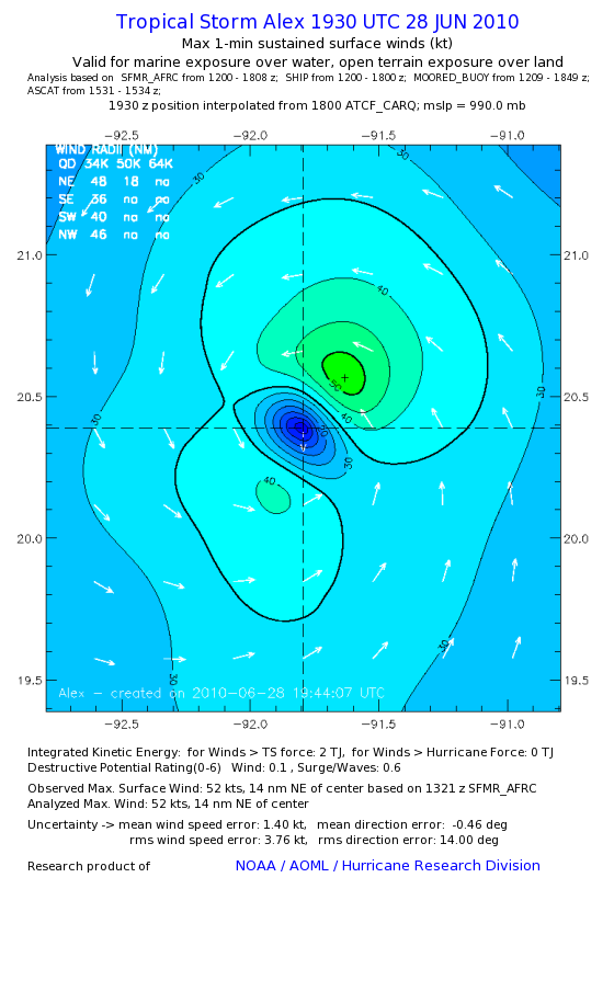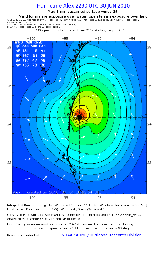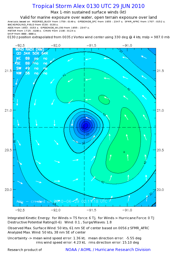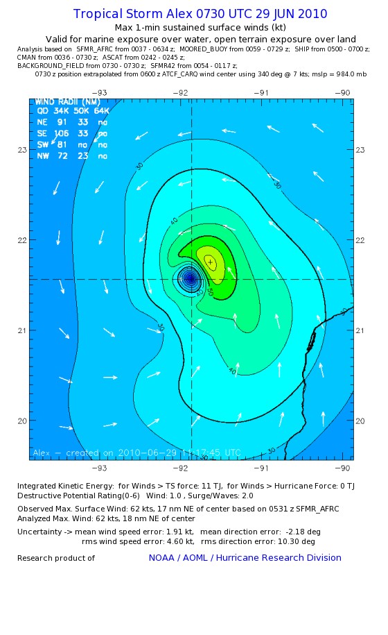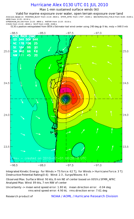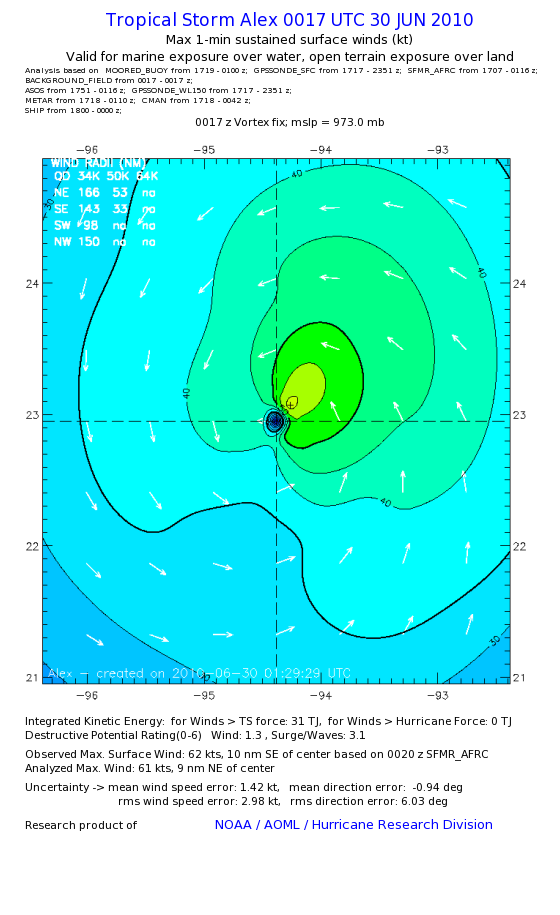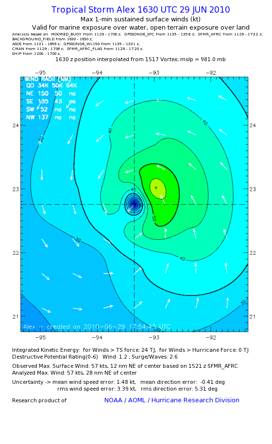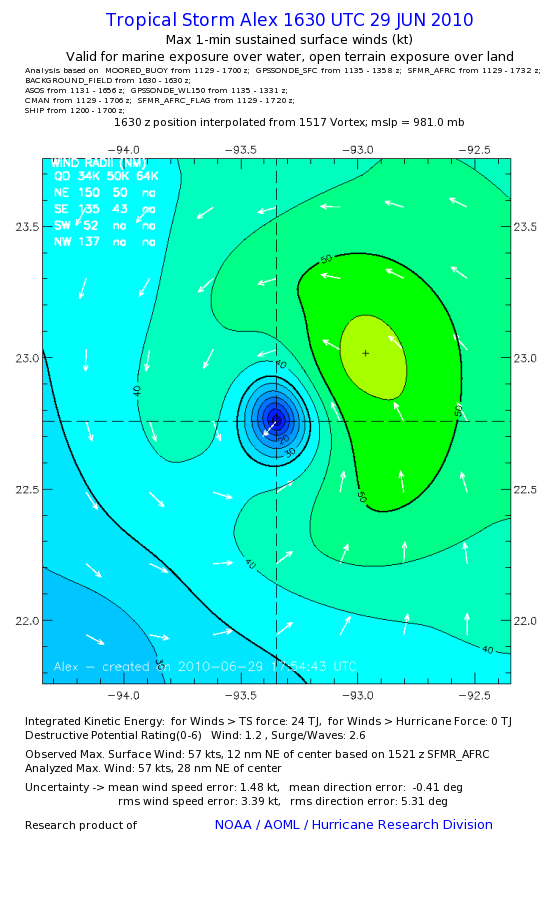 As a public service we are hosting the legacy H*wind archive that was formerly available through NOAA. Most of the archive was conducted in real-time so data collected after the analysis time were not available. Methods used to conduct the analyses evolved over the years. Grid spacing is on the order of 6 km and maximum domain size varies but is typically 8 x 8 degrees. There are known errors in some of the data coverage, mapping, and gridded products. For more information on the archive please go here. For realtime and post storm analysis of the 2014 season and a revised historical archive go here. |