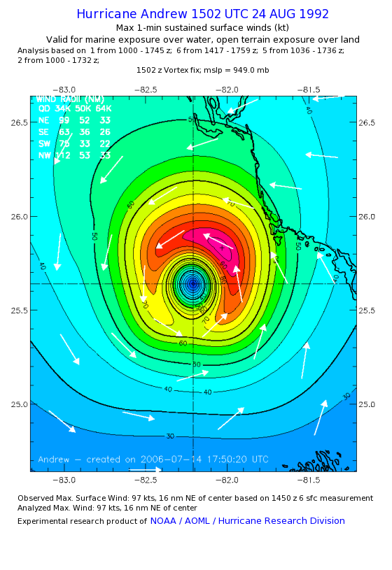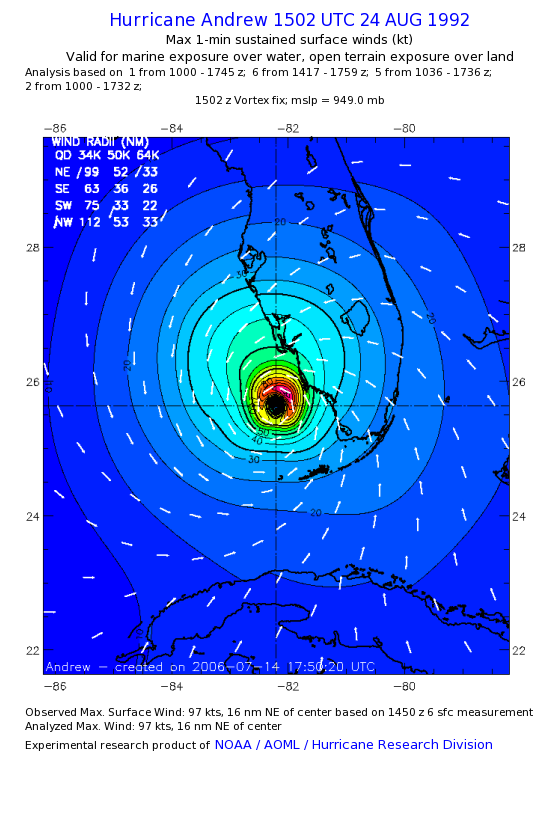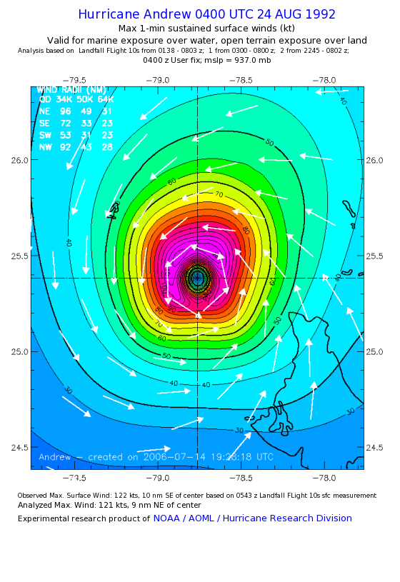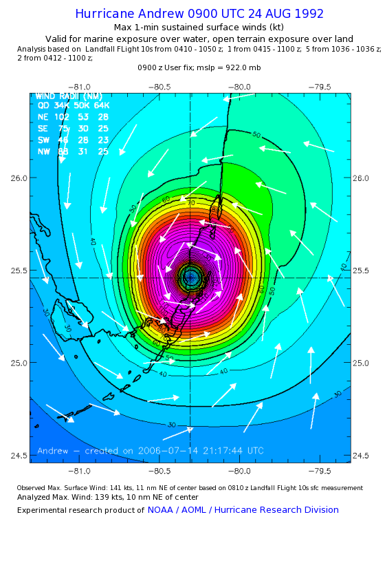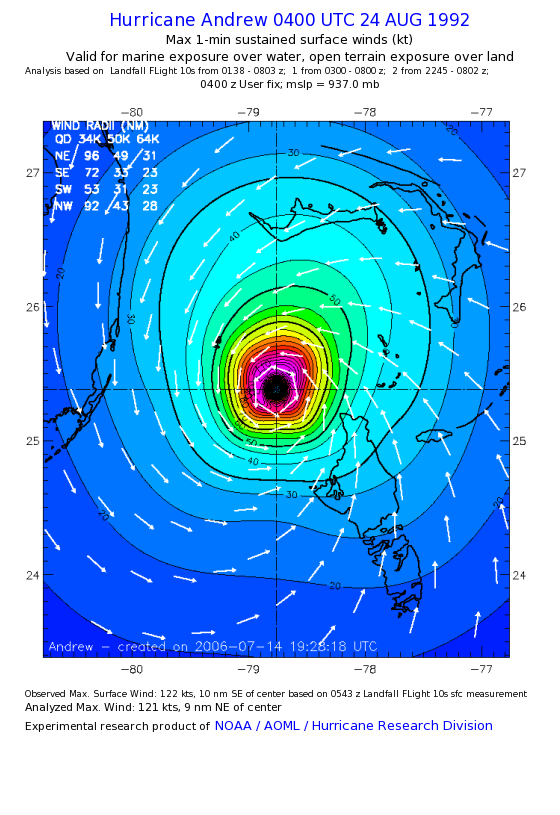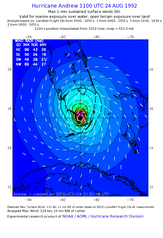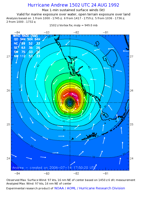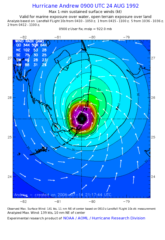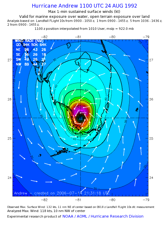 For high-resolution commercial quality Andrew post storm wind analyses go here. (For Hwind Subscribers) |