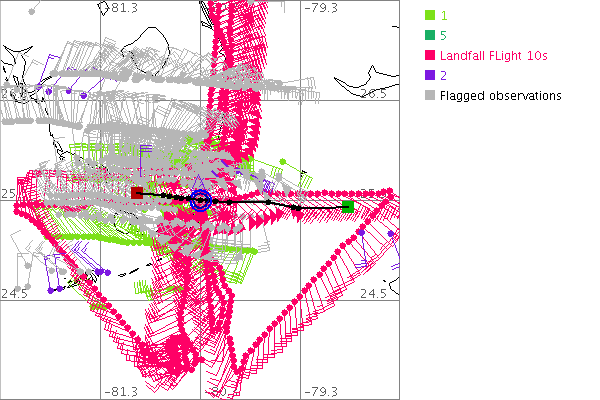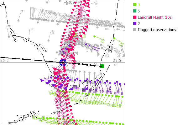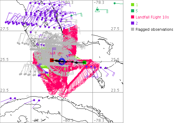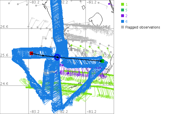 As a public service we are hosting the legacy H*wind archive that was formerly available through NOAA. Most of the archive was conducted in real-time so data collected after the analysis time were not available. Methods used to conduct the analyses evolved over the years. Grid spacing is on the order of 6 km and maximum domain size varies but is typically 8 x 8 degrees. There are known errors in some of the data coverage, mapping, and gridded products. For more information on the archive please go here. For realtime and post storm analysis of the 2014 season and a revised historical archive go here.