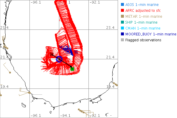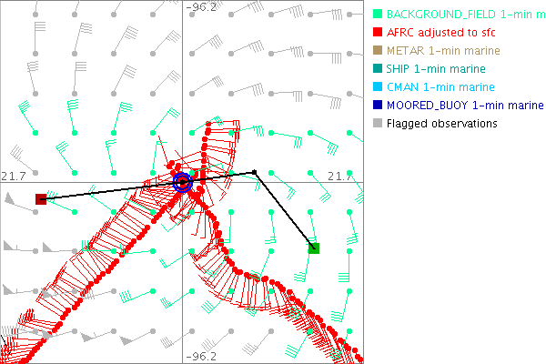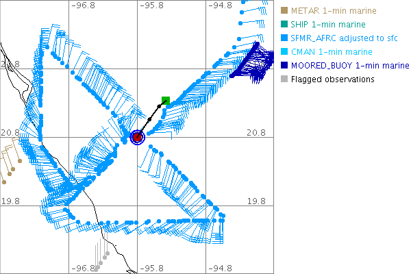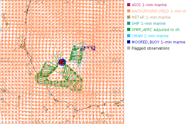 As a public service we are hosting the legacy H*wind archive that was formerly available through NOAA. Most of the archive was conducted in real-time so data collected after the analysis time were not available. Methods used to conduct the analyses evolved over the years. Grid spacing is on the order of 6 km and maximum domain size varies but is typically 8 x 8 degrees. There are known errors in some of the data coverage, mapping, and gridded products. For more information on the archive please go here. For realtime and post storm analysis of the 2014 season and a revised historical archive go here.
