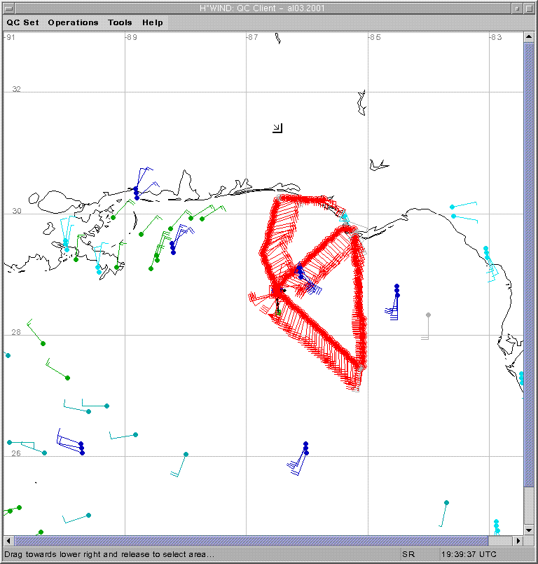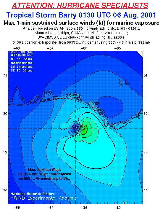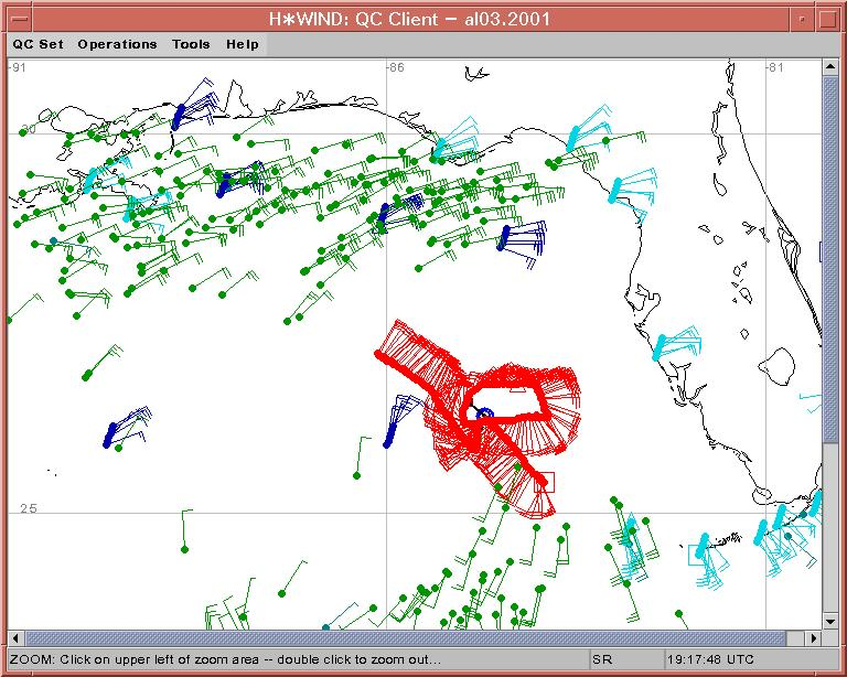 As a public service we are hosting the legacy H*wind archive that was formerly available through NOAA. Most of the archive was conducted in real-time so data collected after the analysis time were not available. Methods used to conduct the analyses evolved over the years. Grid spacing is on the order of 6 km and maximum domain size varies but is typically 8 x 8 degrees. There are known errors in some of the data coverage, mapping, and gridded products. For more information on the archive please go here. For realtime and post storm analysis of the 2014 season and a revised historical archive go here.