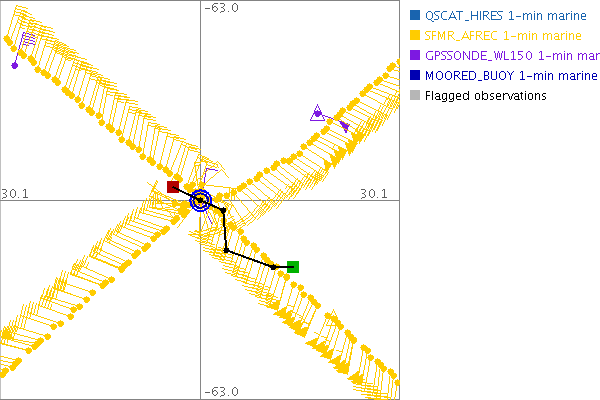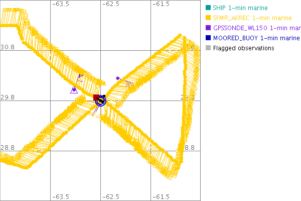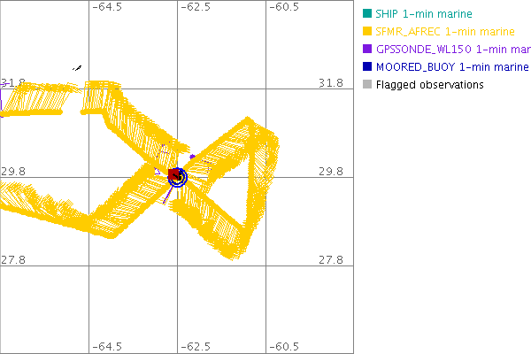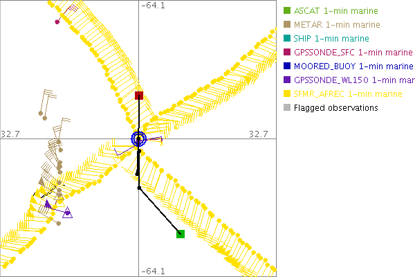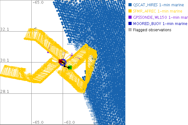 As a public service we are hosting the legacy H*wind archive that was formerly available through NOAA. Most of the archive was conducted in real-time so data collected after the analysis time were not available. Methods used to conduct the analyses evolved over the years. Grid spacing is on the order of 6 km and maximum domain size varies but is typically 8 x 8 degrees. There are known errors in some of the data coverage, mapping, and gridded products. For more information on the archive please go here. For realtime and post storm analysis of the 2014 season and a revised historical archive go here.