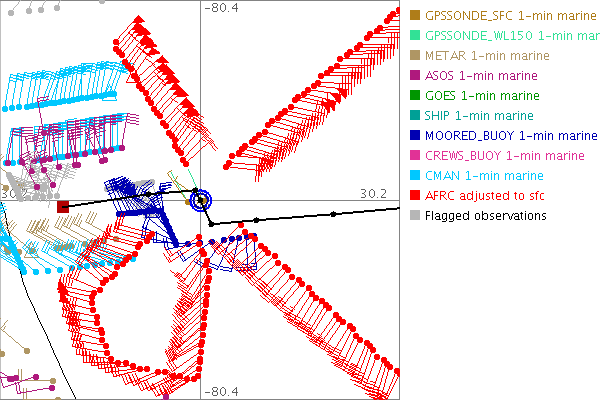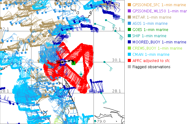 As a public service we are hosting the legacy H*wind archive that was formerly available through NOAA. Most of the archive was conducted in real-time so data collected after the analysis time were not available. Methods used to conduct the analyses evolved over the years. Grid spacing is on the order of 6 km and maximum domain size varies but is typically 8 x 8 degrees. There are known errors in some of the data coverage, mapping, and gridded products. For more information on the archive please go here. For realtime and post storm analysis of the 2014 season and a revised historical archive go here.