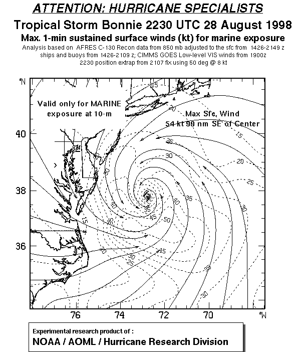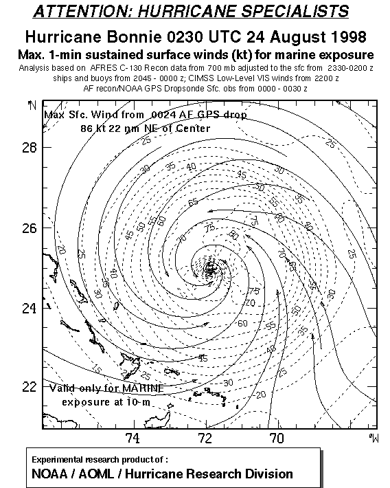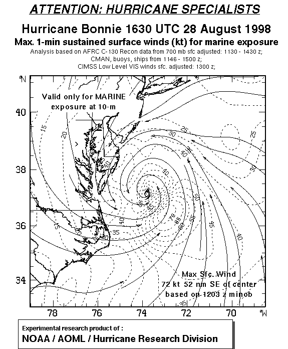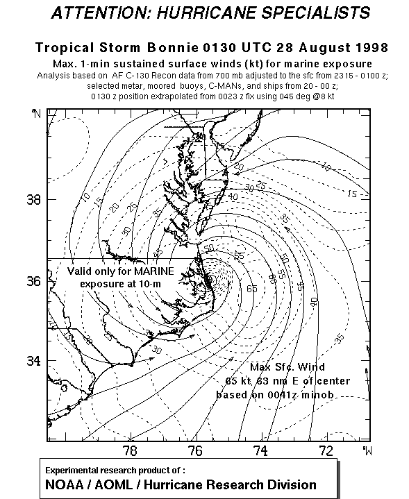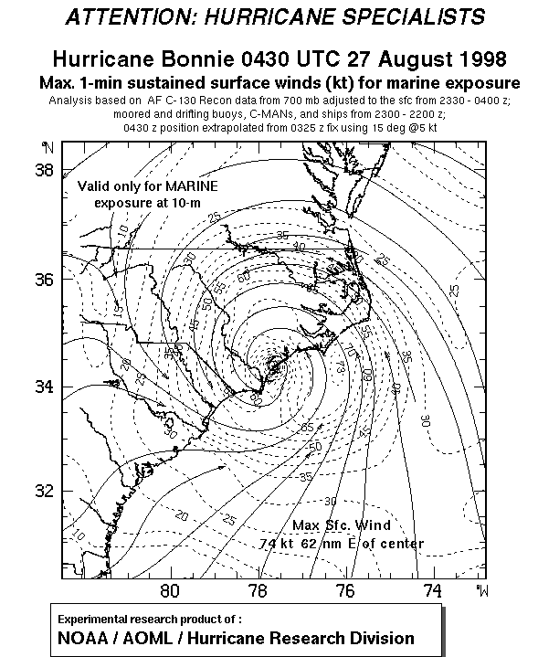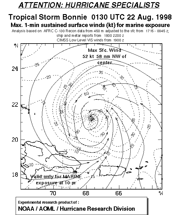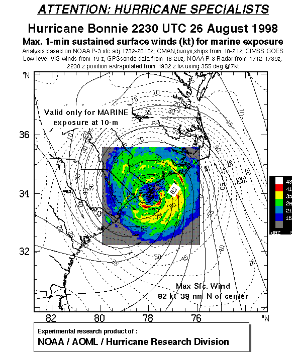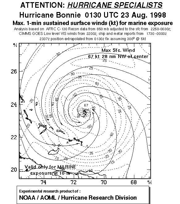 As a public service we are hosting the legacy H*wind archive that was formerly available through NOAA. Most of the archive was conducted in real-time so data collected after the analysis time were not available. Methods used to conduct the analyses evolved over the years. Grid spacing is on the order of 6 km and maximum domain size varies but is typically 8 x 8 degrees. There are known errors in some of the data coverage, mapping, and gridded products. For more information on the archive please go here. For realtime and post storm analysis of the 2014 season and a revised historical archive go here.