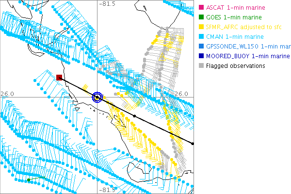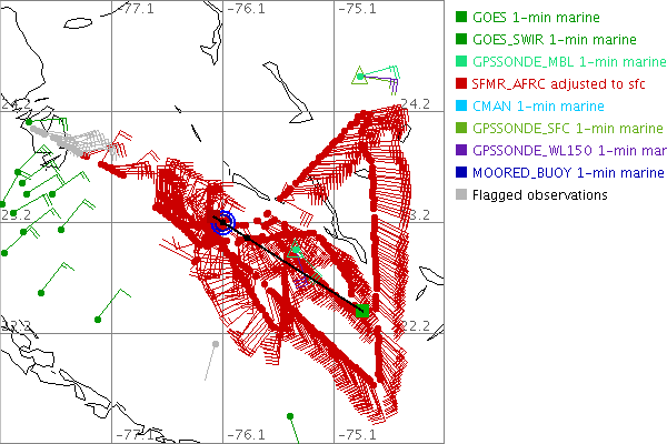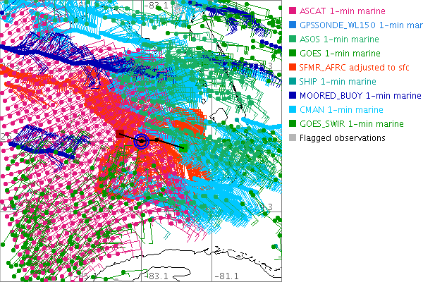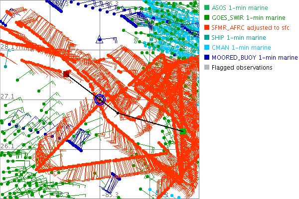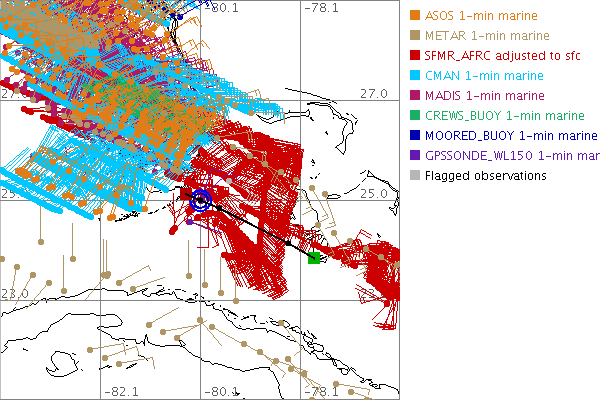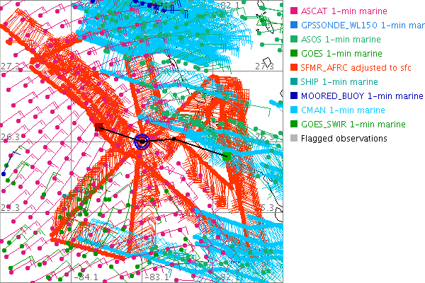 As a public service we are hosting the legacy H*wind archive that was formerly available through NOAA. Most of the archive was conducted in real-time so data collected after the analysis time were not available. Methods used to conduct the analyses evolved over the years. Grid spacing is on the order of 6 km and maximum domain size varies but is typically 8 x 8 degrees. There are known errors in some of the data coverage, mapping, and gridded products. For more information on the archive please go here. For realtime and post storm analysis of the 2014 season and a revised historical archive go here. |