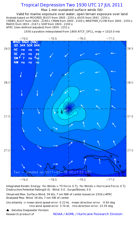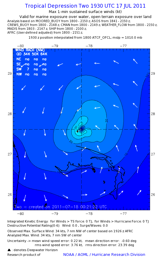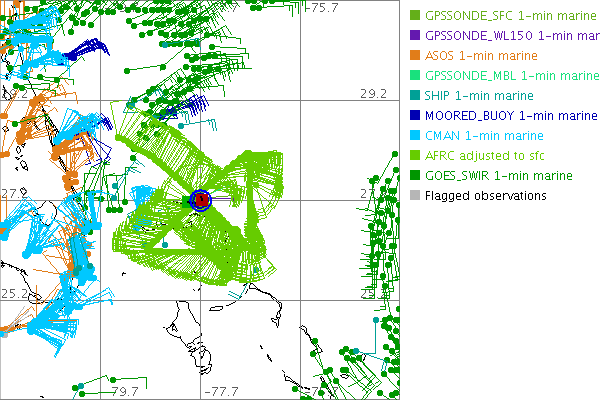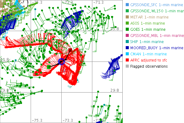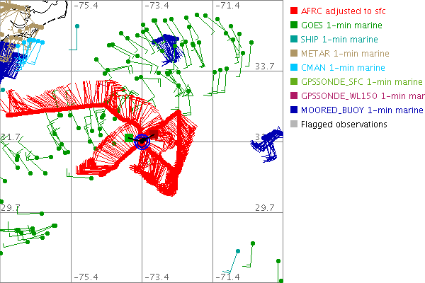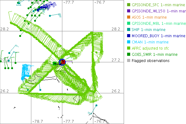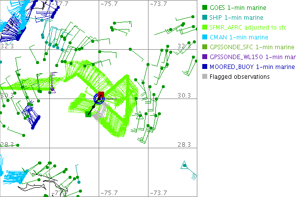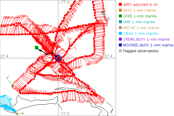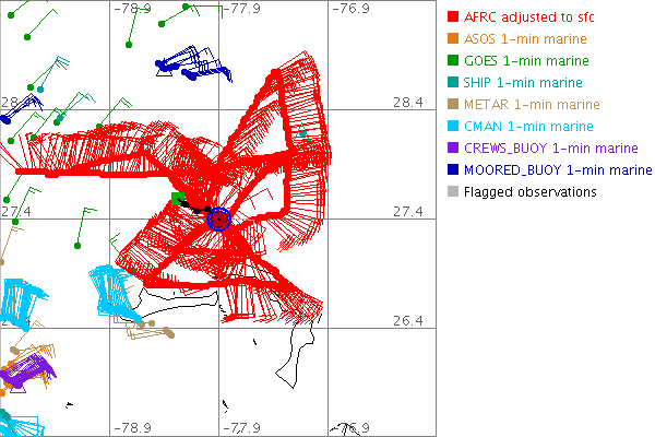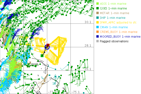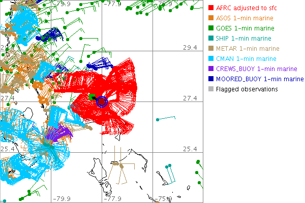 As a public service we are hosting the legacy H*wind archive that was formerly available through NOAA. Most of the archive was conducted in real-time so data collected after the analysis time were not available. Methods used to conduct the analyses evolved over the years. Grid spacing is on the order of 6 km and maximum domain size varies but is typically 8 x 8 degrees. There are known errors in some of the data coverage, mapping, and gridded products. For more information on the archive please go here. For realtime and post storm analysis of the 2014 season and a revised historical archive go here.