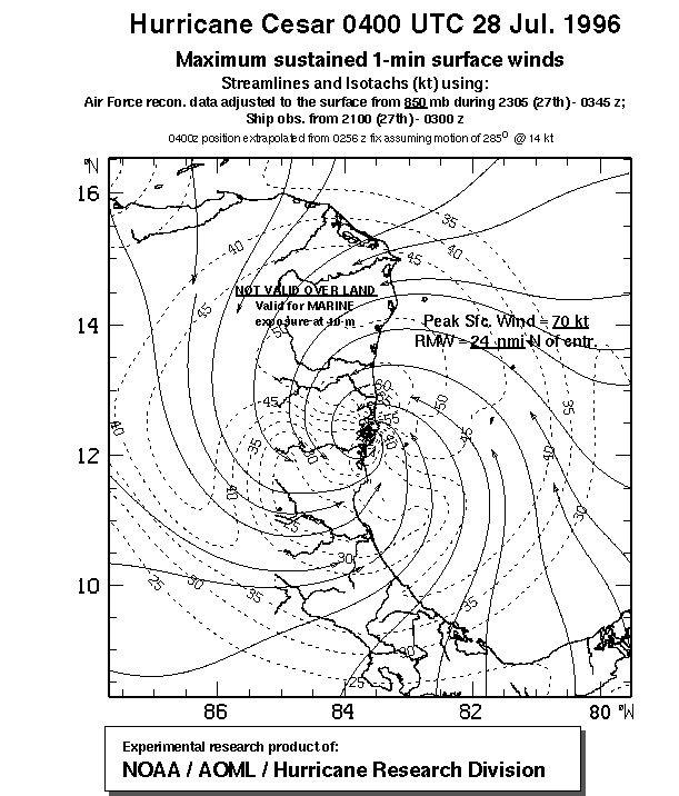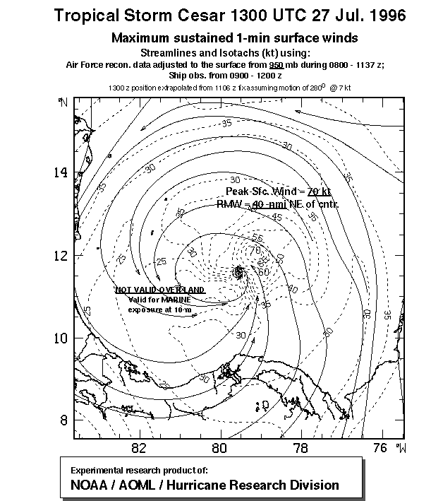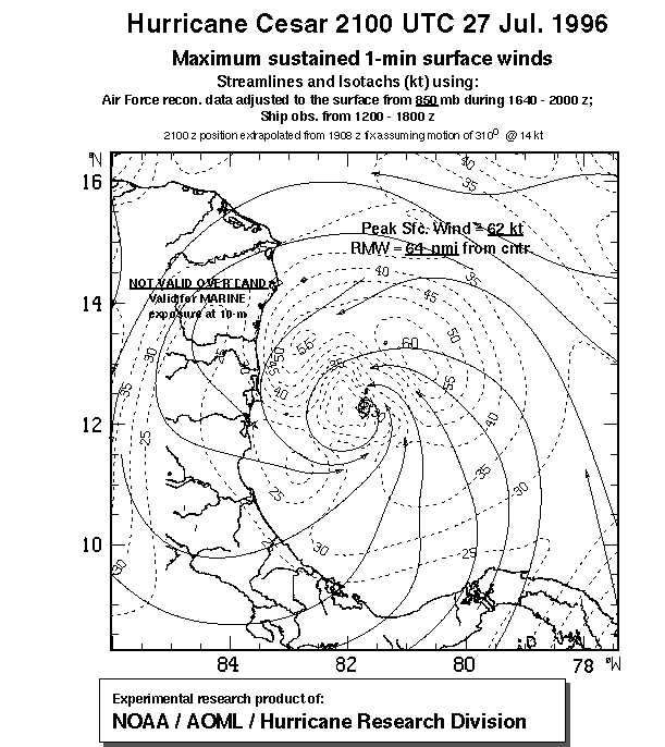 As a public service we are hosting the legacy H*wind archive that was formerly available through NOAA. Most of the archive was conducted in real-time so data collected after the analysis time were not available. Methods used to conduct the analyses evolved over the years. Grid spacing is on the order of 6 km and maximum domain size varies but is typically 8 x 8 degrees. There are known errors in some of the data coverage, mapping, and gridded products. For more information on the archive please go here. For realtime and post storm analysis of the 2014 season and a revised historical archive go here.