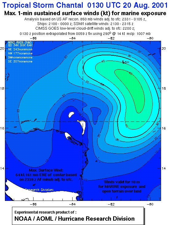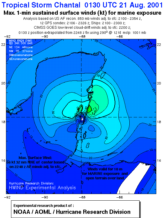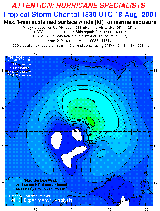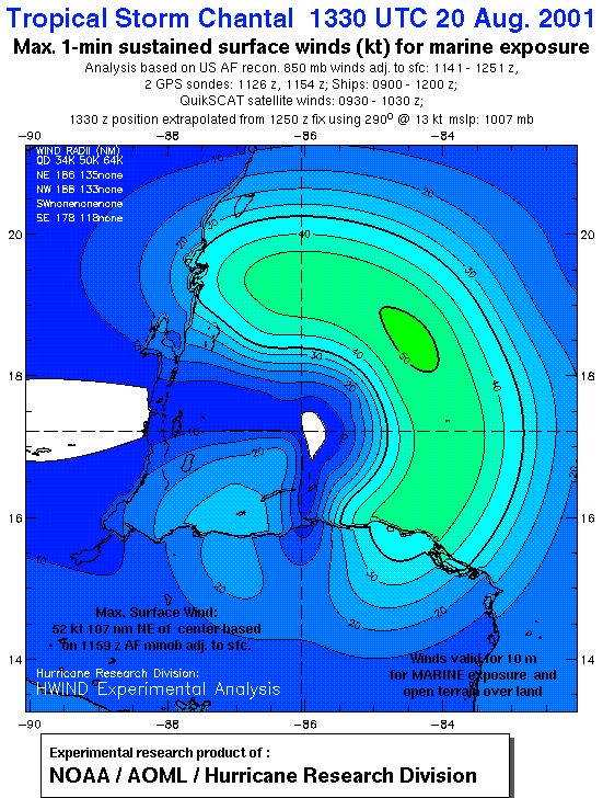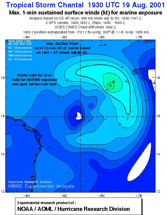 As a public service we are hosting the legacy H*wind archive that was formerly available through NOAA. Most of the archive was conducted in real-time so data collected after the analysis time were not available. Methods used to conduct the analyses evolved over the years. Grid spacing is on the order of 6 km and maximum domain size varies but is typically 8 x 8 degrees. There are known errors in some of the data coverage, mapping, and gridded products. For more information on the archive please go here. For realtime and post storm analysis of the 2014 season and a revised historical archive go here.