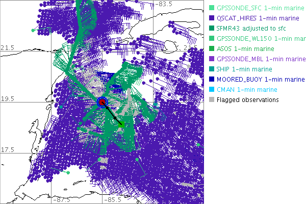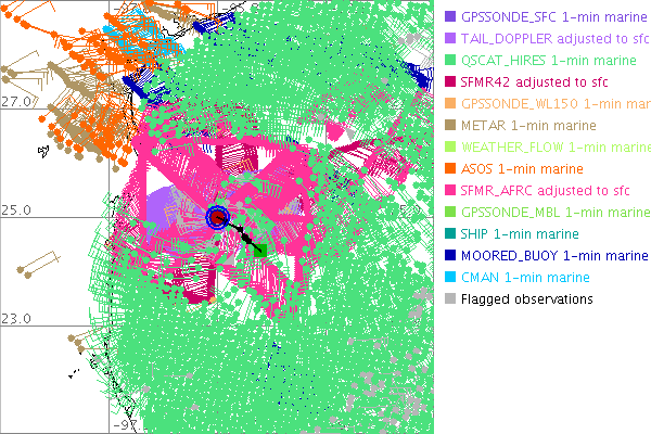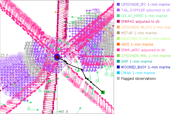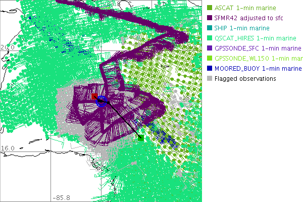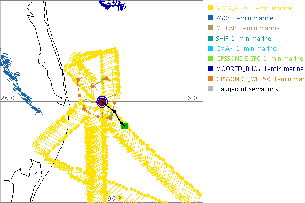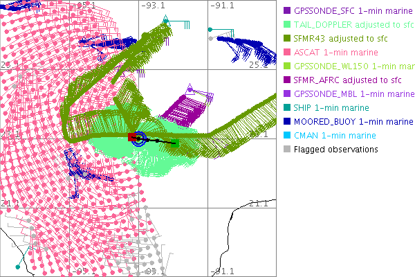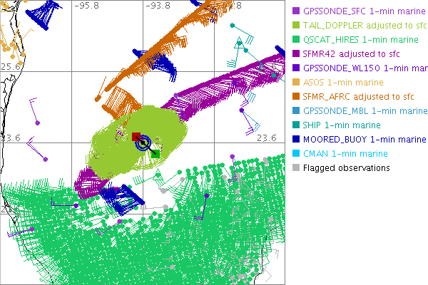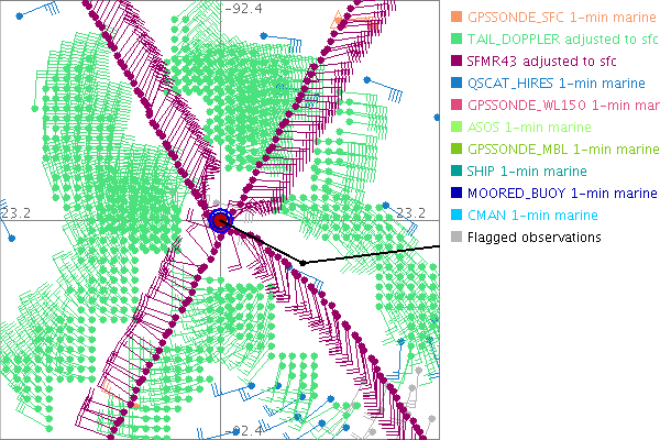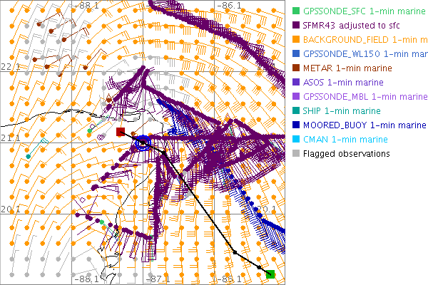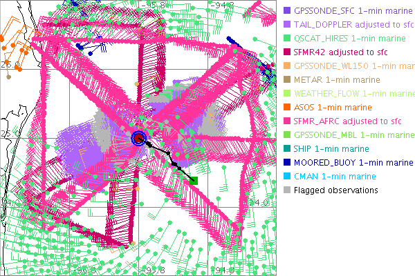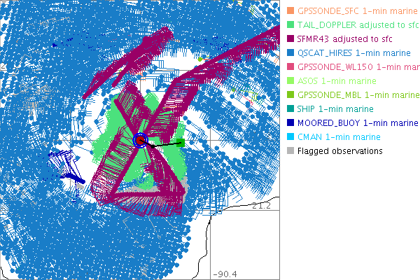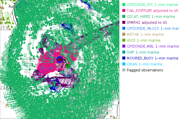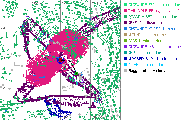 As a public service we are hosting the legacy H*wind archive that was formerly available through NOAA. Most of the archive was conducted in real-time so data collected after the analysis time were not available. Methods used to conduct the analyses evolved over the years. Grid spacing is on the order of 6 km and maximum domain size varies but is typically 8 x 8 degrees. There are known errors in some of the data coverage, mapping, and gridded products. For more information on the archive please go here. For realtime and post storm analysis of the 2014 season and a revised historical archive go here. |