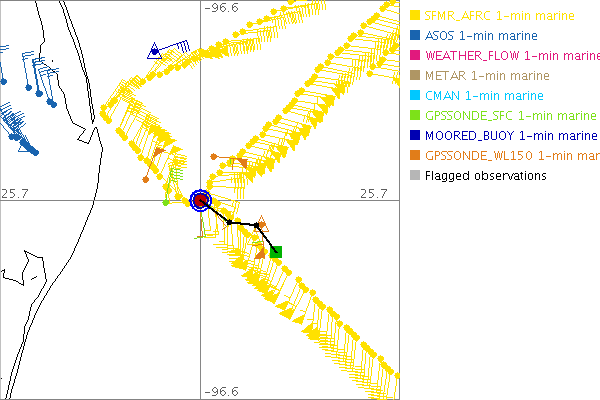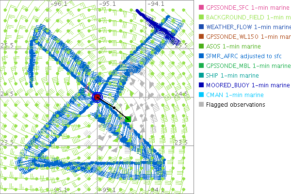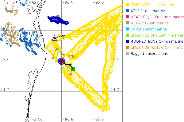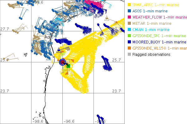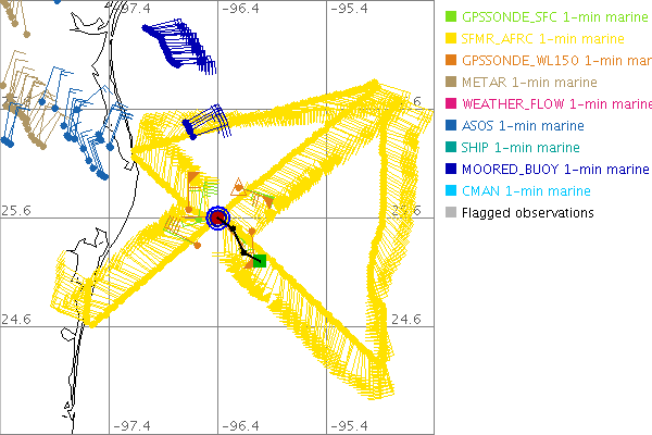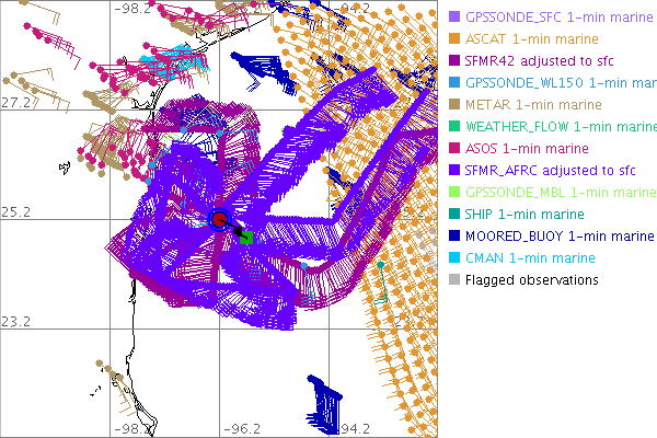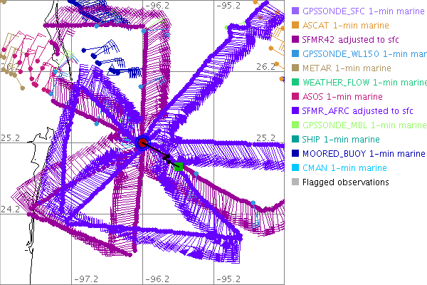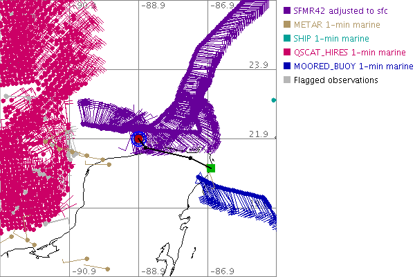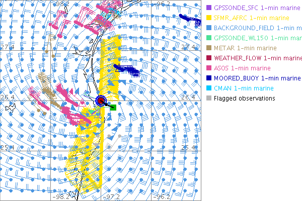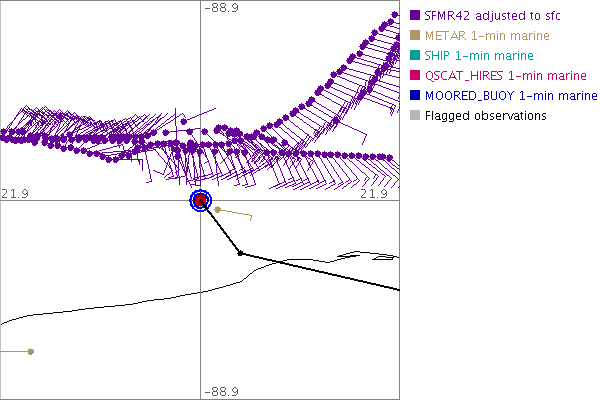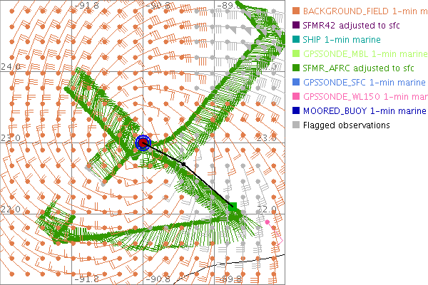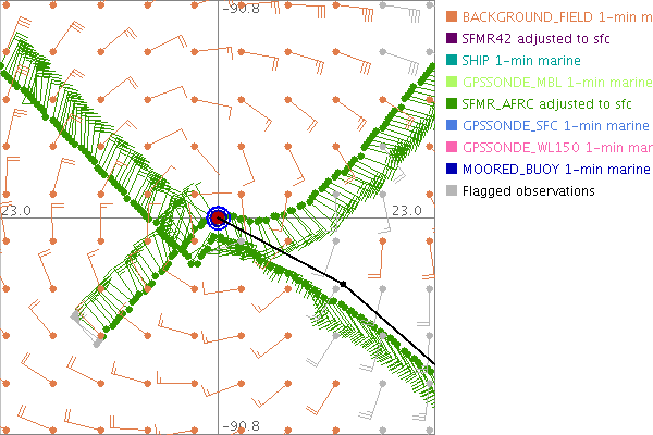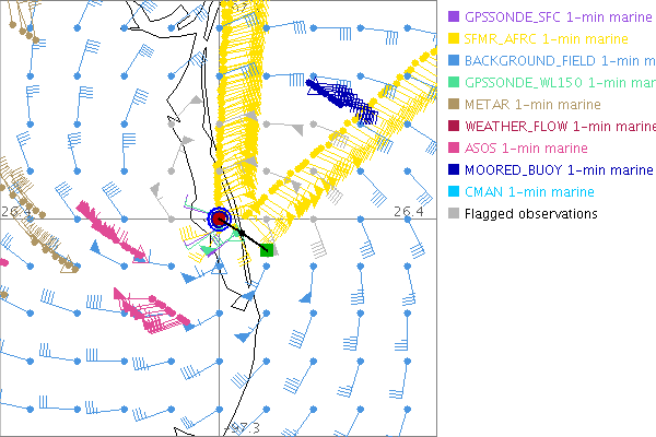 As a public service we are hosting the legacy H*wind archive that was formerly available through NOAA. Most of the archive was conducted in real-time so data collected after the analysis time were not available. Methods used to conduct the analyses evolved over the years. Grid spacing is on the order of 6 km and maximum domain size varies but is typically 8 x 8 degrees. There are known errors in some of the data coverage, mapping, and gridded products. For more information on the archive please go here. For realtime and post storm analysis of the 2014 season and a revised historical archive go here. |
