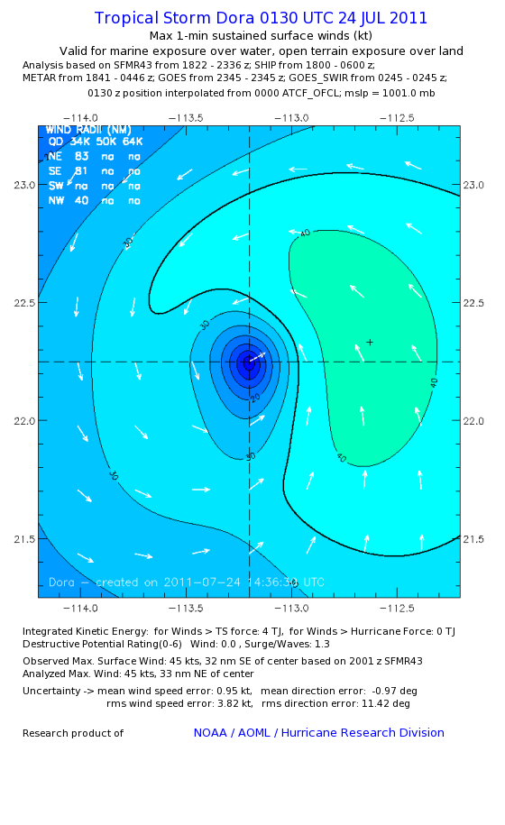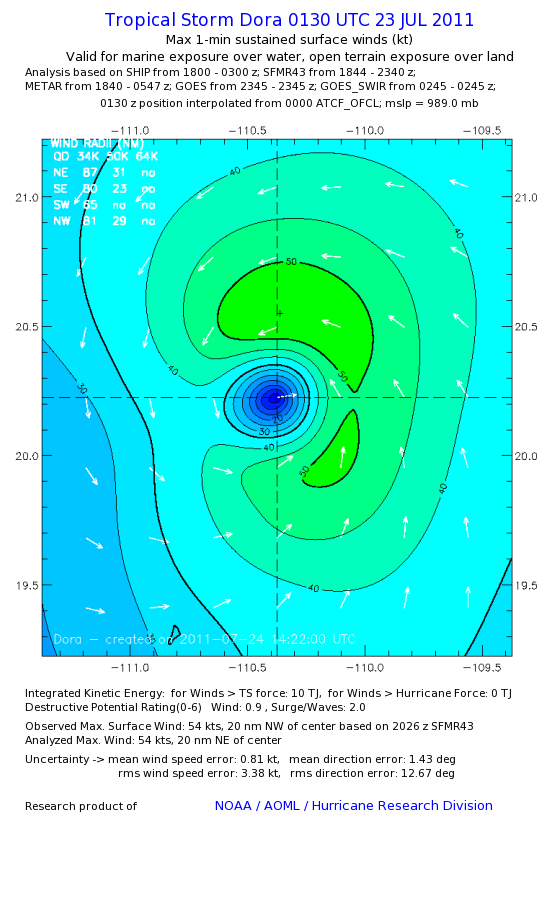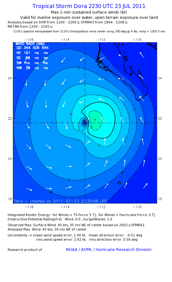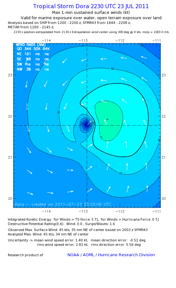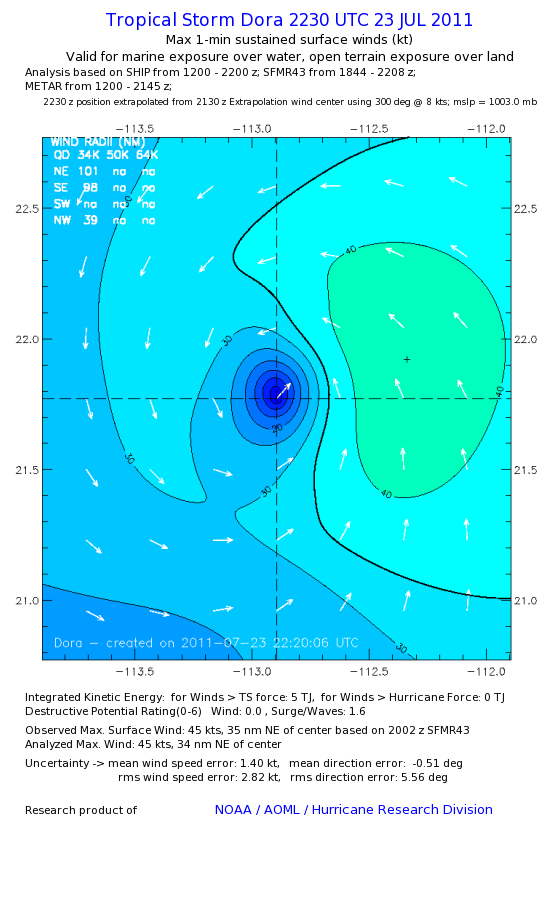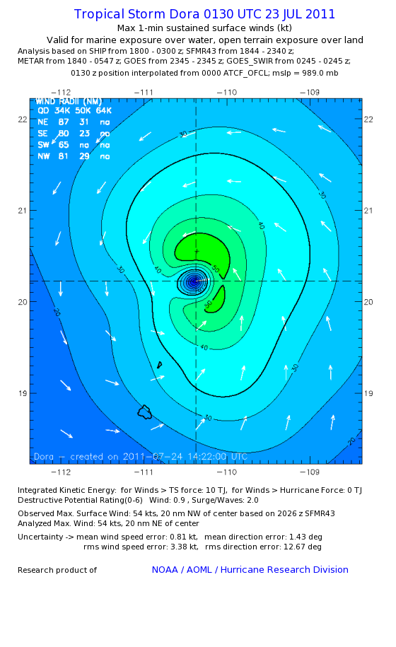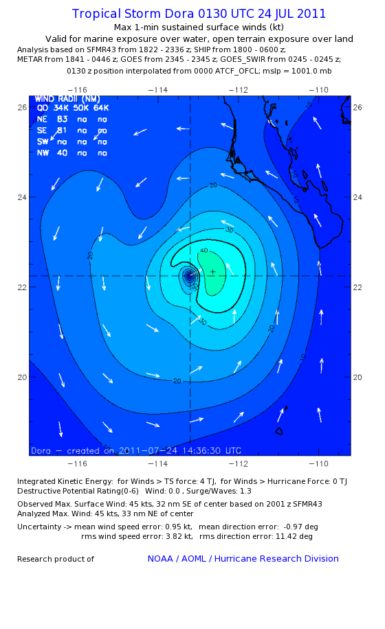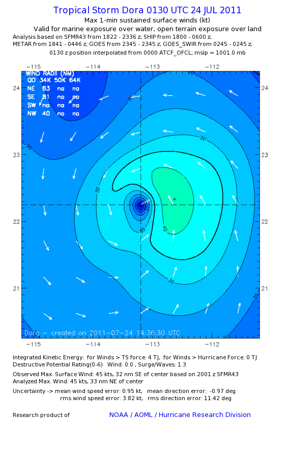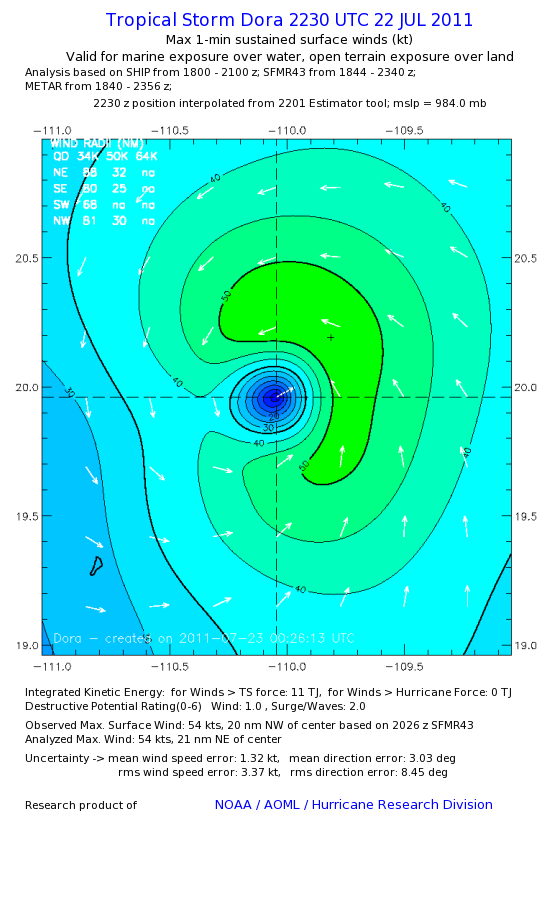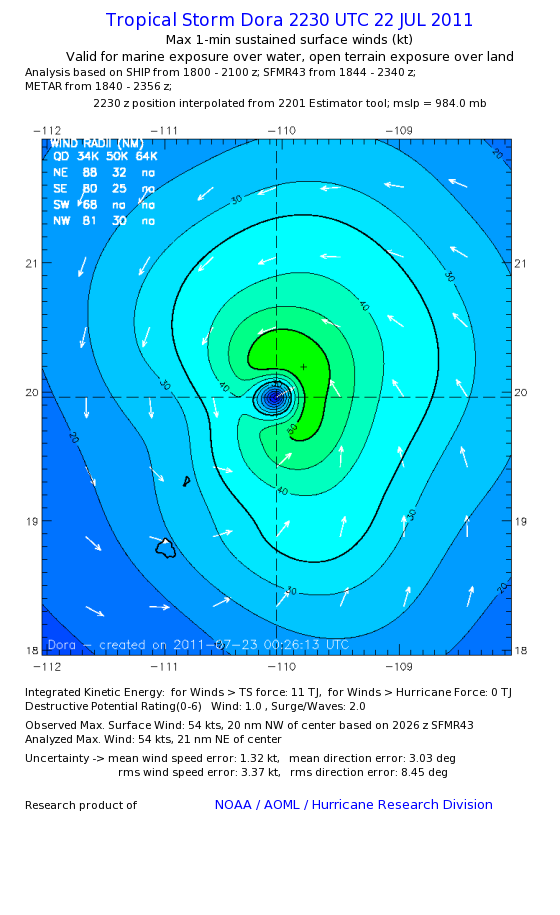 As a public service we are hosting the legacy H*wind archive that was formerly available through NOAA. Most of the archive was conducted in real-time so data collected after the analysis time were not available. Methods used to conduct the analyses evolved over the years. Grid spacing is on the order of 6 km and maximum domain size varies but is typically 8 x 8 degrees. There are known errors in some of the data coverage, mapping, and gridded products. For more information on the archive please go here. For realtime and post storm analysis of the 2014 season and a revised historical archive go here.