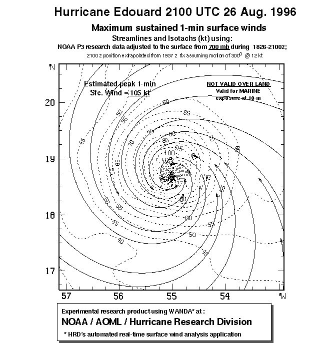 As a public service we are hosting the legacy H*wind archive that was formerly available through NOAA. Most of the archive was conducted in real-time so data collected after the analysis time were not available. Methods used to conduct the analyses evolved over the years. Grid spacing is on the order of 6 km and maximum domain size varies but is typically 8 x 8 degrees. There are known errors in some of the data coverage, mapping, and gridded products. For more information on the archive please go here. For realtime and post storm analysis of the 2014 season and a revised historical archive go here.