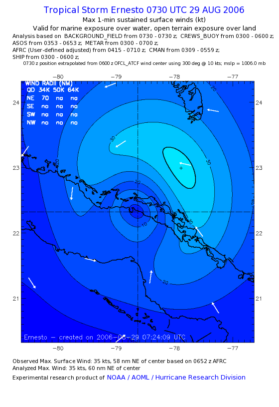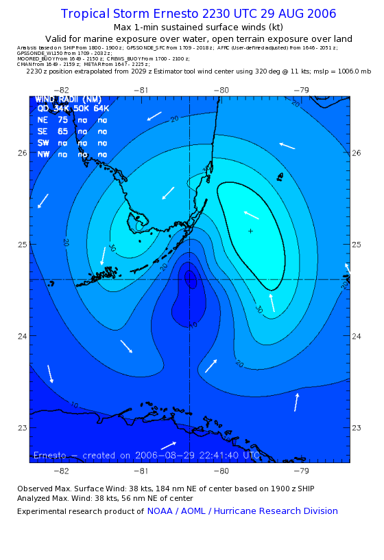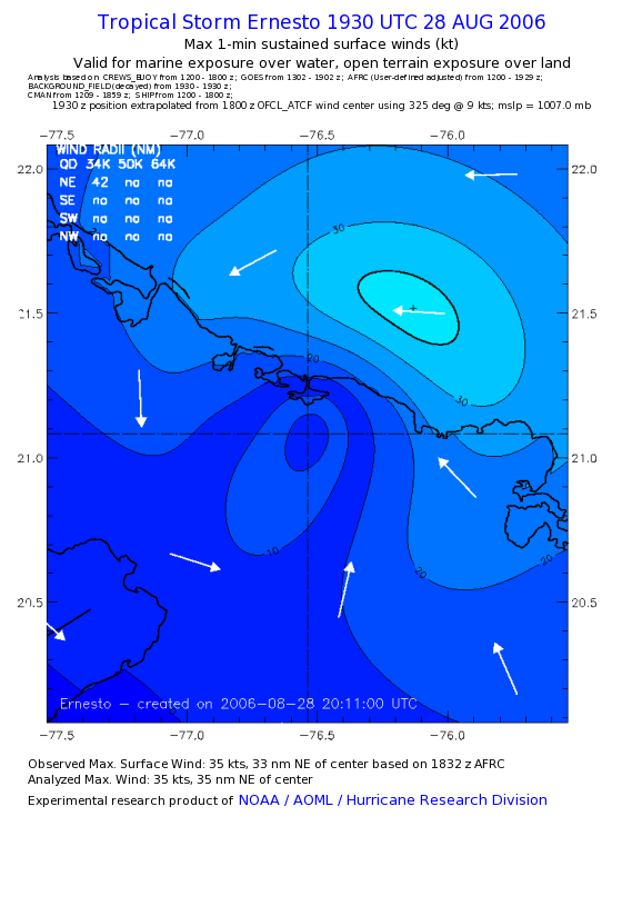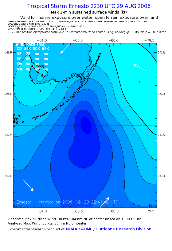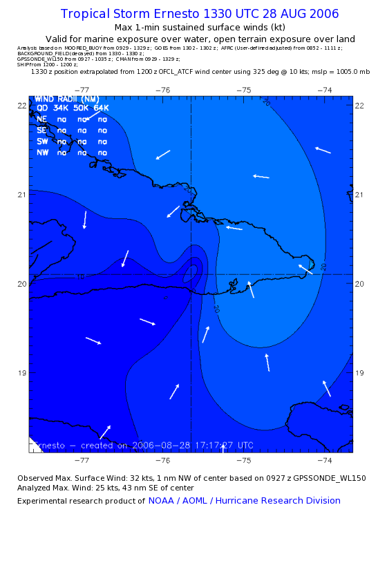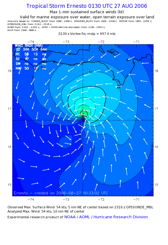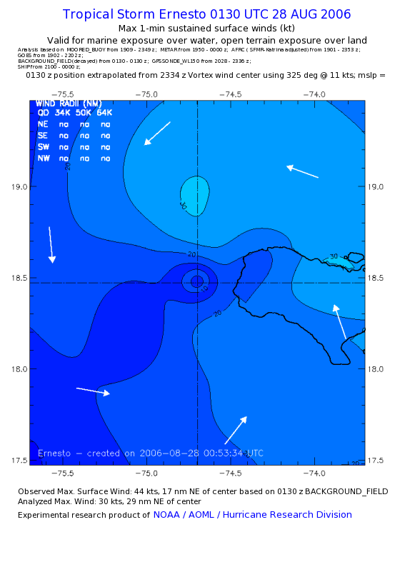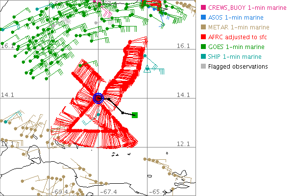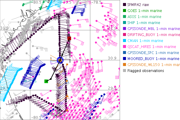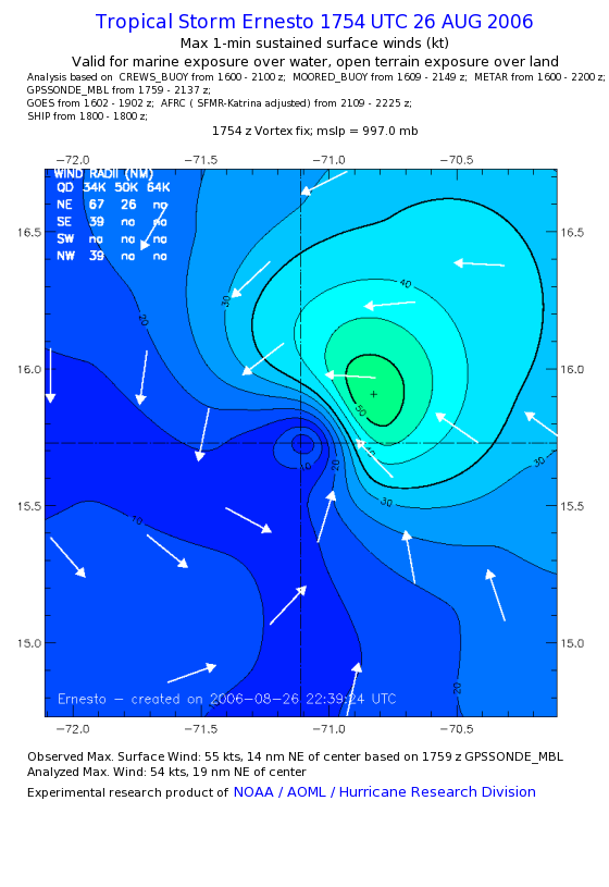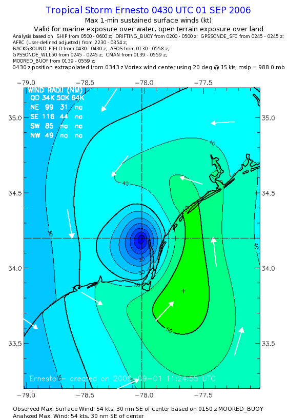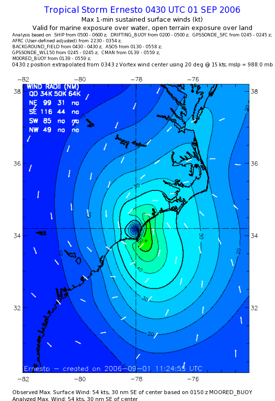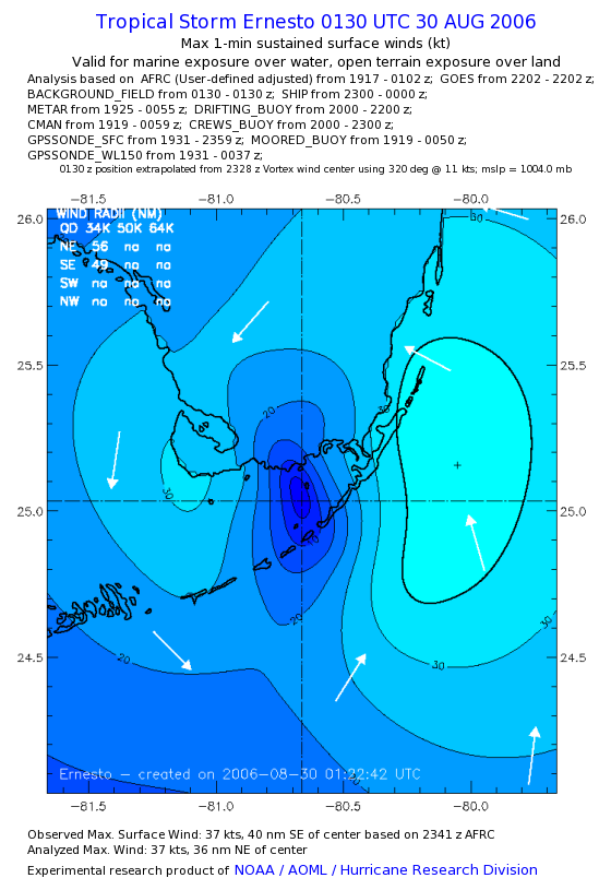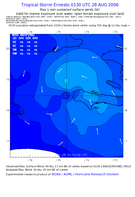 As a public service we are hosting the legacy H*wind archive that was formerly available through NOAA. Most of the archive was conducted in real-time so data collected after the analysis time were not available. Methods used to conduct the analyses evolved over the years. Grid spacing is on the order of 6 km and maximum domain size varies but is typically 8 x 8 degrees. There are known errors in some of the data coverage, mapping, and gridded products. For more information on the archive please go here. For realtime and post storm analysis of the 2014 season and a revised historical archive go here. |