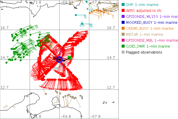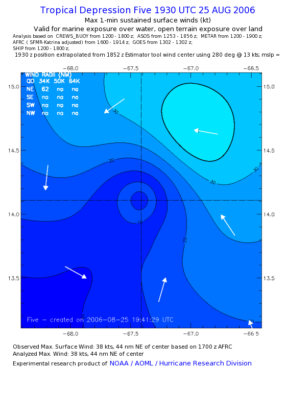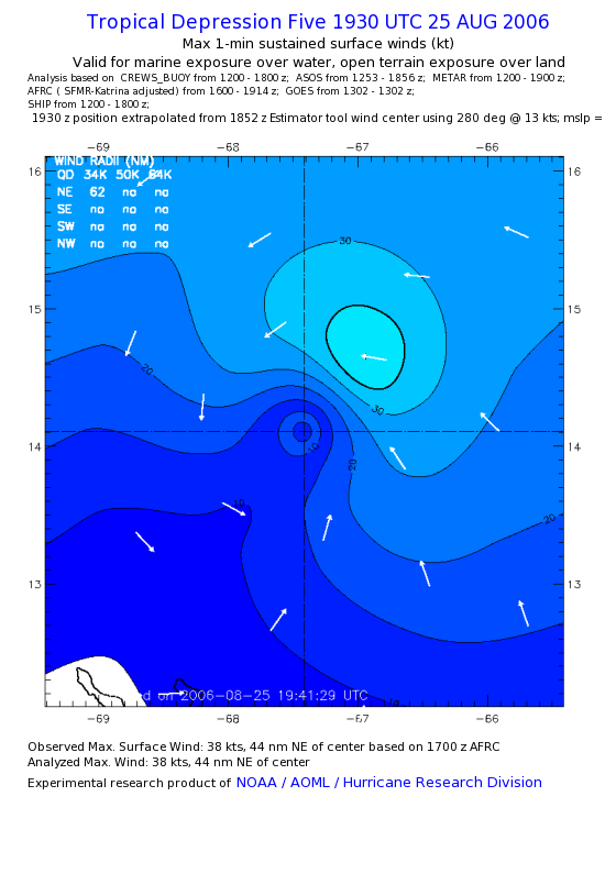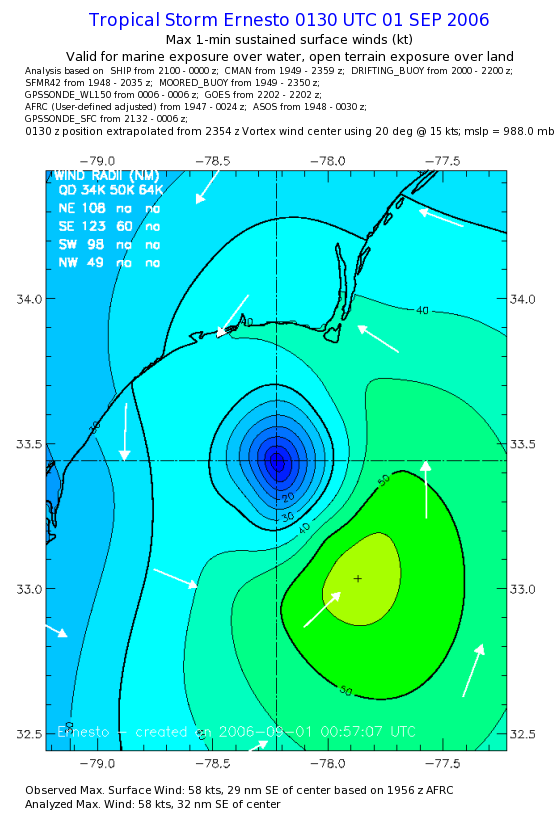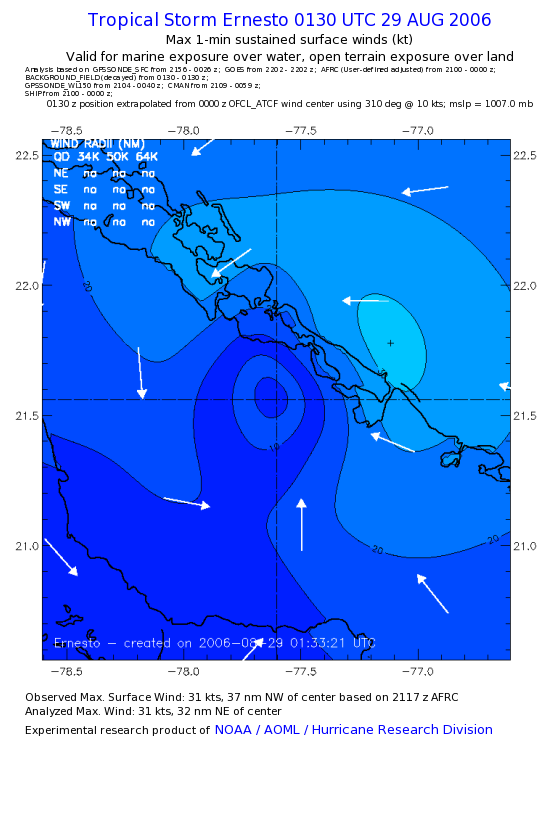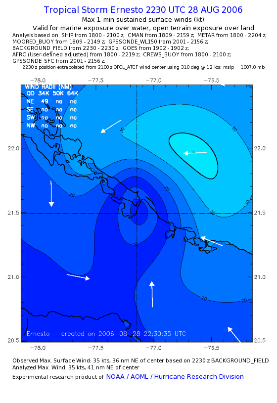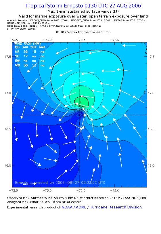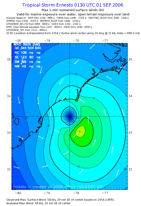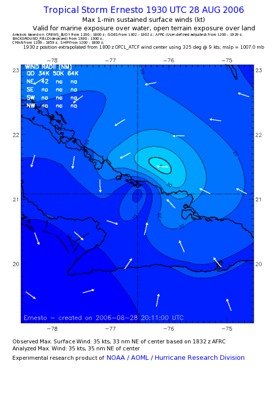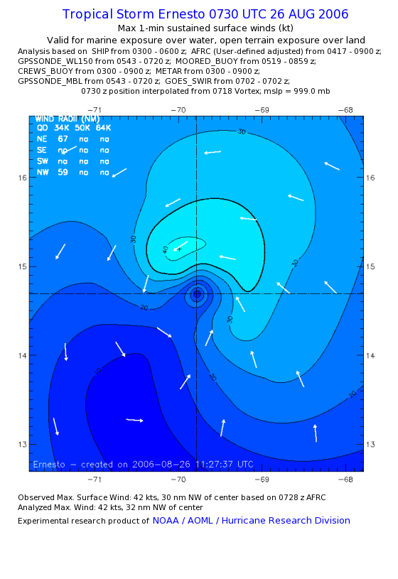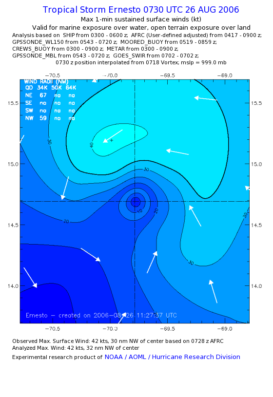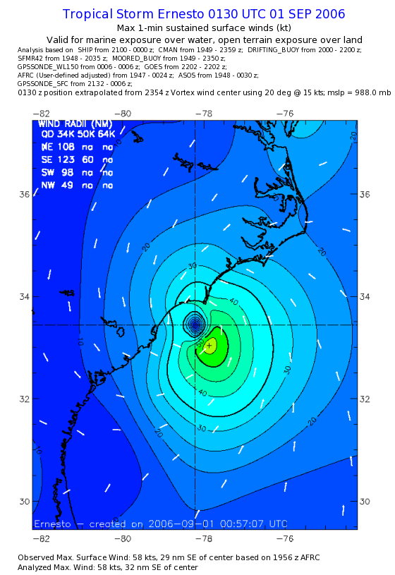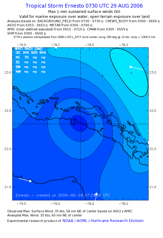 As a public service we are hosting the legacy H*wind archive that was formerly available through NOAA. Most of the archive was conducted in real-time so data collected after the analysis time were not available. Methods used to conduct the analyses evolved over the years. Grid spacing is on the order of 6 km and maximum domain size varies but is typically 8 x 8 degrees. There are known errors in some of the data coverage, mapping, and gridded products. For more information on the archive please go here. For realtime and post storm analysis of the 2014 season and a revised historical archive go here. |