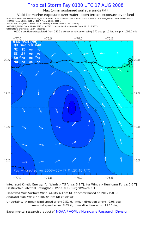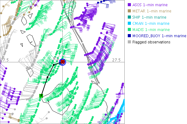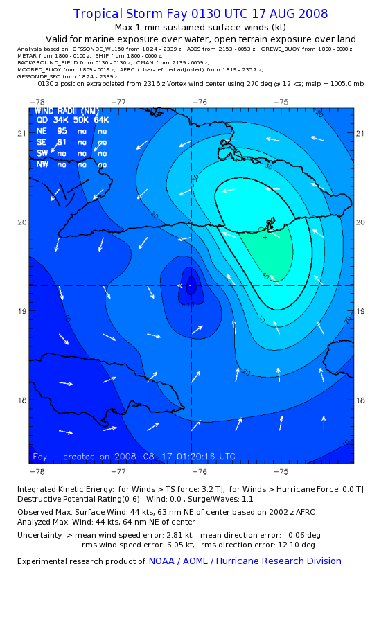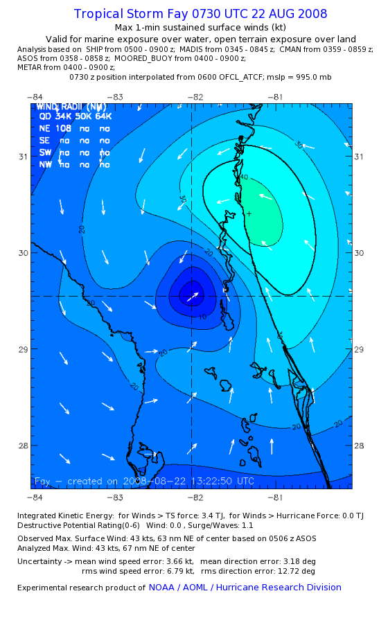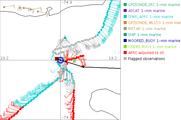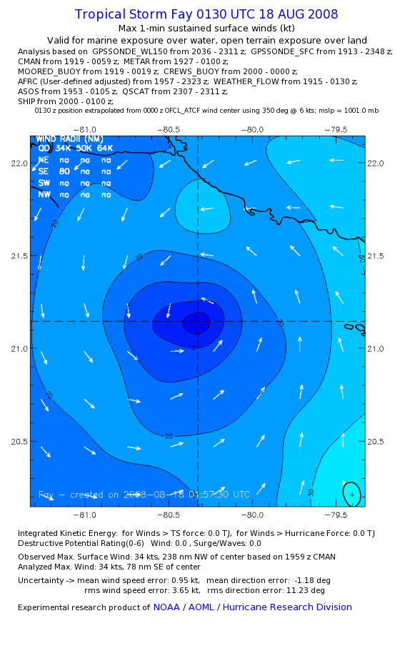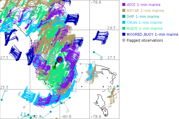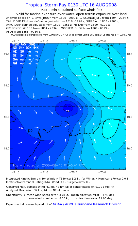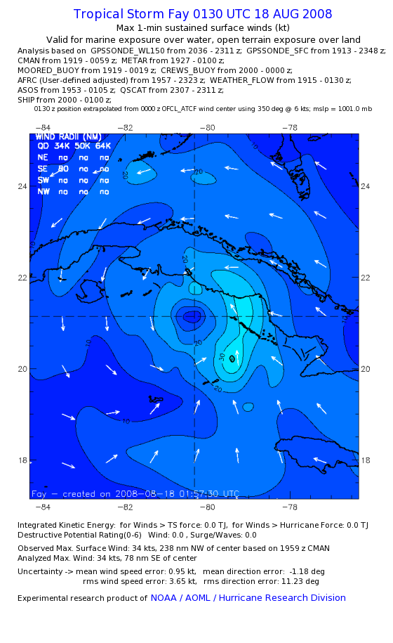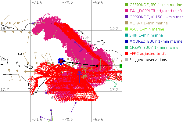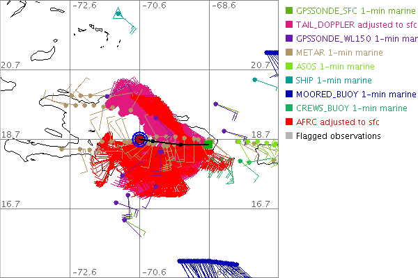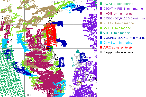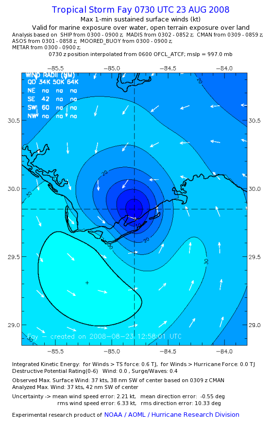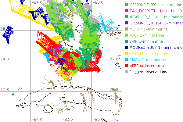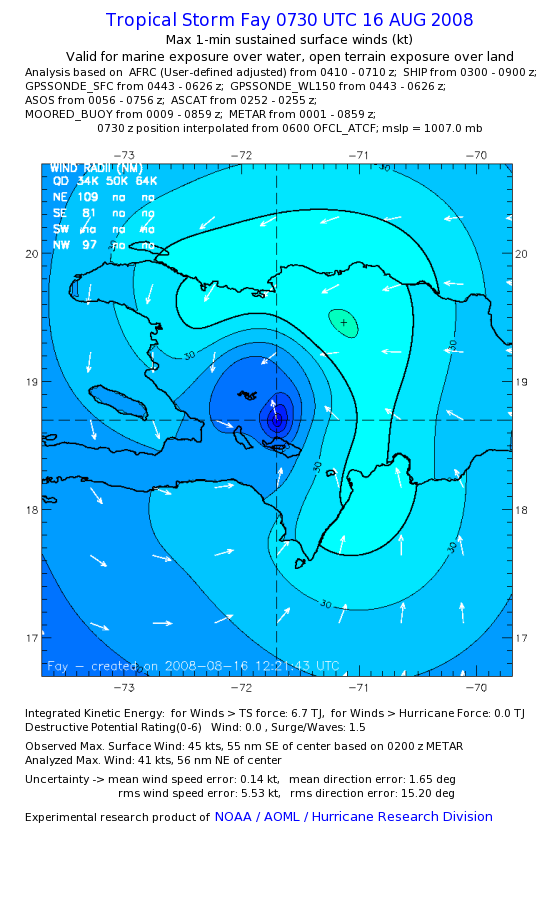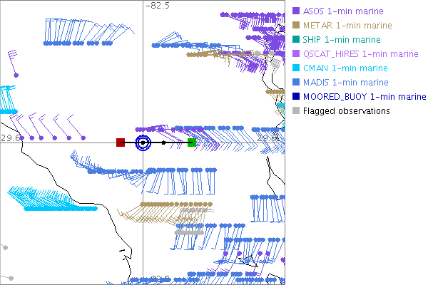 As a public service we are hosting the legacy H*wind archive that was formerly available through NOAA. Most of the archive was conducted in real-time so data collected after the analysis time were not available. Methods used to conduct the analyses evolved over the years. Grid spacing is on the order of 6 km and maximum domain size varies but is typically 8 x 8 degrees. There are known errors in some of the data coverage, mapping, and gridded products. For more information on the archive please go here. For realtime and post storm analysis of the 2014 season and a revised historical archive go here. |