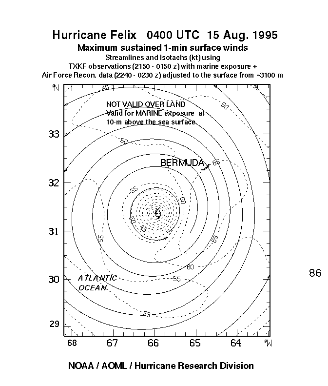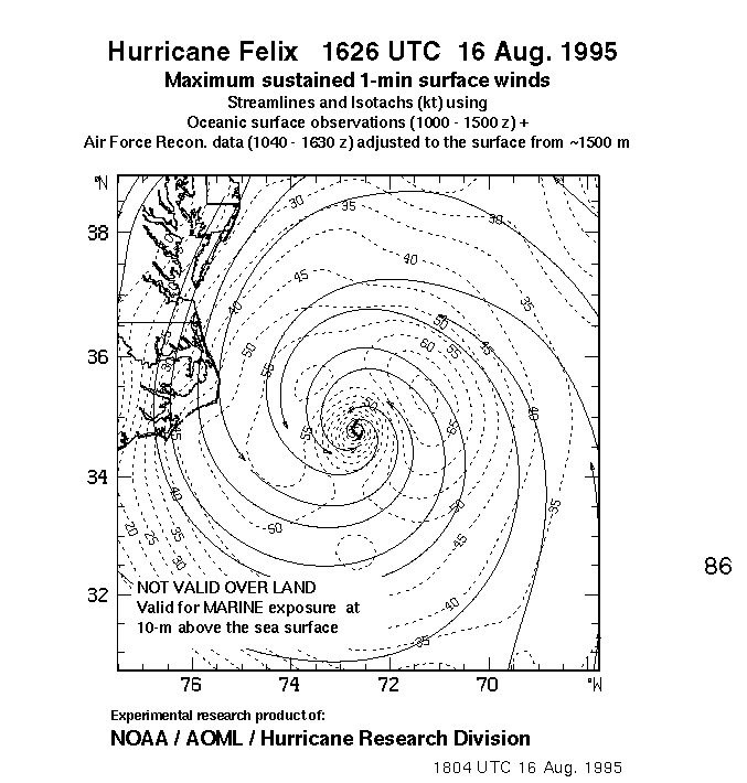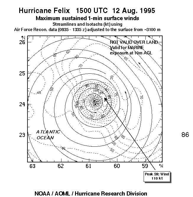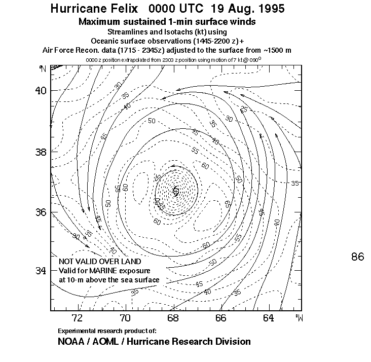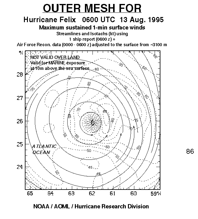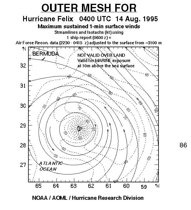 As a public service we are hosting the legacy H*wind archive that was formerly available through NOAA. Most of the archive was conducted in real-time so data collected after the analysis time were not available. Methods used to conduct the analyses evolved over the years. Grid spacing is on the order of 6 km and maximum domain size varies but is typically 8 x 8 degrees. There are known errors in some of the data coverage, mapping, and gridded products. For more information on the archive please go here. For realtime and post storm analysis of the 2014 season and a revised historical archive go here.