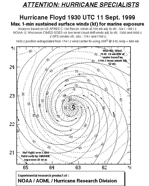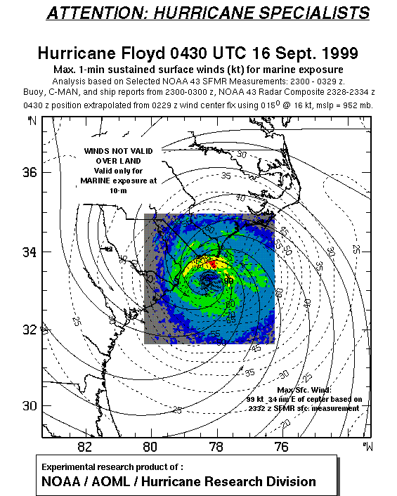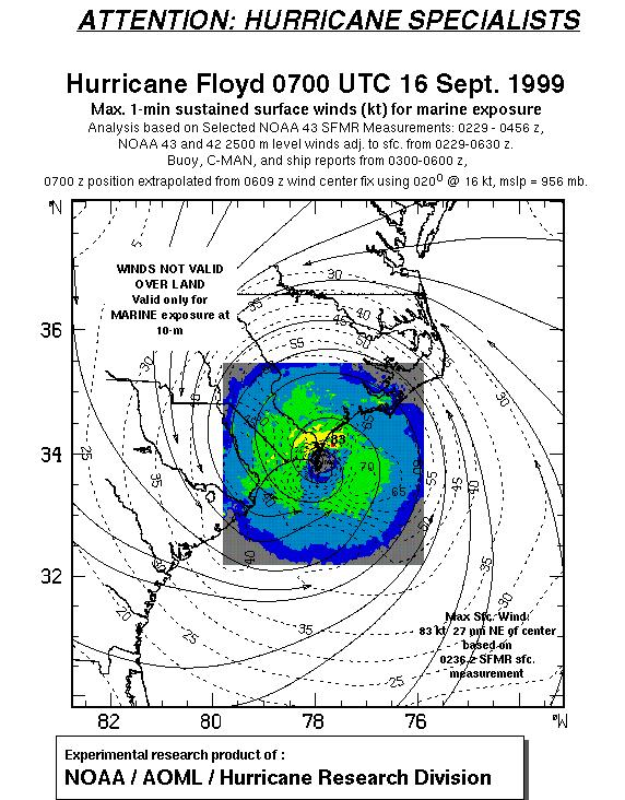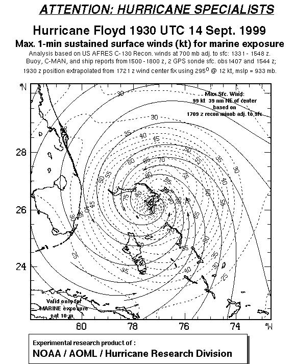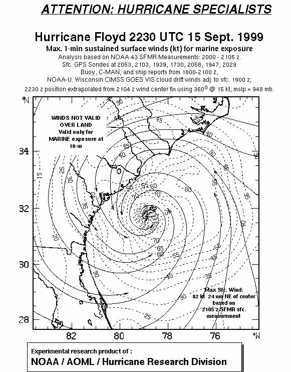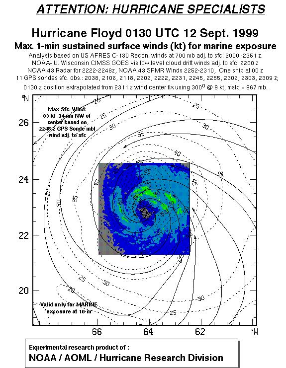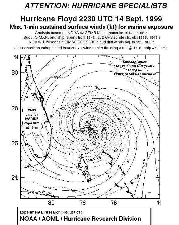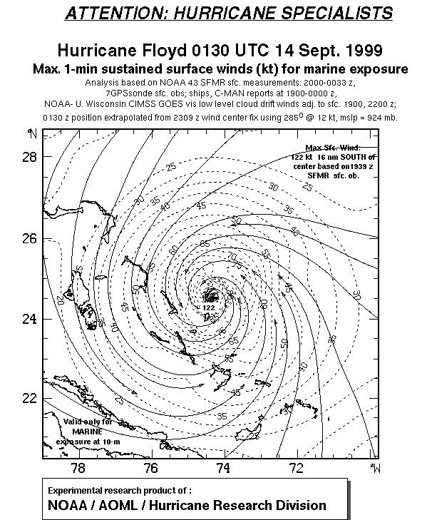As a public service we are hosting the legacy H*wind archive that was formerly available through NOAA. Most of the archive was conducted in real-time so data collected after the analysis time were not available. Methods used to conduct the analyses evolved over the years. Grid spacing is on the order of 6 km and maximum domain size varies but is typically 8 x 8 degrees. There are known errors in some of the data coverage, mapping, and gridded products. For more information on the archive please go here. For realtime and post storm analysis of the 2014 season and a revised historical archive go here. |