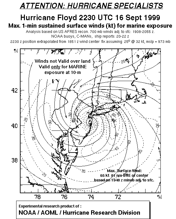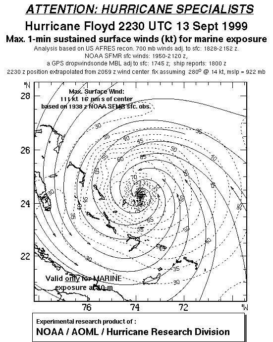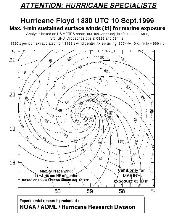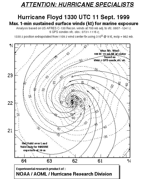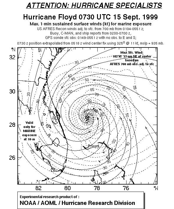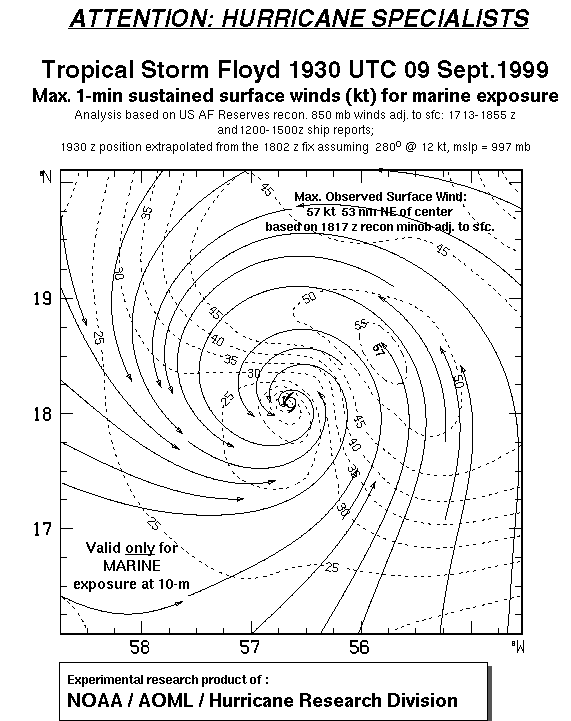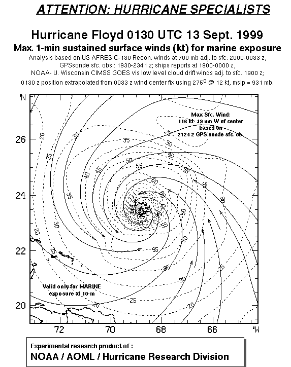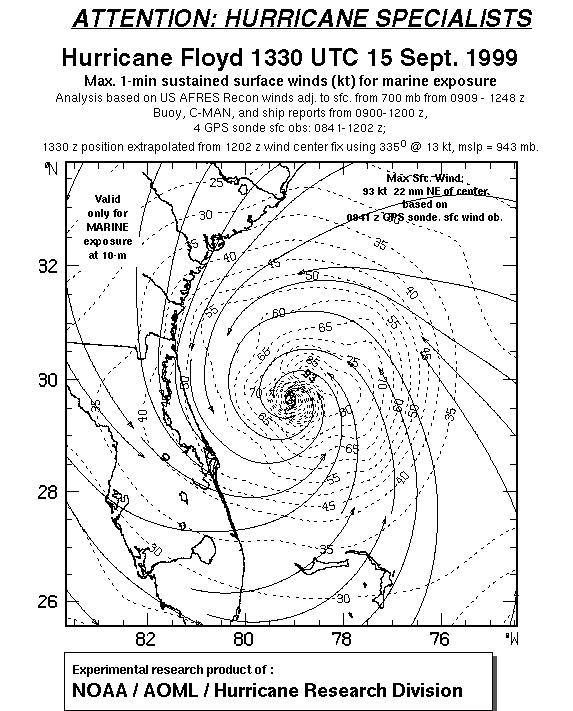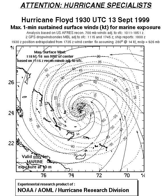 As a public service we are hosting the legacy H*wind archive that was formerly available through NOAA. Most of the archive was conducted in real-time so data collected after the analysis time were not available. Methods used to conduct the analyses evolved over the years. Grid spacing is on the order of 6 km and maximum domain size varies but is typically 8 x 8 degrees. There are known errors in some of the data coverage, mapping, and gridded products. For more information on the archive please go here. For realtime and post storm analysis of the 2014 season and a revised historical archive go here. |