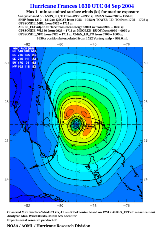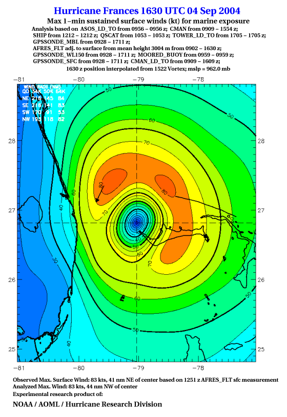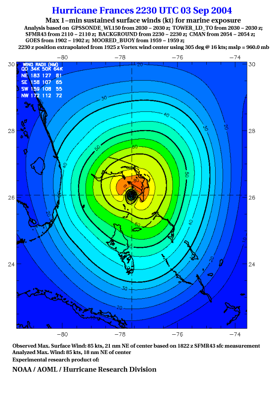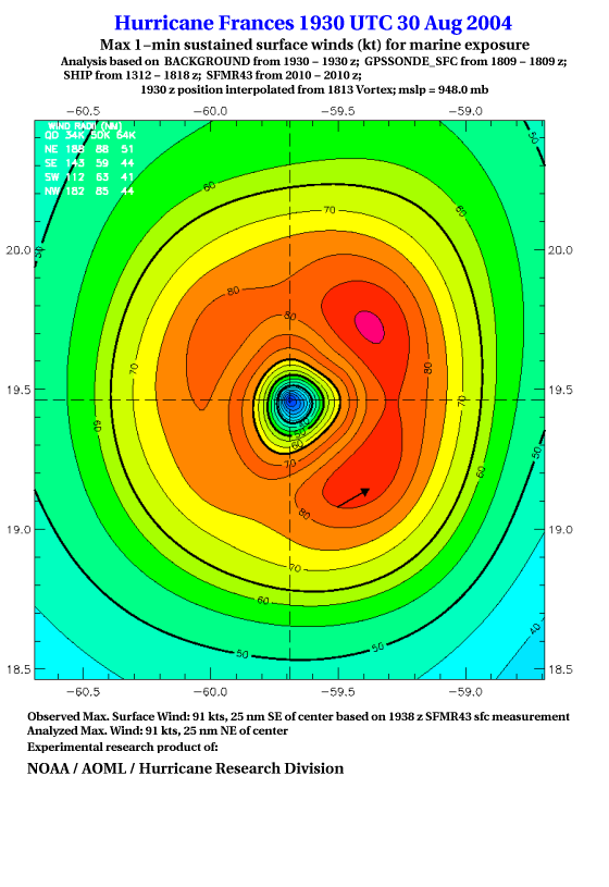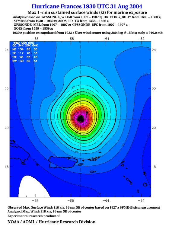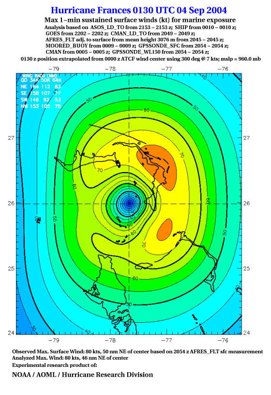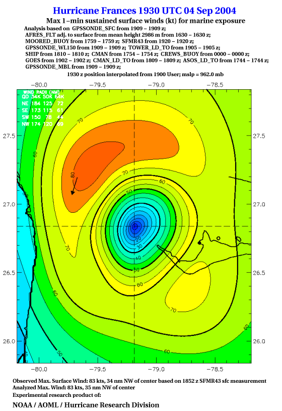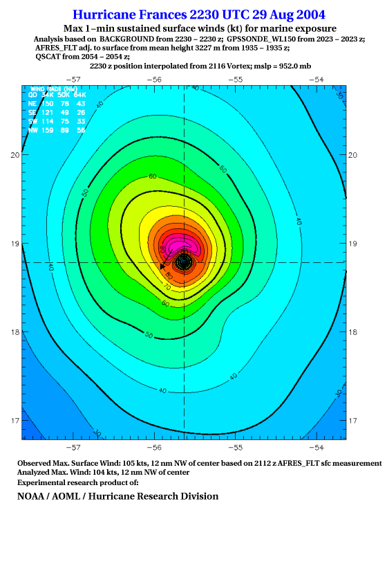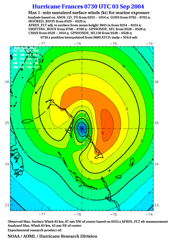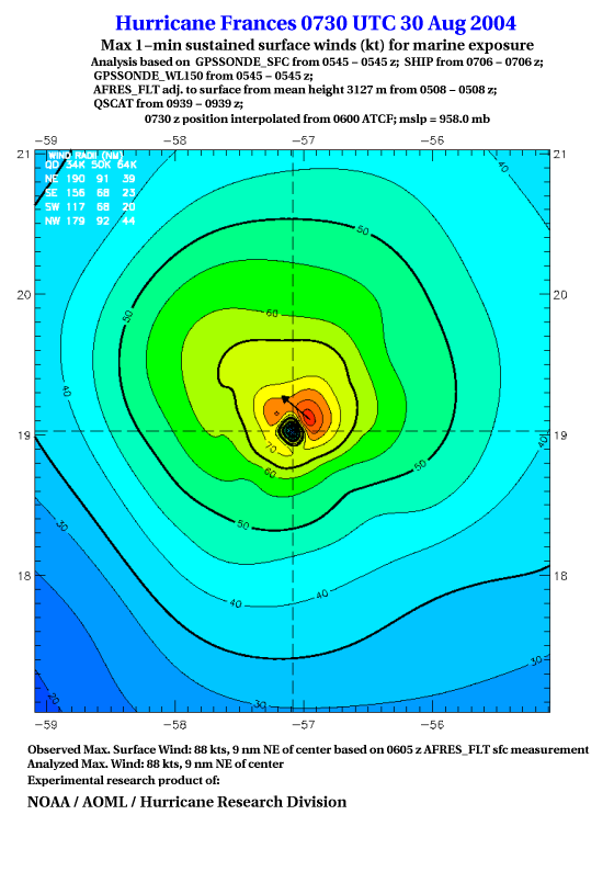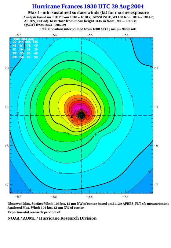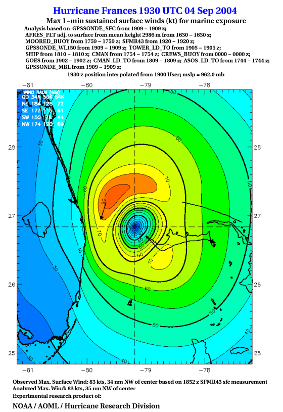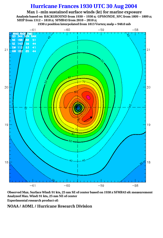For high-resolution commercial quality Frances post storm wind analyses go here. (For Hwind Subscribers) |