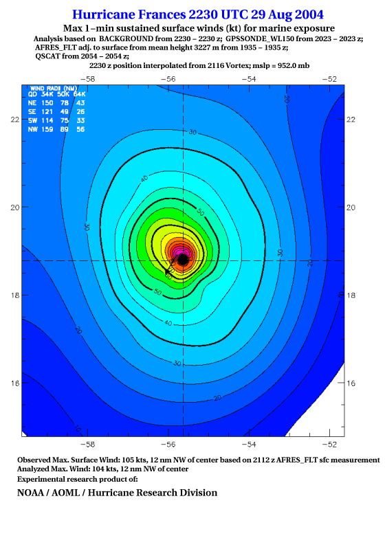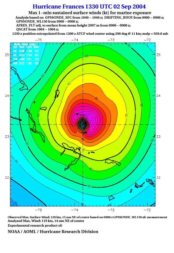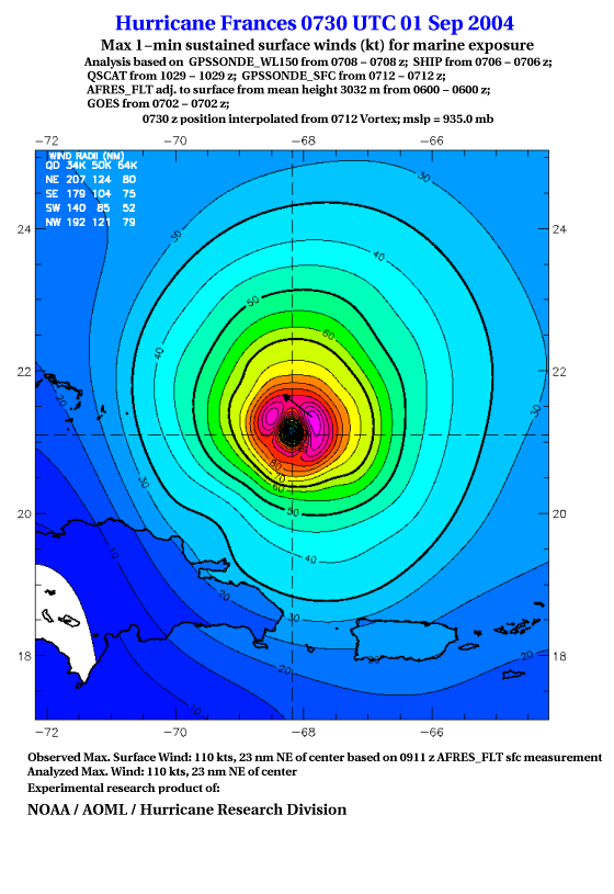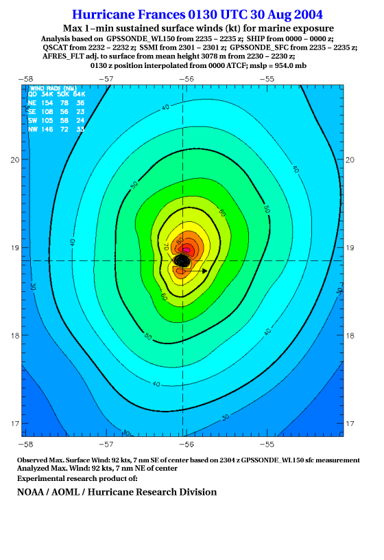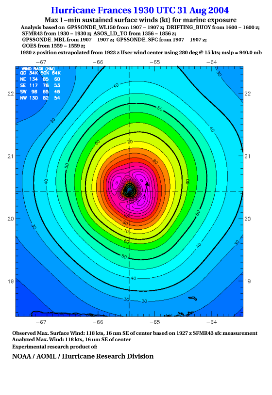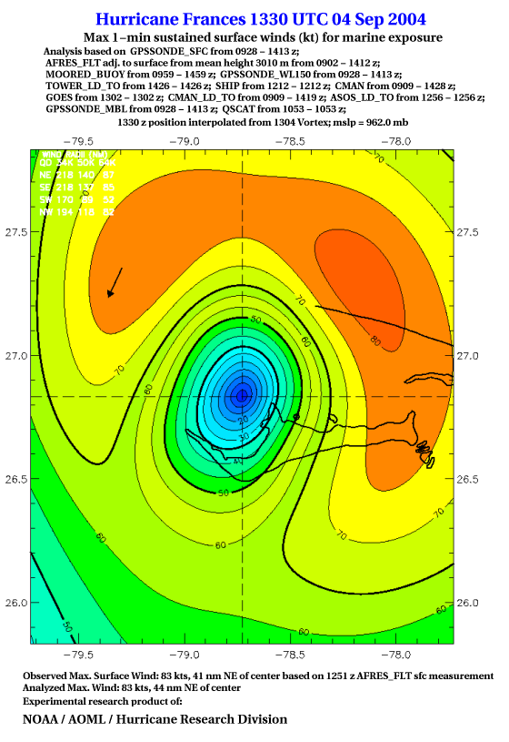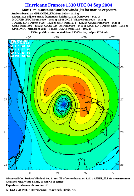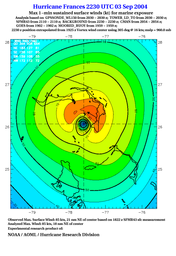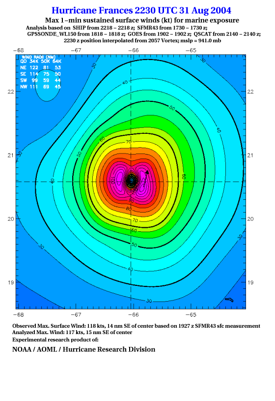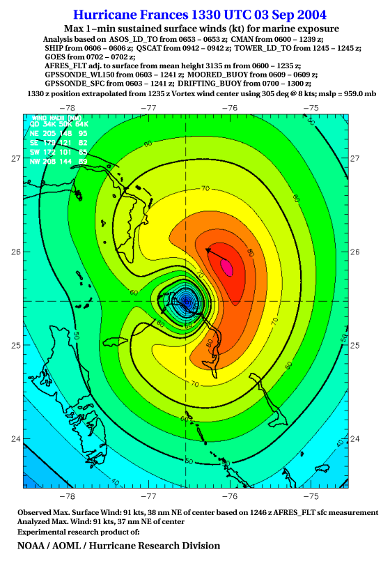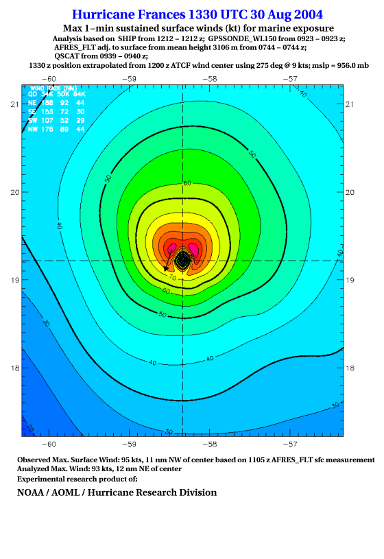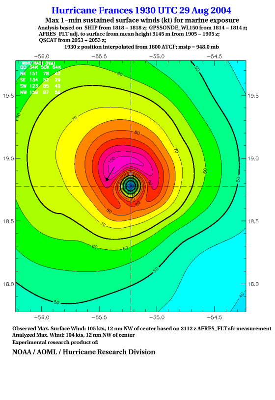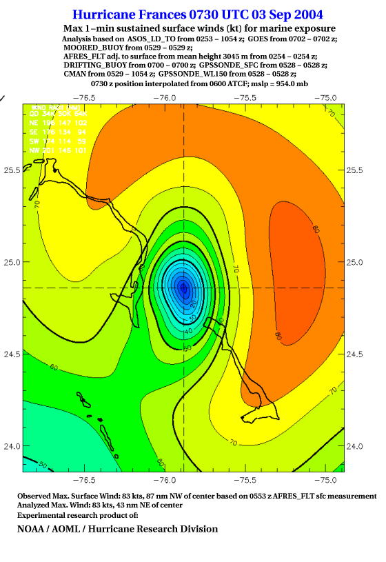 For high-resolution commercial quality Frances post storm wind analyses go here. (For Hwind Subscribers) |