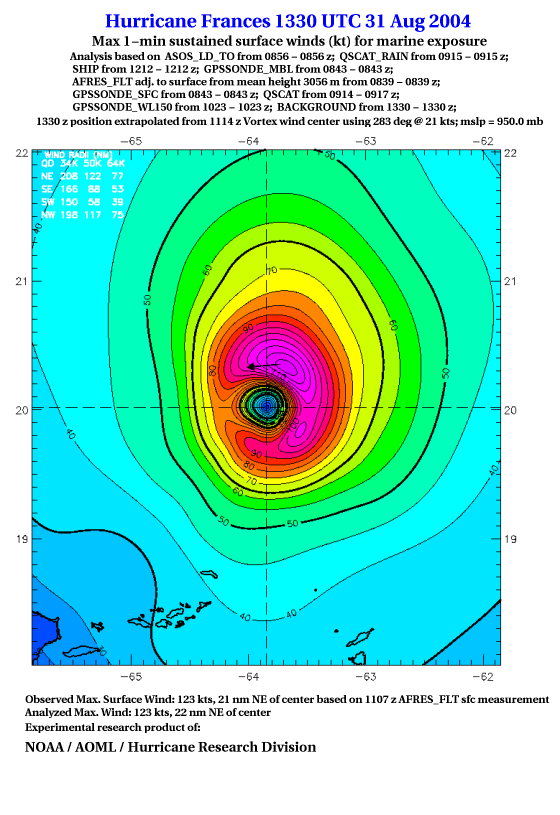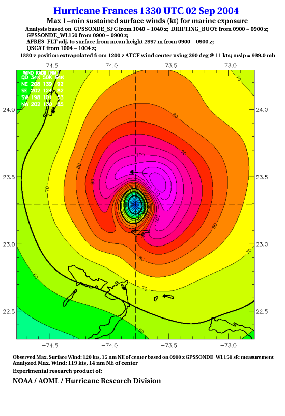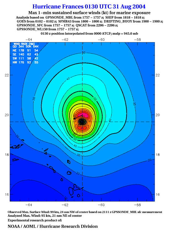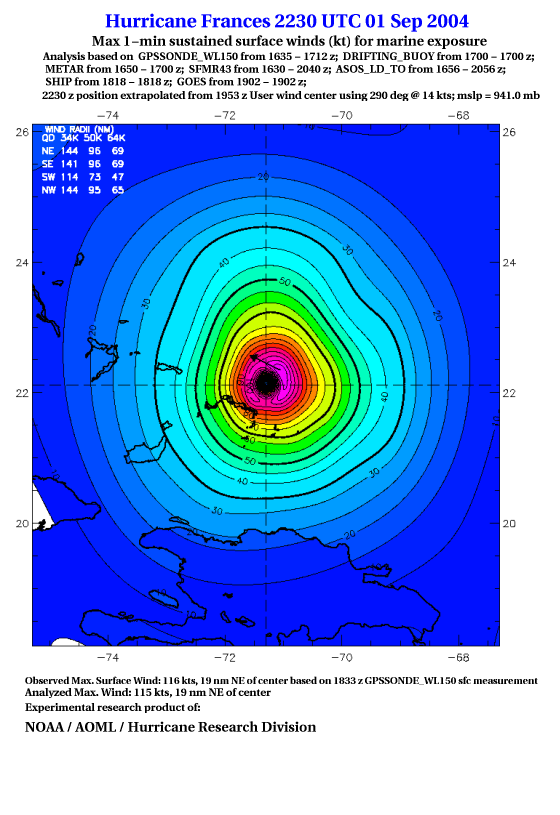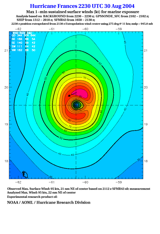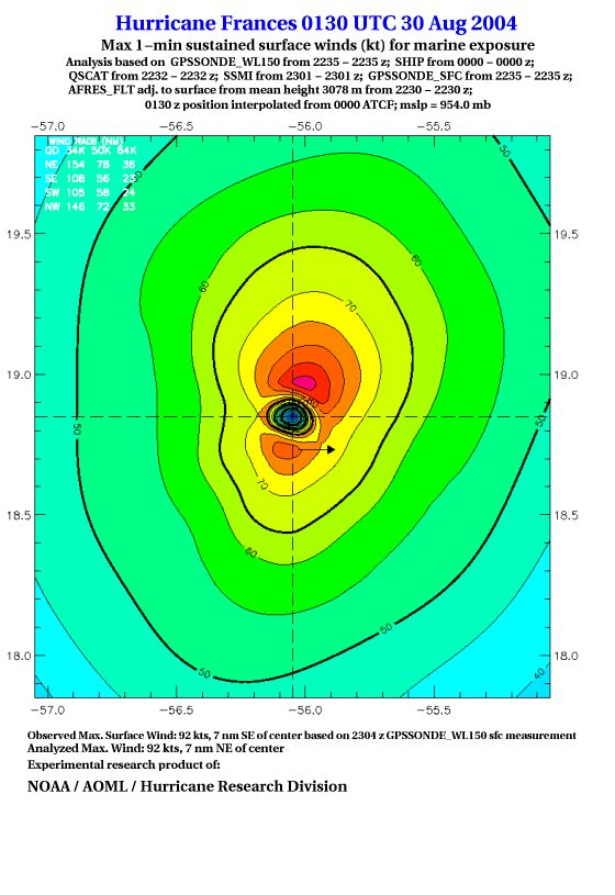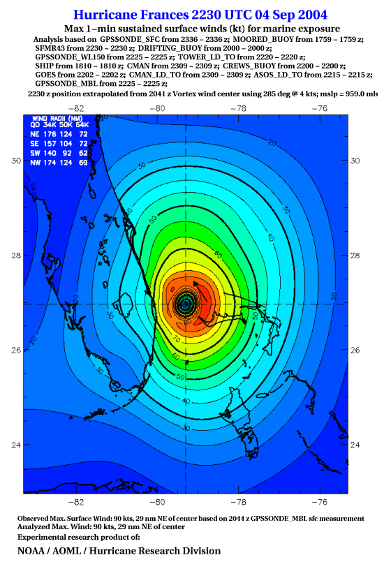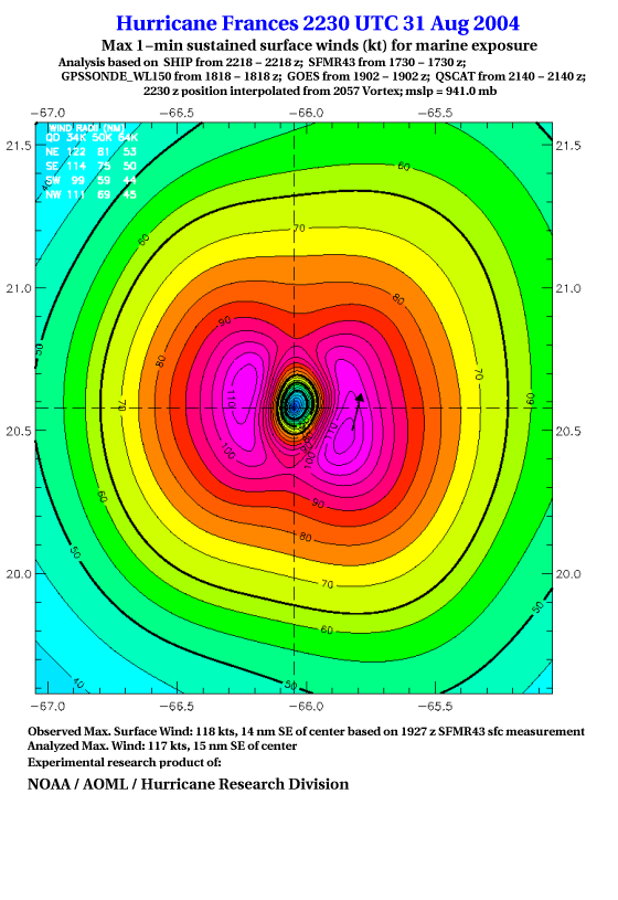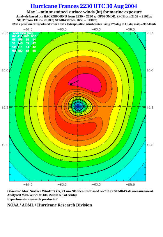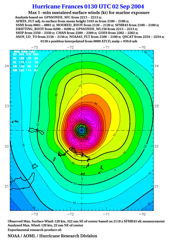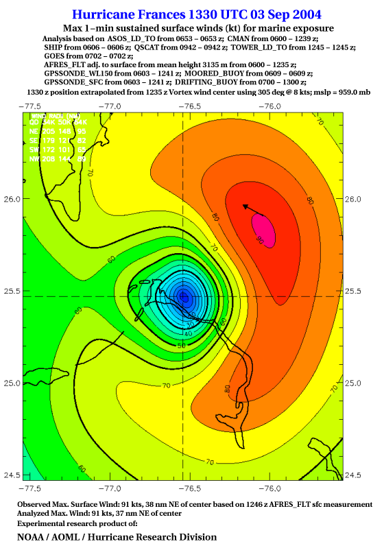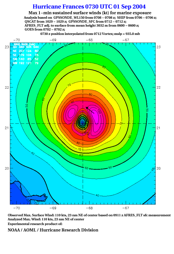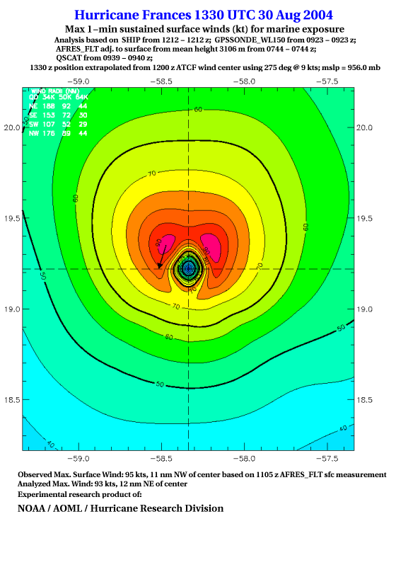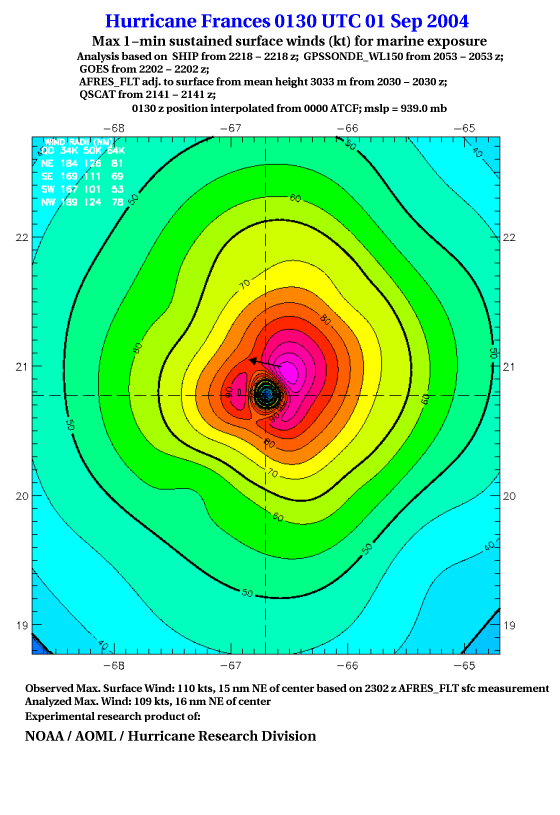For high-resolution commercial quality Frances post storm wind analyses go here. (For Hwind Subscribers) |