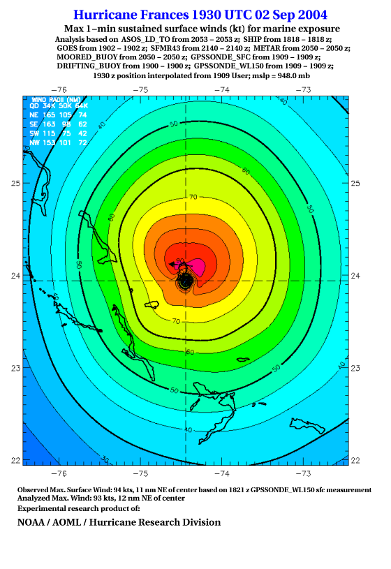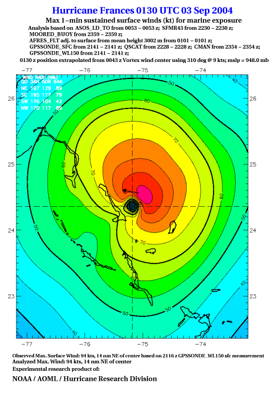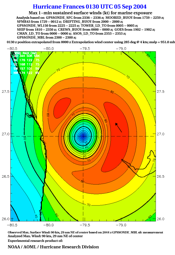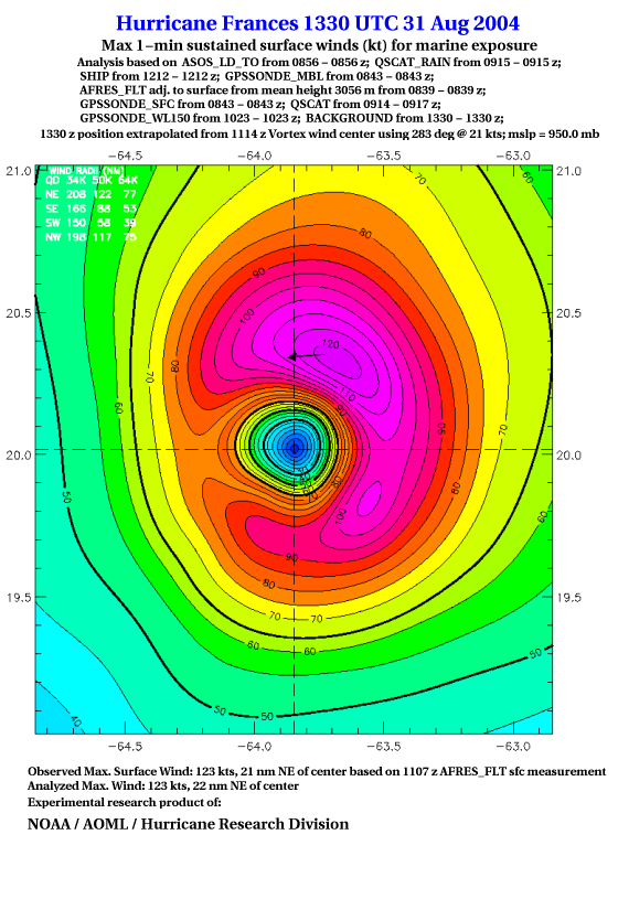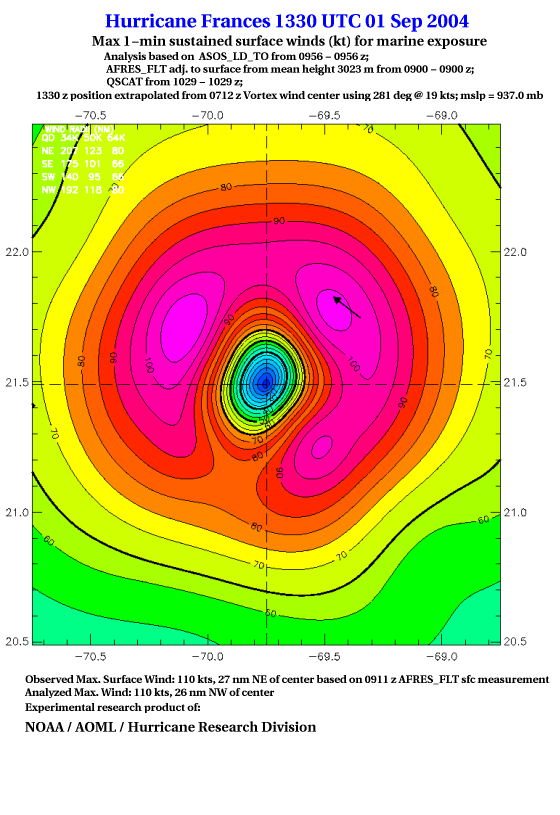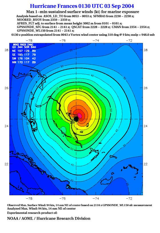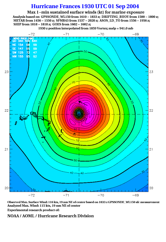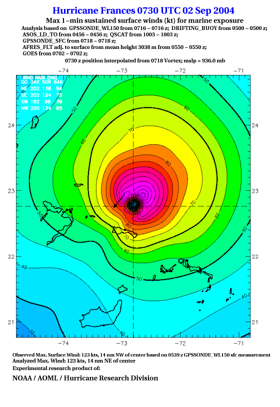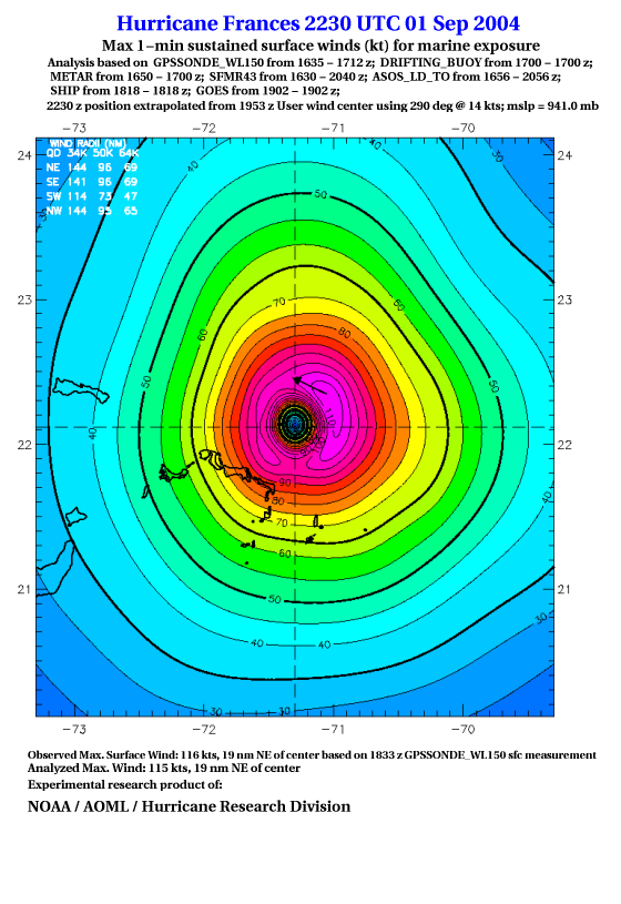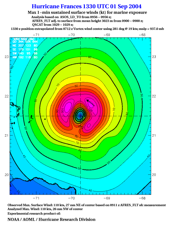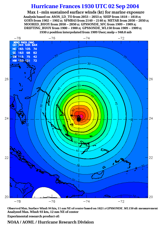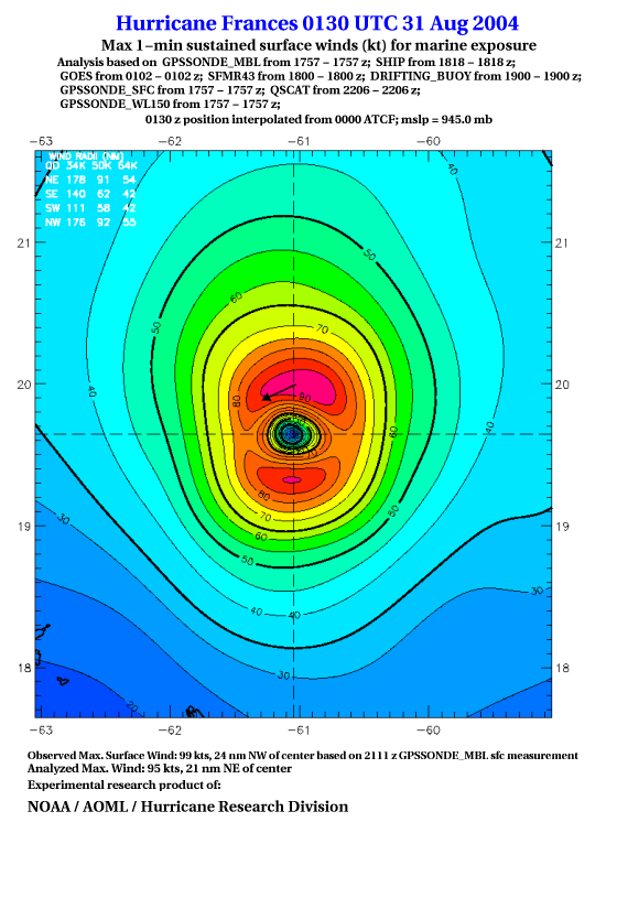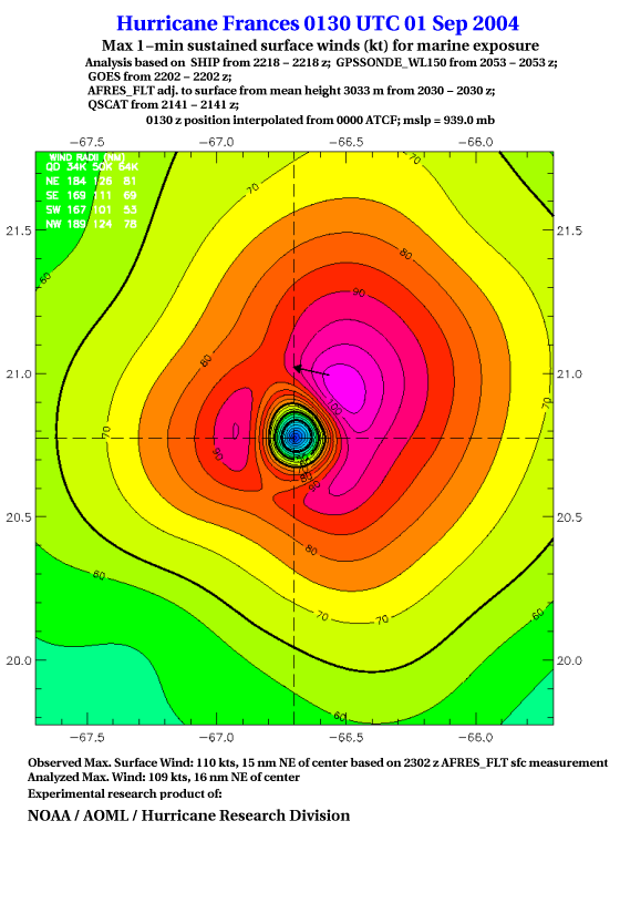For high-resolution commercial quality Frances post storm wind analyses go here. (For Hwind Subscribers) |