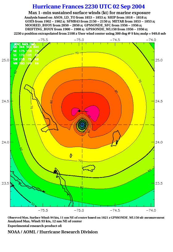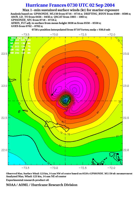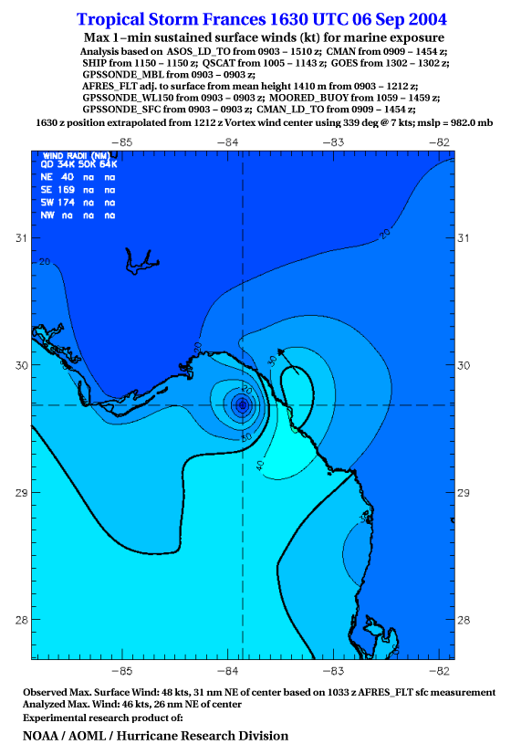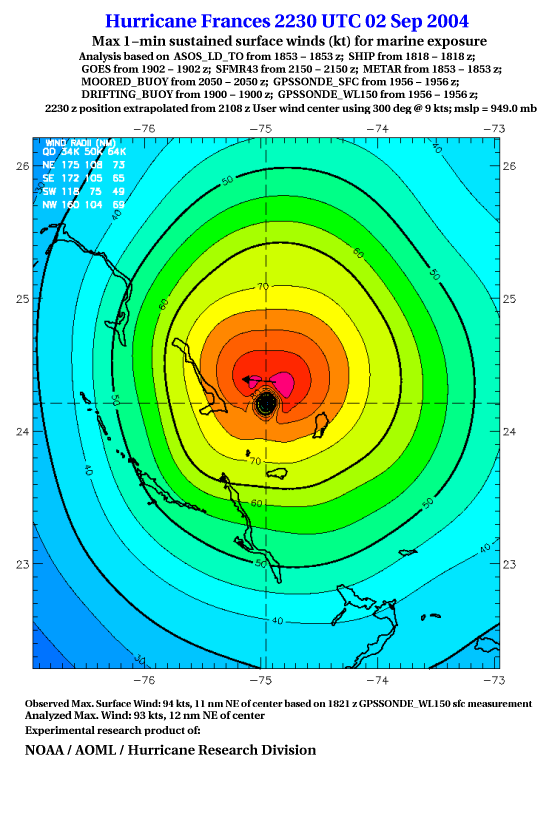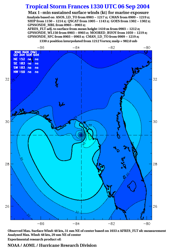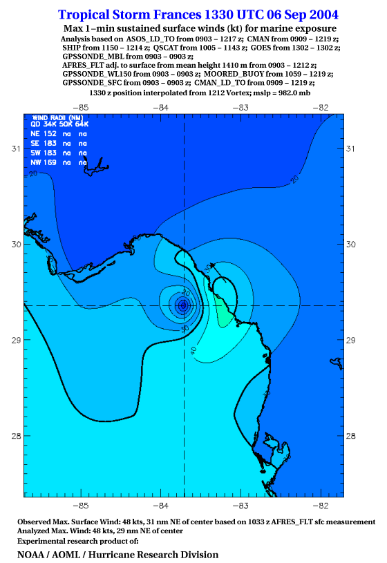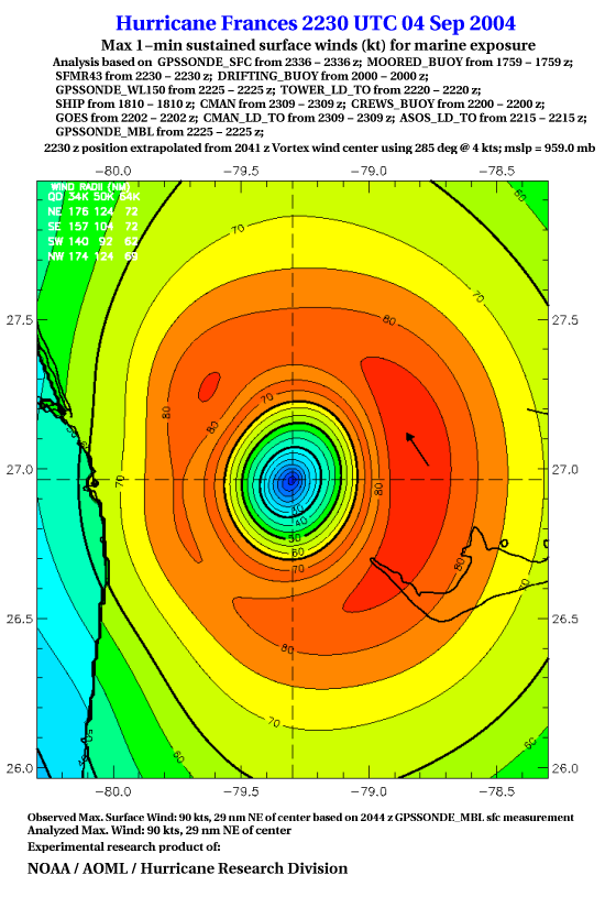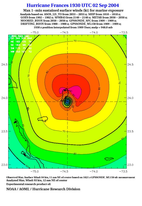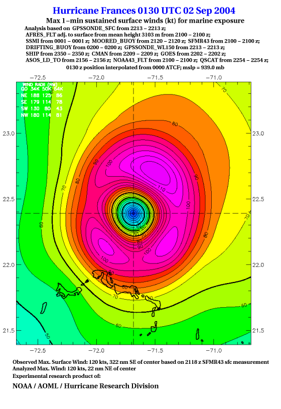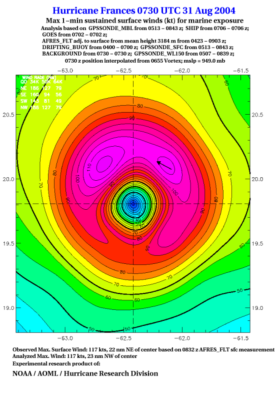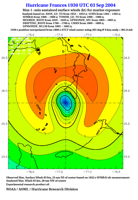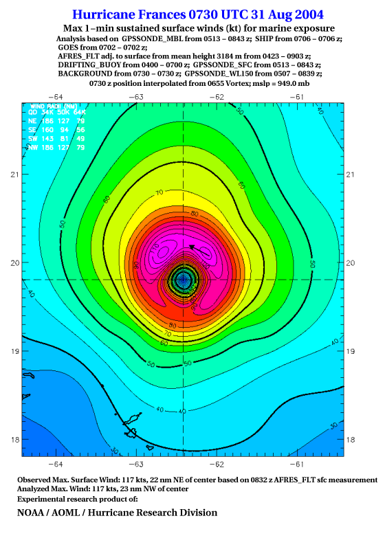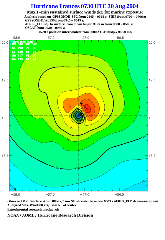 For high-resolution commercial quality Frances post storm wind analyses go here. (For Hwind Subscribers) |