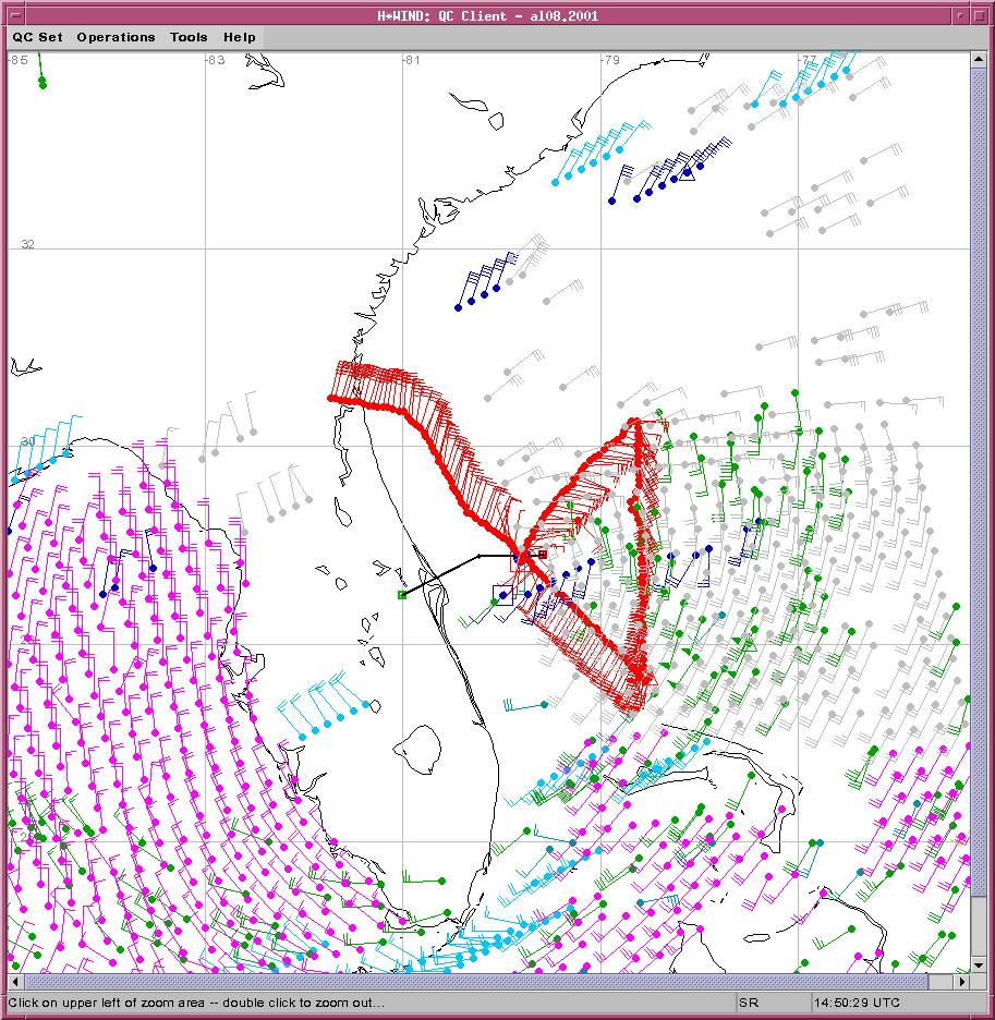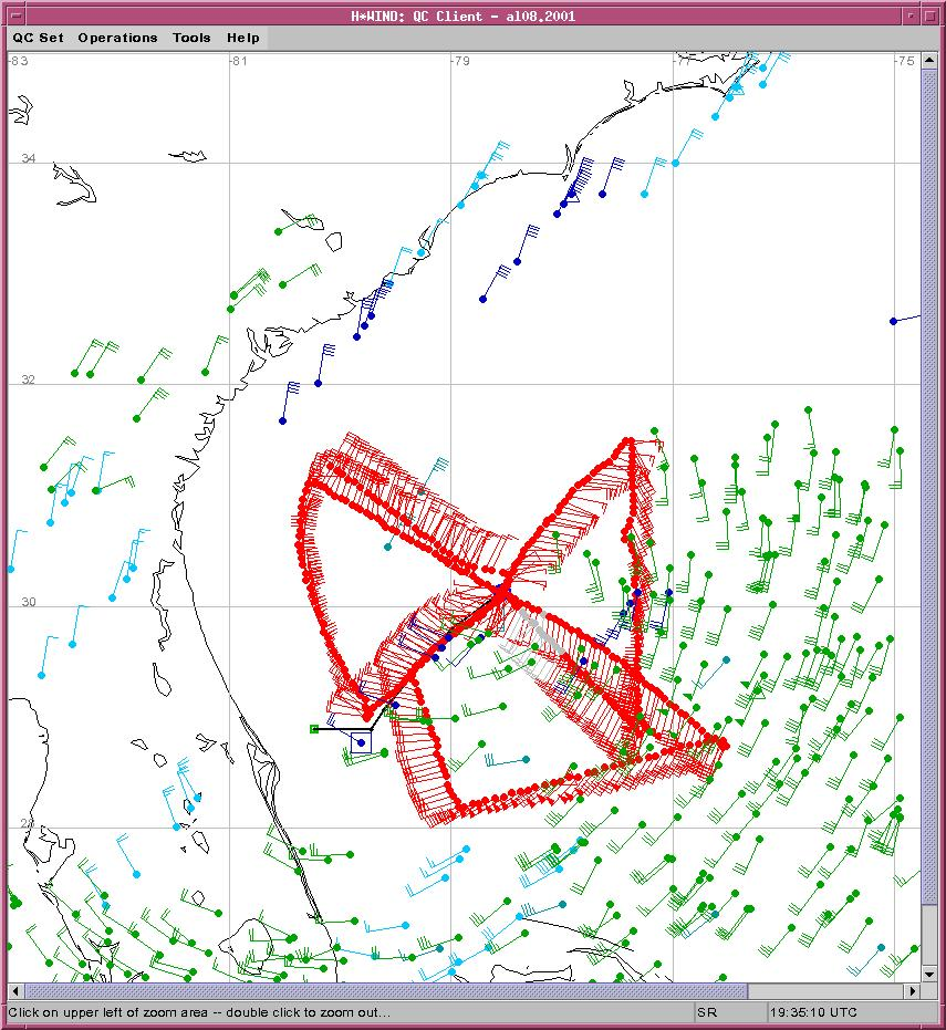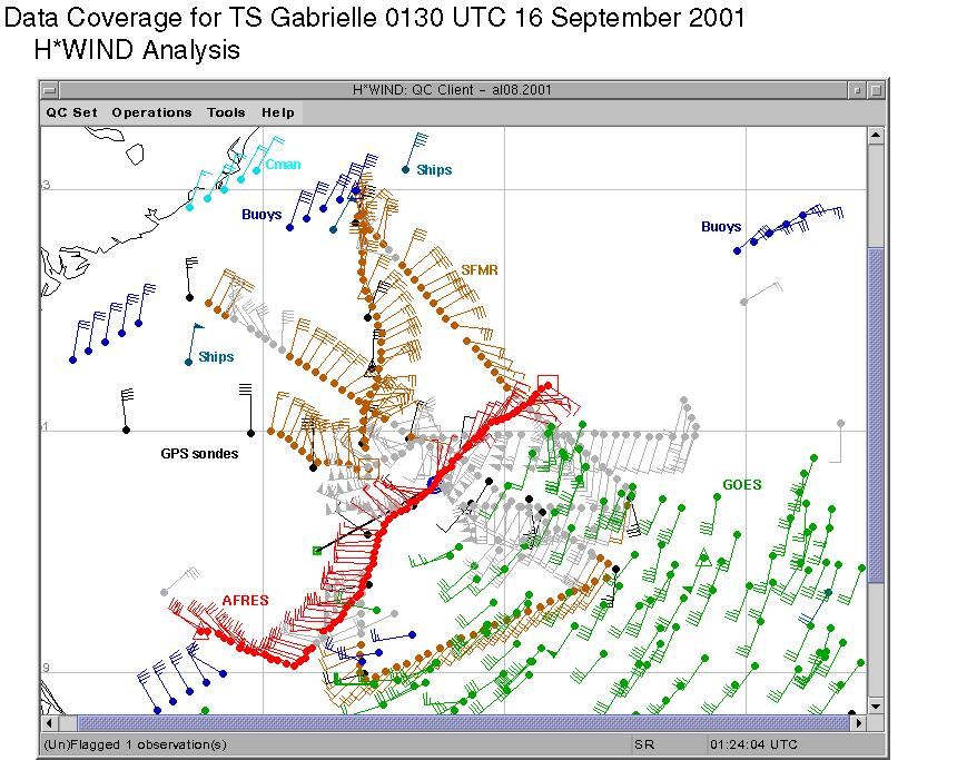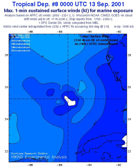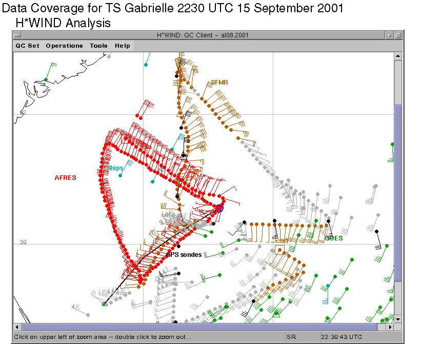 As a public service we are hosting the legacy H*wind archive that was formerly available through NOAA. Most of the archive was conducted in real-time so data collected after the analysis time were not available. Methods used to conduct the analyses evolved over the years. Grid spacing is on the order of 6 km and maximum domain size varies but is typically 8 x 8 degrees. There are known errors in some of the data coverage, mapping, and gridded products. For more information on the archive please go here. For realtime and post storm analysis of the 2014 season and a revised historical archive go here.