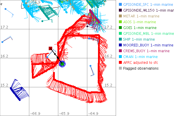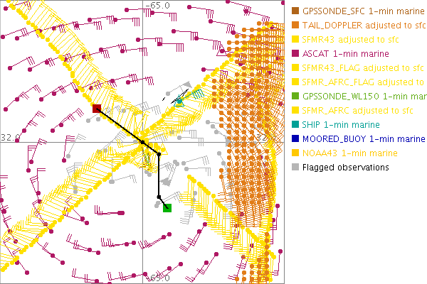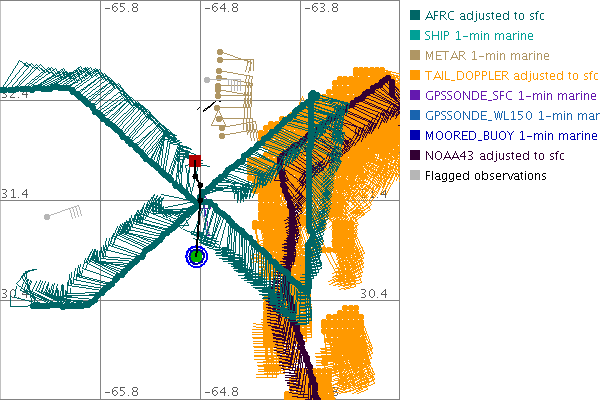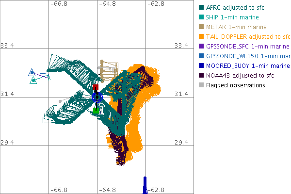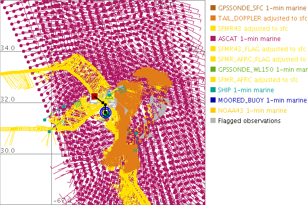 As a public service we are hosting the legacy H*wind archive that was formerly available through NOAA. Most of the archive was conducted in real-time so data collected after the analysis time were not available. Methods used to conduct the analyses evolved over the years. Grid spacing is on the order of 6 km and maximum domain size varies but is typically 8 x 8 degrees. There are known errors in some of the data coverage, mapping, and gridded products. For more information on the archive please go here. For realtime and post storm analysis of the 2014 season and a revised historical archive go here.