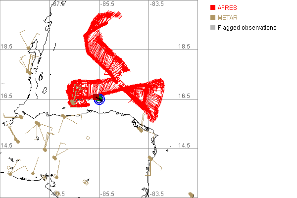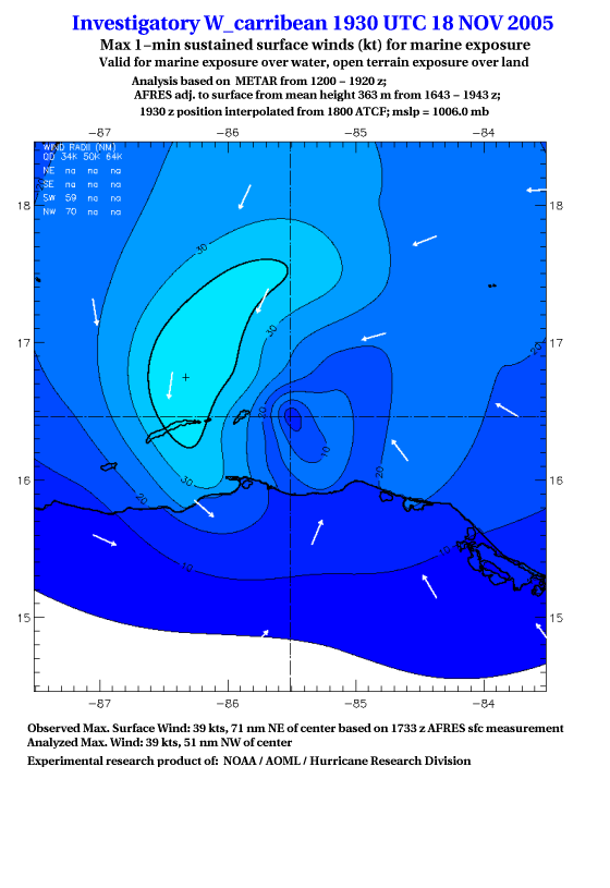 As a public service we are hosting the legacy H*wind archive that was formerly available through NOAA. Most of the archive was conducted in real-time so data collected after the analysis time were not available. Methods used to conduct the analyses evolved over the years. Grid spacing is on the order of 6 km and maximum domain size varies but is typically 8 x 8 degrees. There are known errors in some of the data coverage, mapping, and gridded products. For more information on the archive please go here. For realtime and post storm analysis of the 2014 season and a revised historical archive go here.