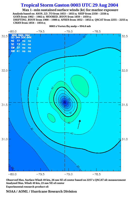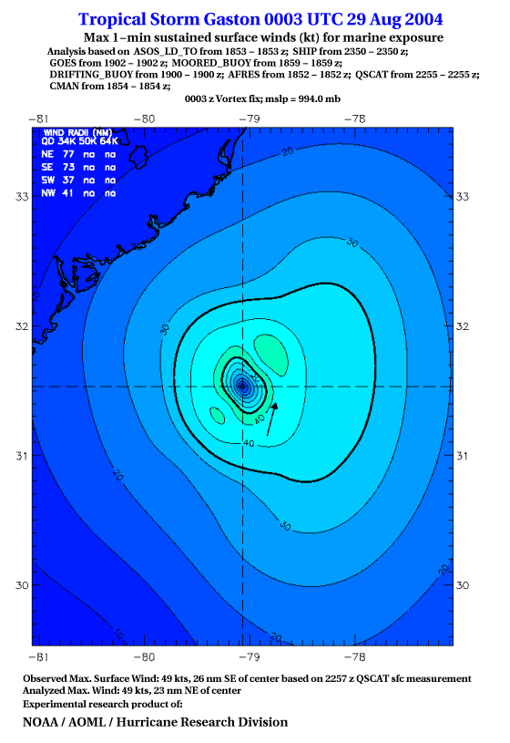As a public service we are hosting the legacy H*wind archive that was formerly available through NOAA. Most of the archive was conducted in real-time so data collected after the analysis time were not available. Methods used to conduct the analyses evolved over the years. Grid spacing is on the order of 6 km and maximum domain size varies but is typically 8 x 8 degrees. There are known errors in some of the data coverage, mapping, and gridded products. For more information on the archive please go here. For realtime and post storm analysis of the 2014 season and a revised historical archive go here.