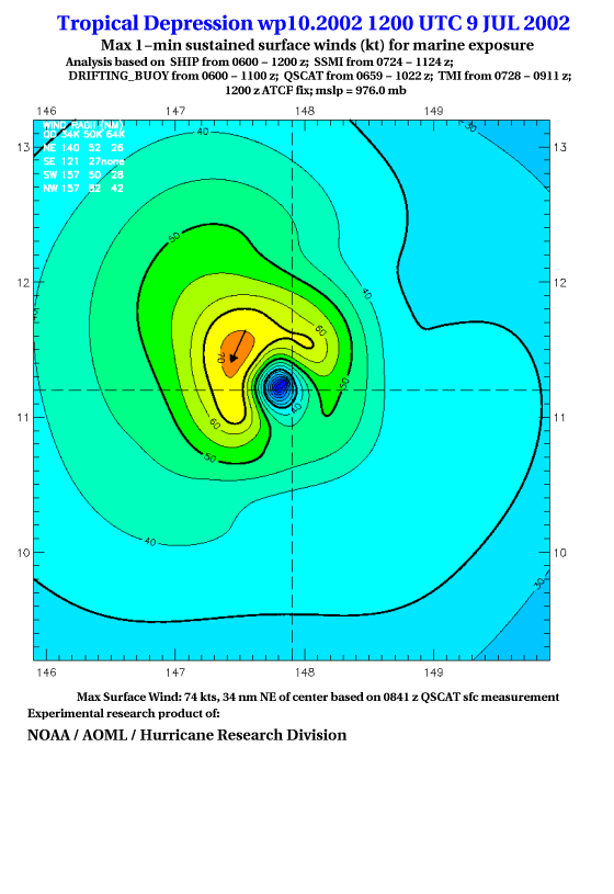 As a public service we are hosting the legacy H*wind archive that was formerly available through NOAA. Most of the archive was conducted in real-time so data collected after the analysis time were not available. Methods used to conduct the analyses evolved over the years. Grid spacing is on the order of 6 km and maximum domain size varies but is typically 8 x 8 degrees. There are known errors in some of the data coverage, mapping, and gridded products. For more information on the archive please go here. For realtime and post storm analysis of the 2014 season and a revised historical archive go here.