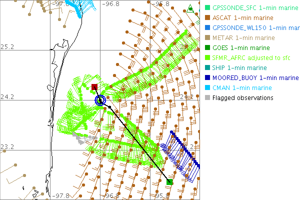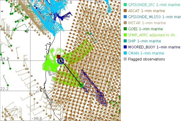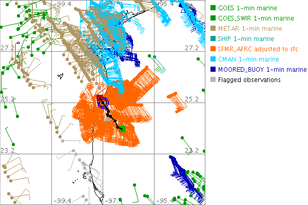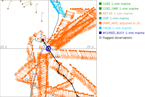 As a public service we are hosting the legacy H*wind archive that was formerly available through NOAA. Most of the archive was conducted in real-time so data collected after the analysis time were not available. Methods used to conduct the analyses evolved over the years. Grid spacing is on the order of 6 km and maximum domain size varies but is typically 8 x 8 degrees. There are known errors in some of the data coverage, mapping, and gridded products. For more information on the archive please go here. For realtime and post storm analysis of the 2014 season and a revised historical archive go here.