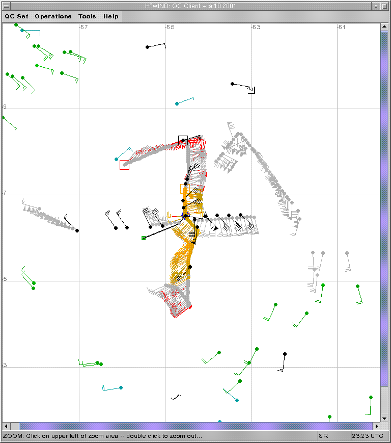 As a public service we are hosting the legacy H*wind archive that was formerly available through NOAA. Most of the archive was conducted in real-time so data collected after the analysis time were not available. Methods used to conduct the analyses evolved over the years. Grid spacing is on the order of 6 km and maximum domain size varies but is typically 8 x 8 degrees. There are known errors in some of the data coverage, mapping, and gridded products. For more information on the archive please go here. For realtime and post storm analysis of the 2014 season and a revised historical archive go here.