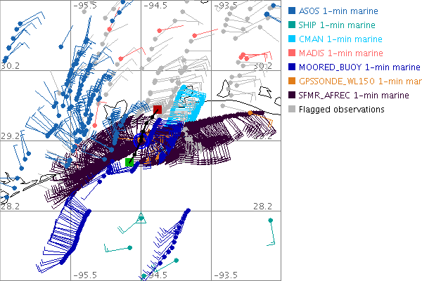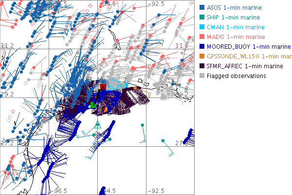 As a public service we are hosting the legacy H*wind archive that was formerly available through NOAA. Most of the archive was conducted in real-time so data collected after the analysis time were not available. Methods used to conduct the analyses evolved over the years. Grid spacing is on the order of 6 km and maximum domain size varies but is typically 8 x 8 degrees. There are known errors in some of the data coverage, mapping, and gridded products. For more information on the archive please go here. For realtime and post storm analysis of the 2014 season and a revised historical archive go here.