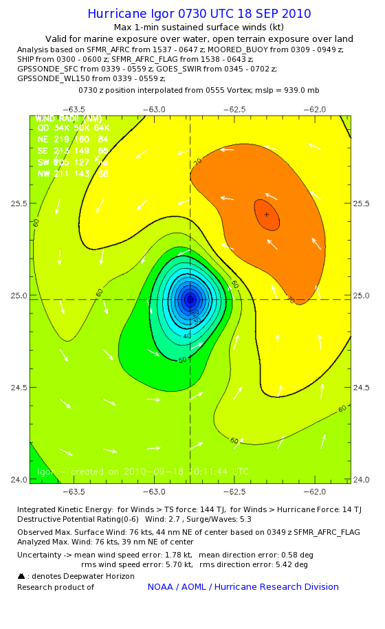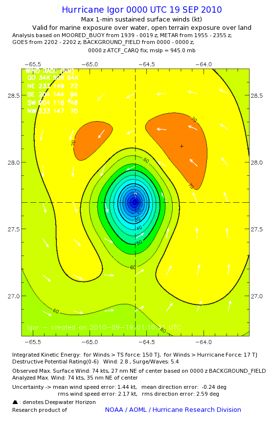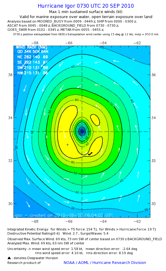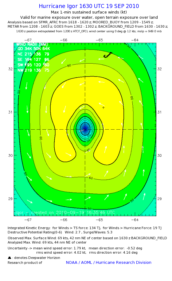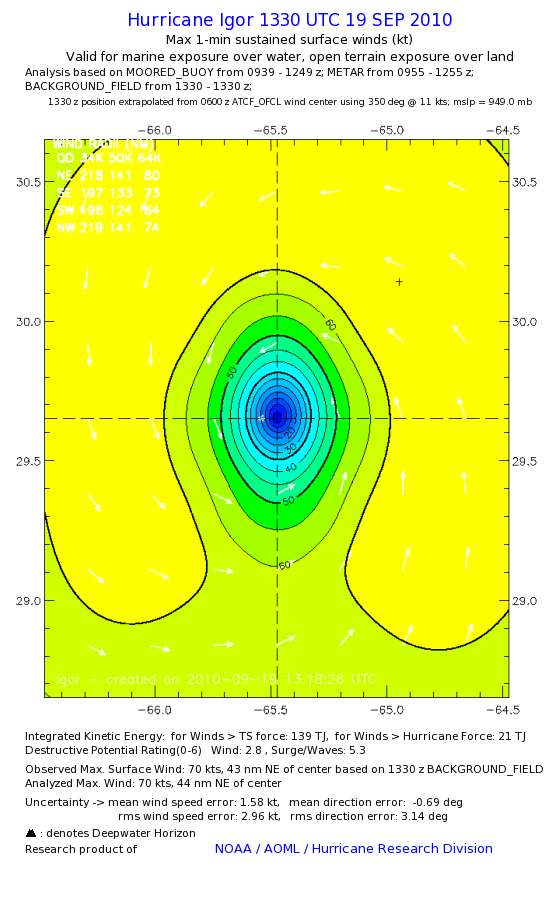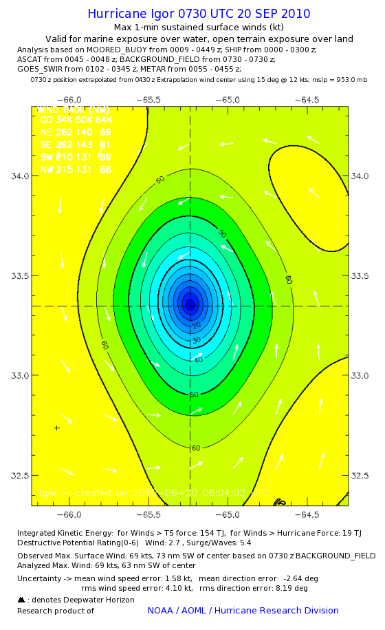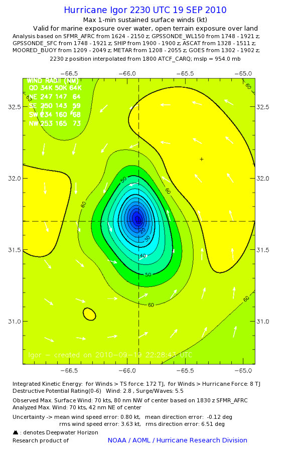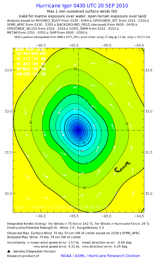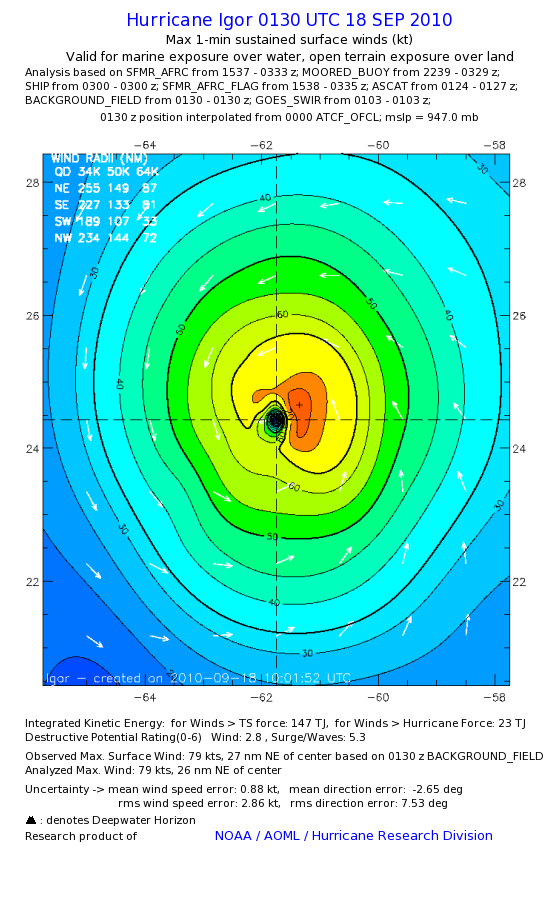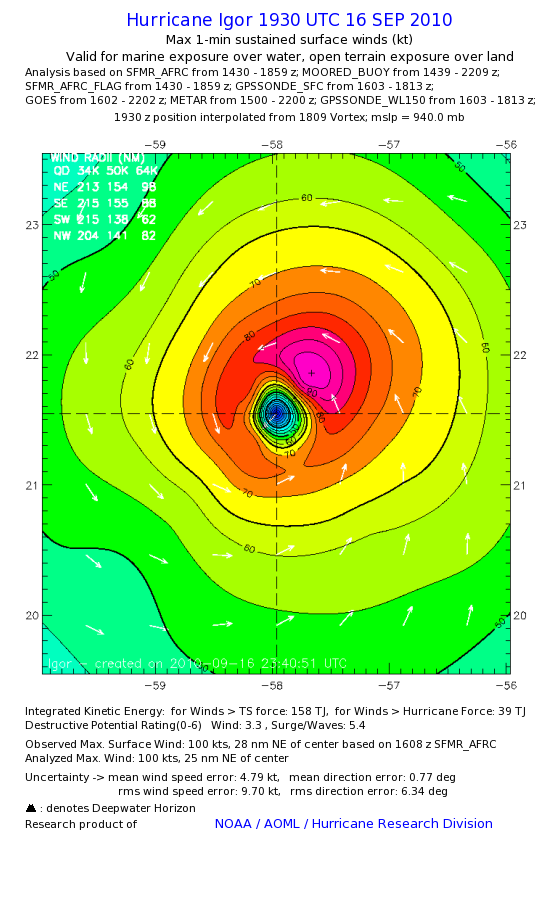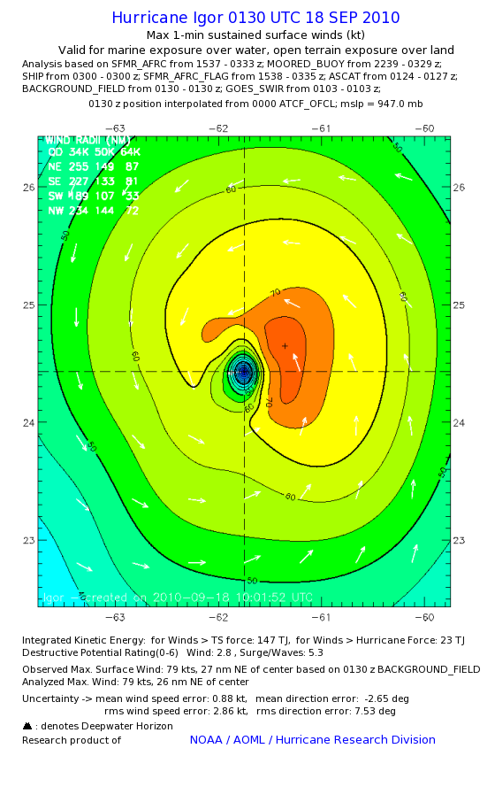 | The following maximum sustained wind swaths for Igor are preliminary results and will be subject to further modifications as new data become available. | |||||||||||