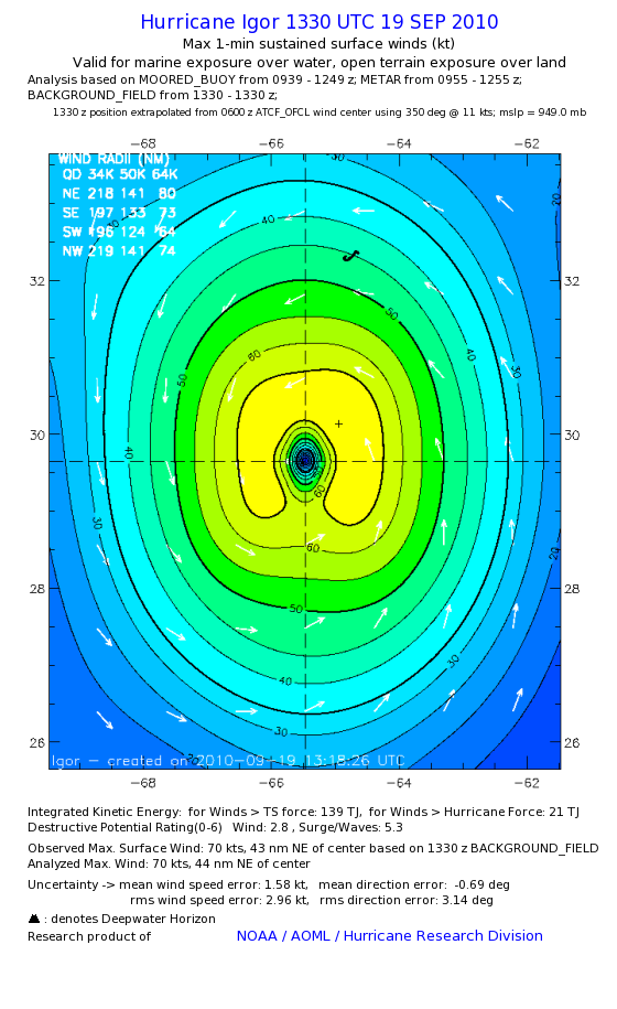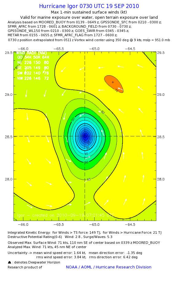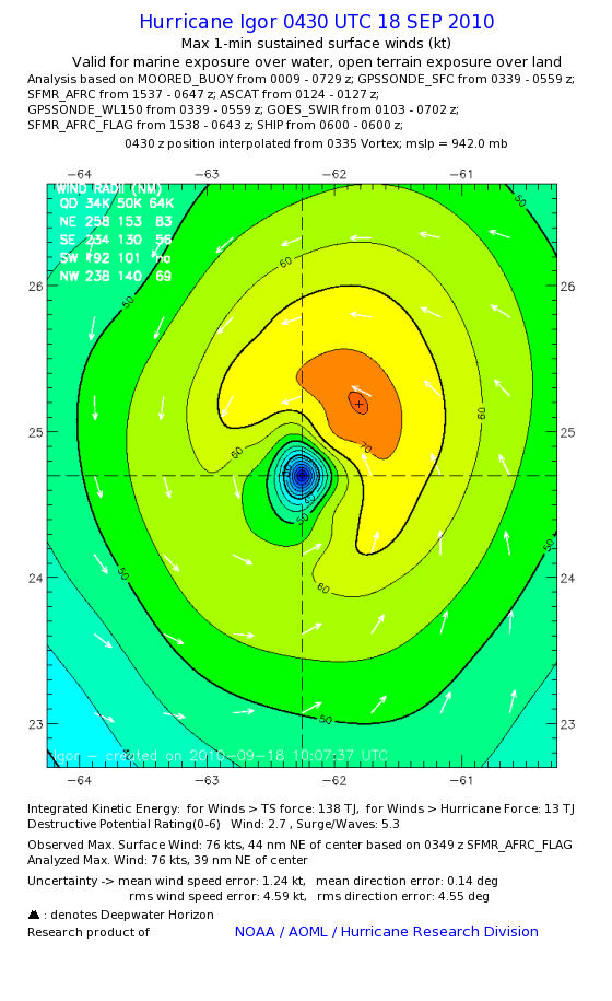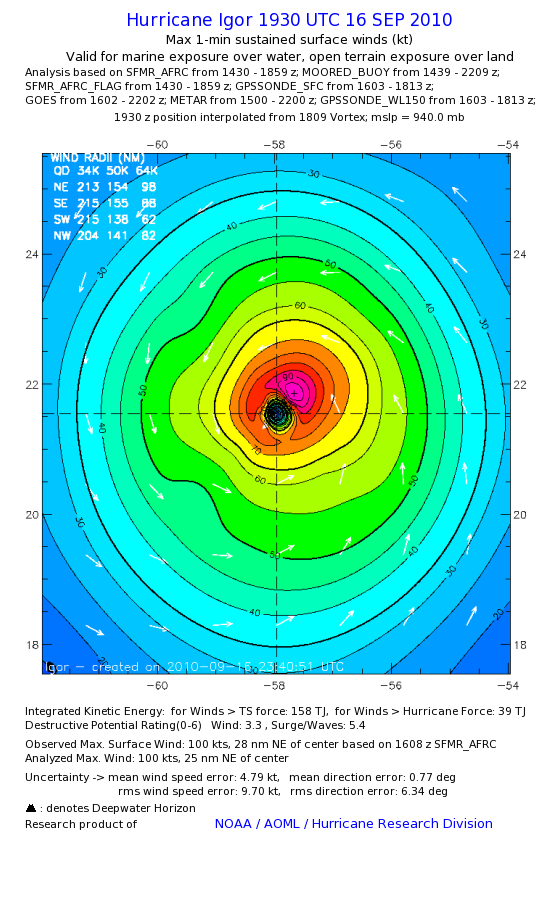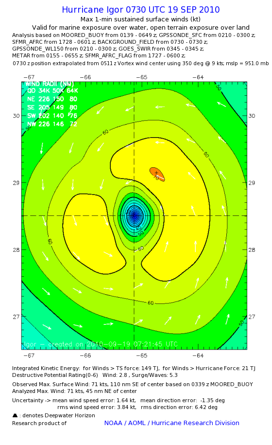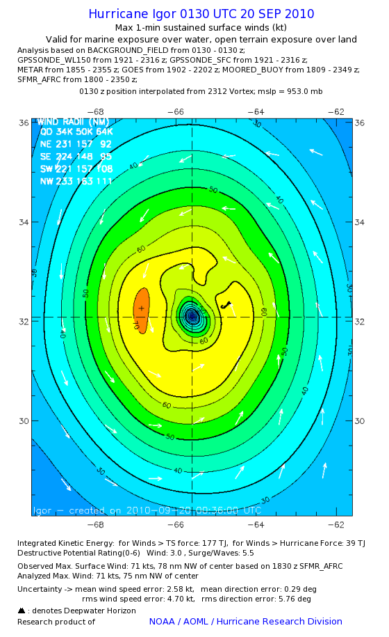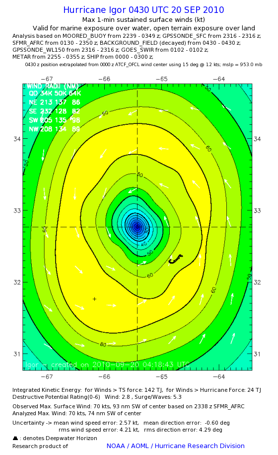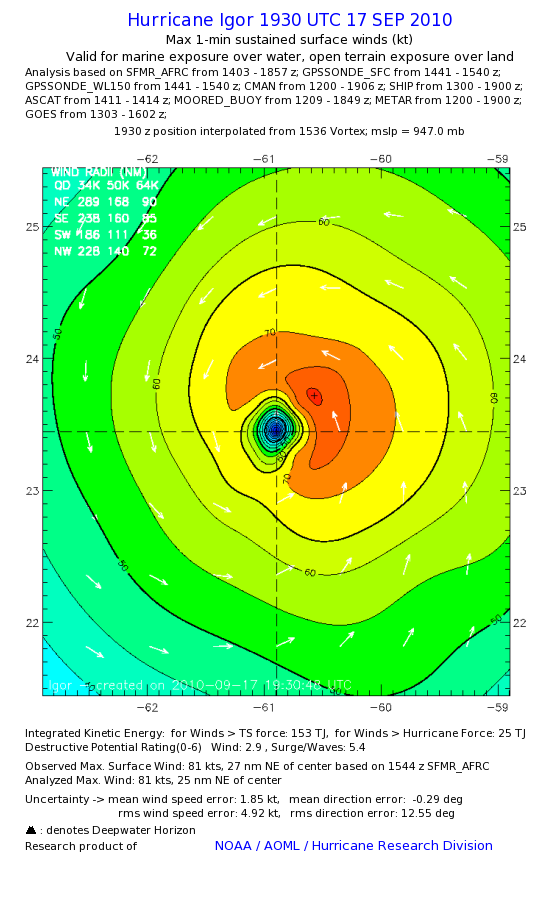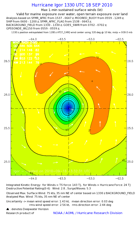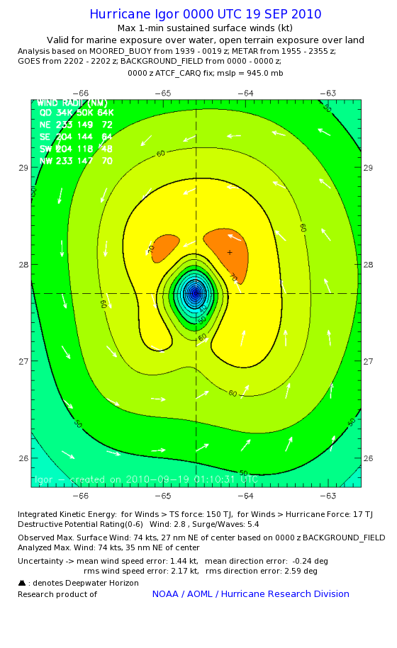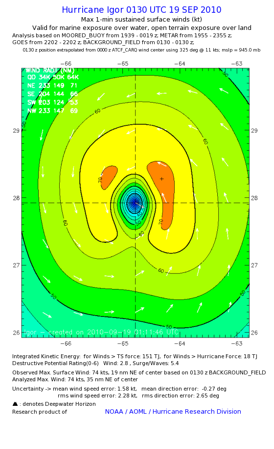 | The following maximum sustained wind swaths for Igor are preliminary results and will be subject to further modifications as new data become available. | |||||||||||
