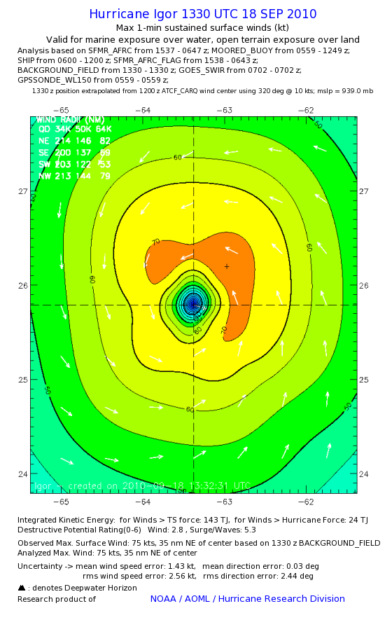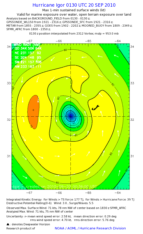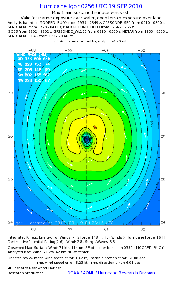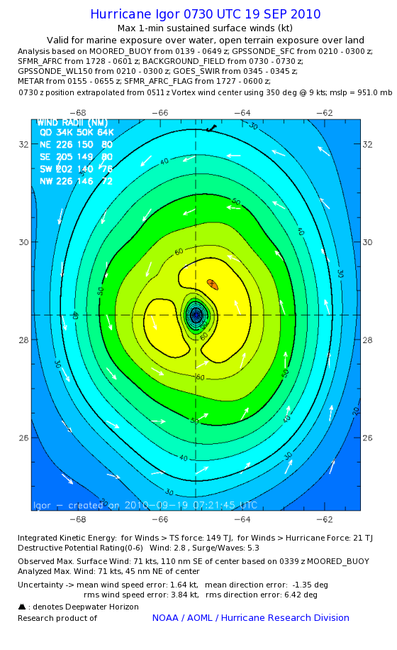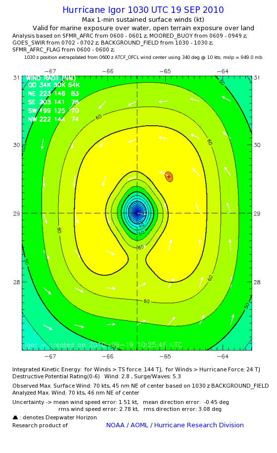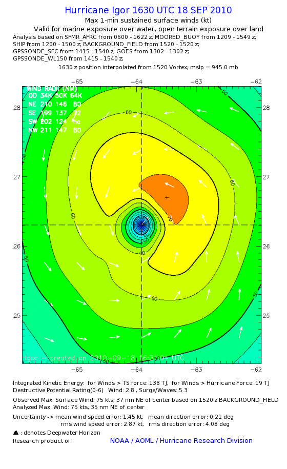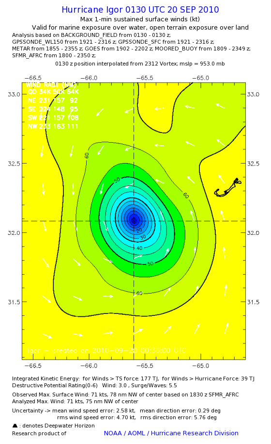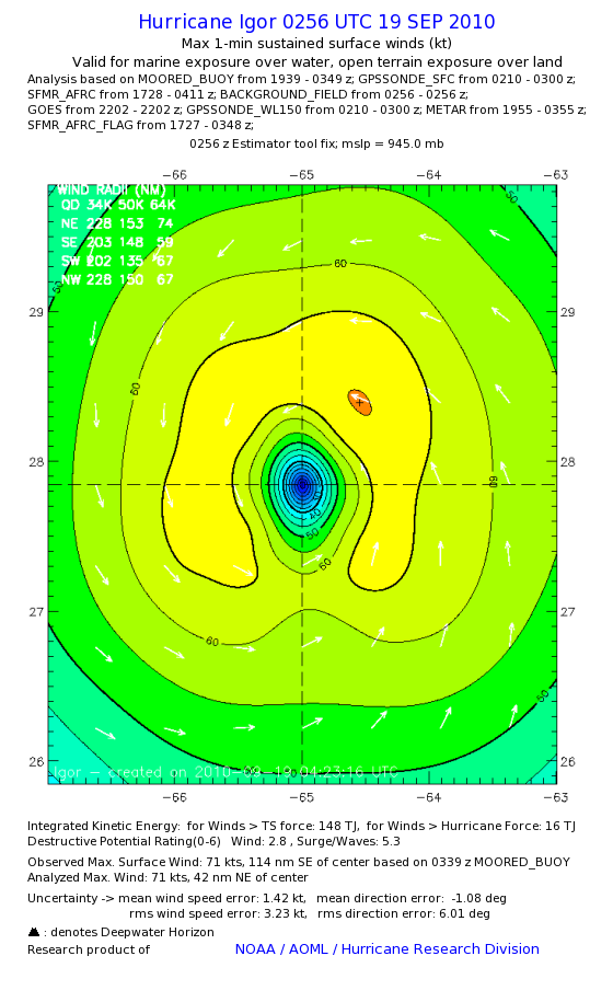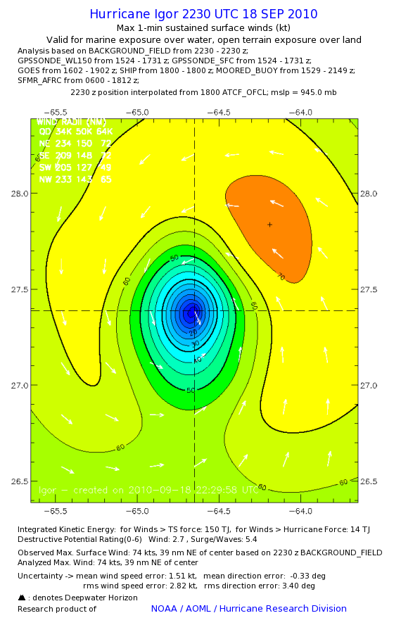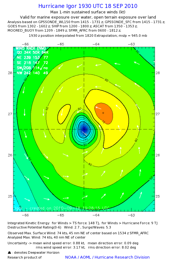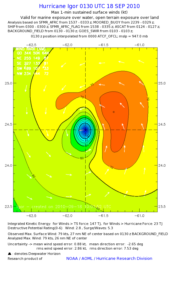 | The following maximum sustained wind swaths for Igor are preliminary results and will be subject to further modifications as new data become available. | |||||||||||