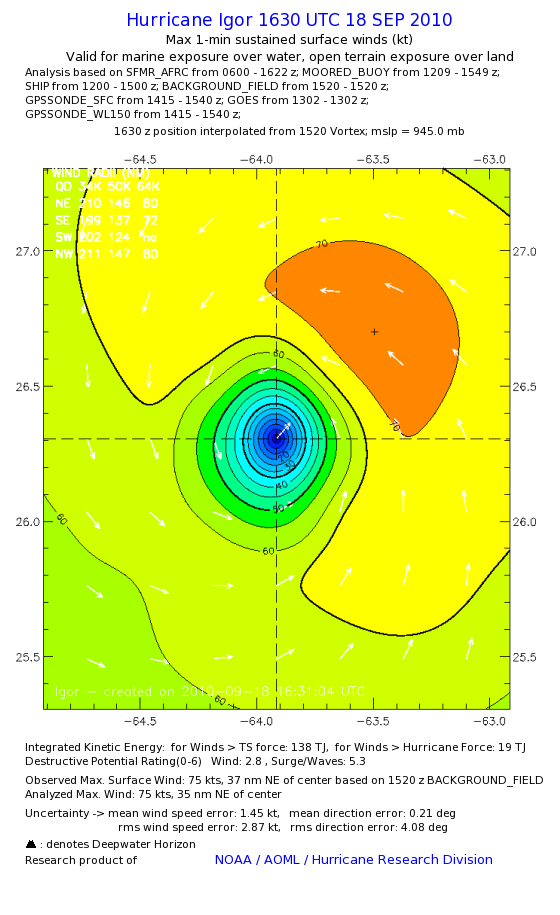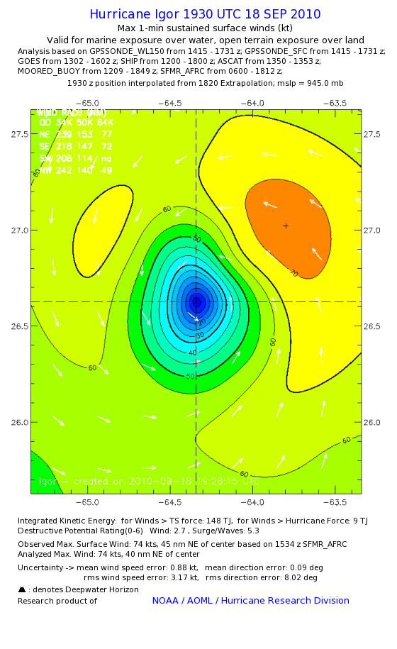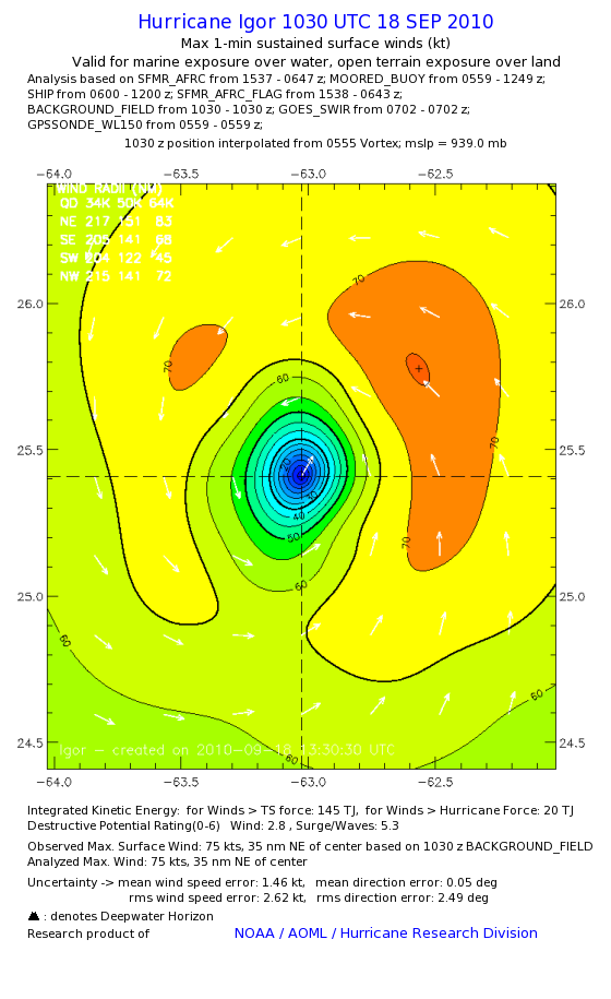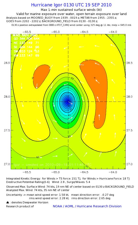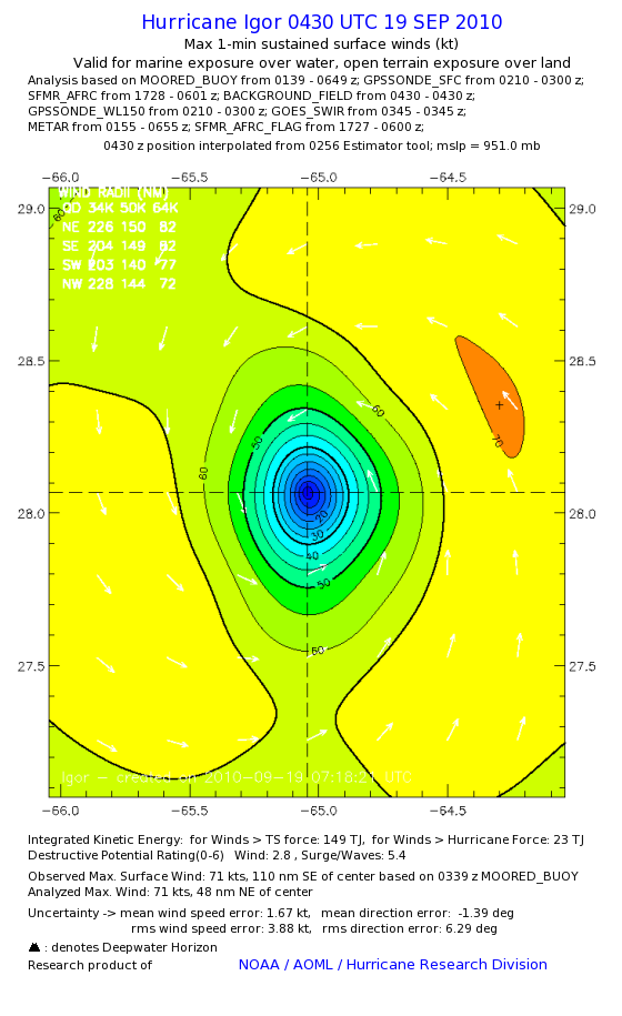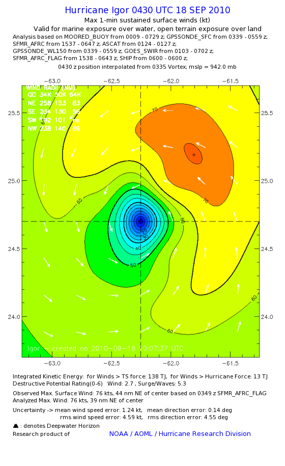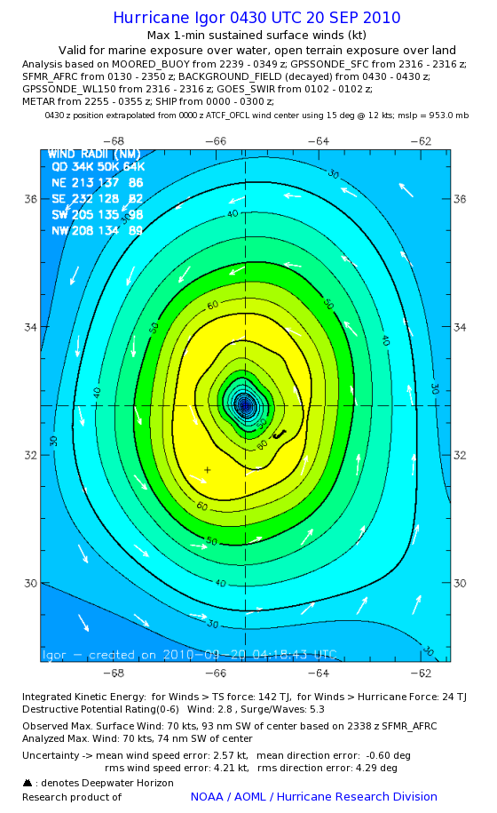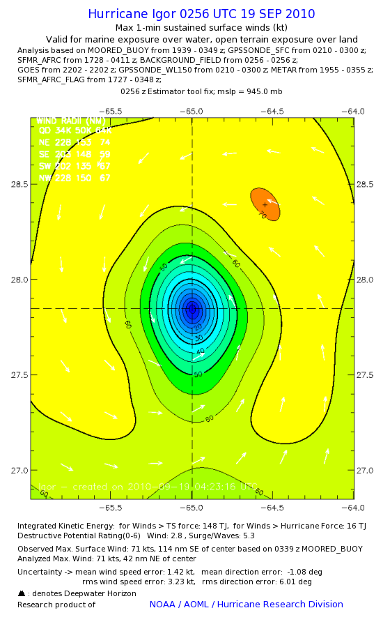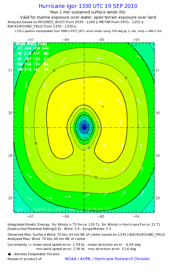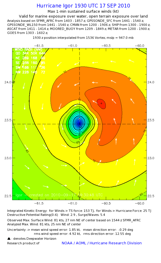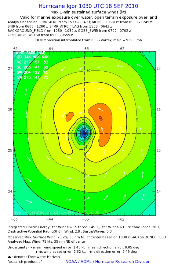 | The following maximum sustained wind swaths for Igor are preliminary results and will be subject to further modifications as new data become available. | |||||||||||