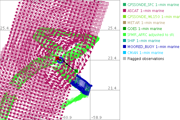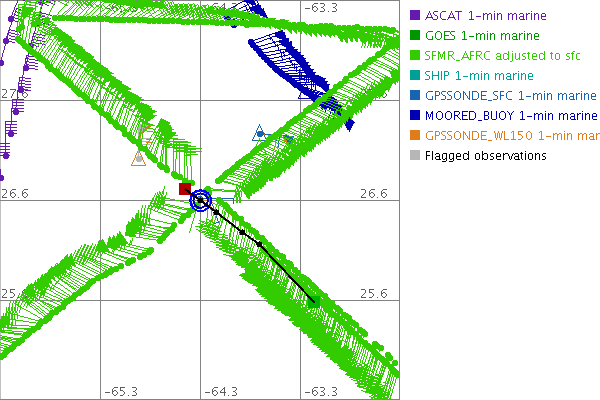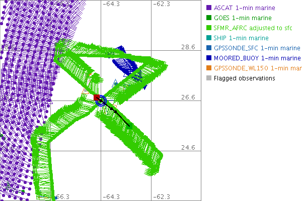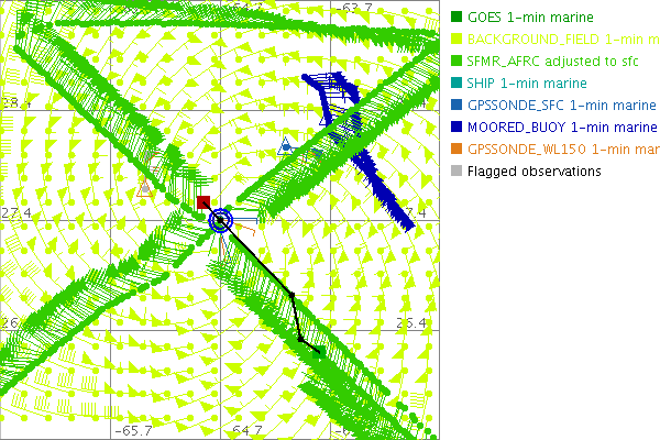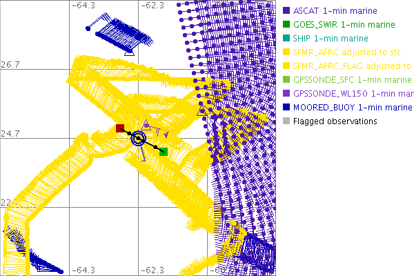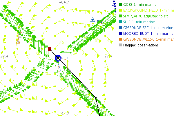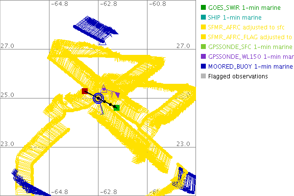 As a public service we are hosting the legacy H*wind archive that was formerly available through NOAA. Most of the archive was conducted in real-time so data collected after the analysis time were not available. Methods used to conduct the analyses evolved over the years. Grid spacing is on the order of 6 km and maximum domain size varies but is typically 8 x 8 degrees. There are known errors in some of the data coverage, mapping, and gridded products. For more information on the archive please go here. For realtime and post storm analysis of the 2014 season and a revised historical archive go here. |