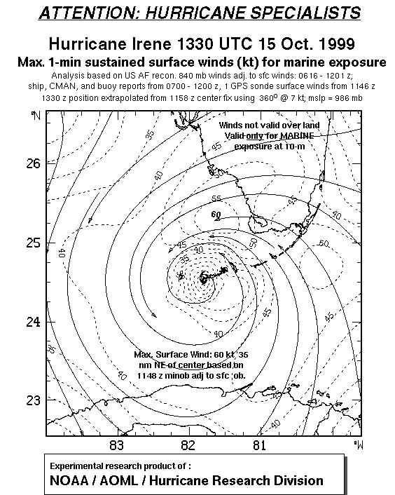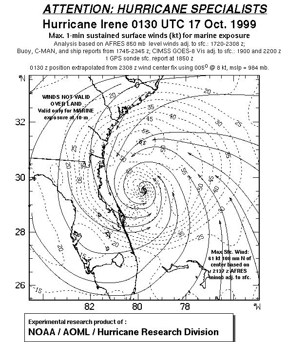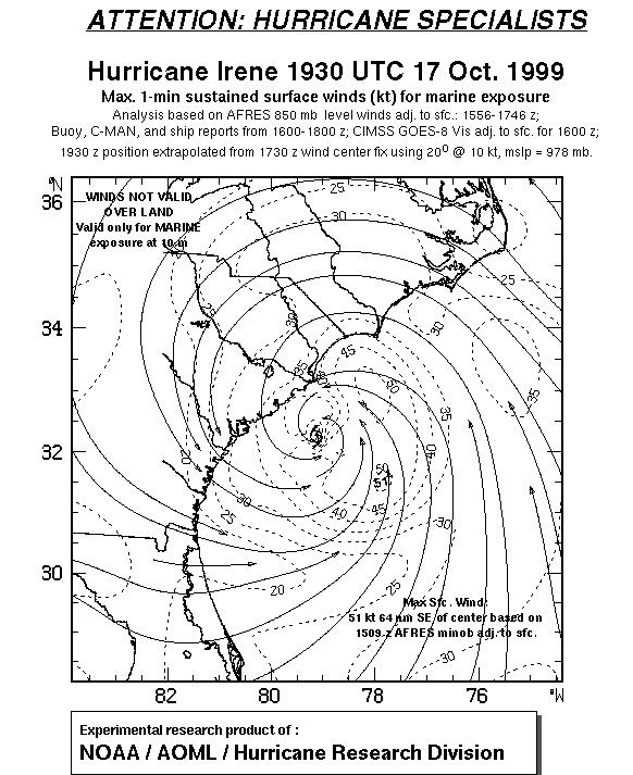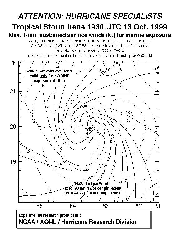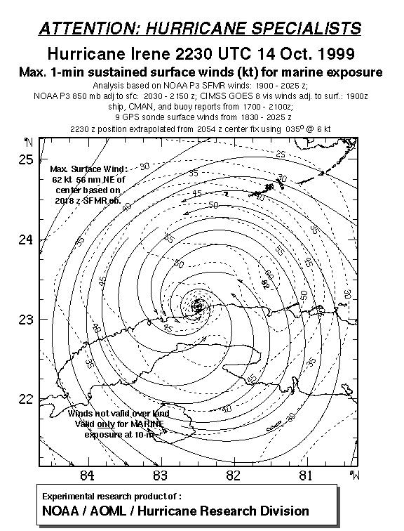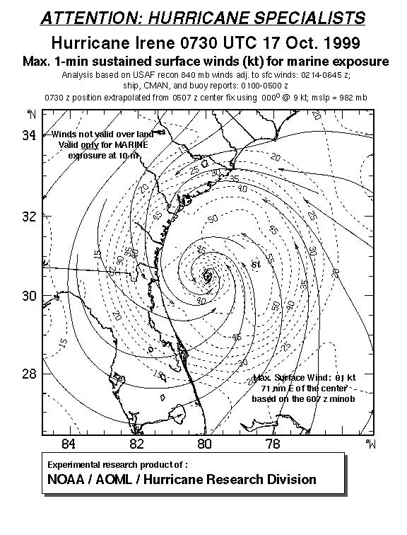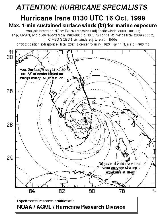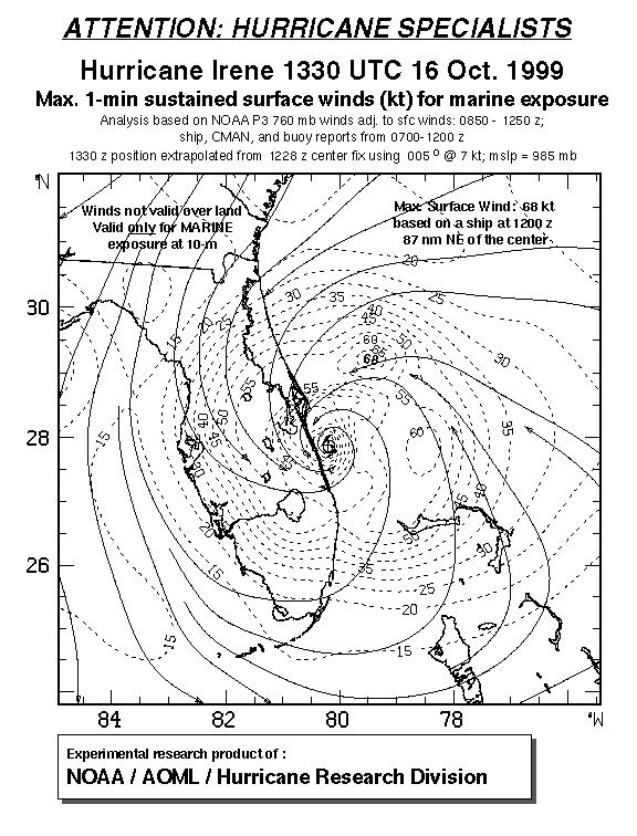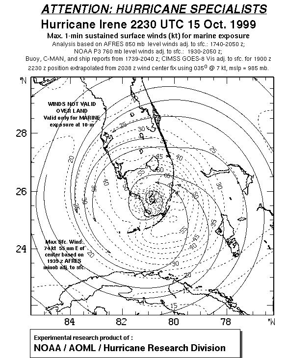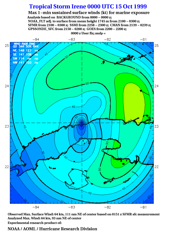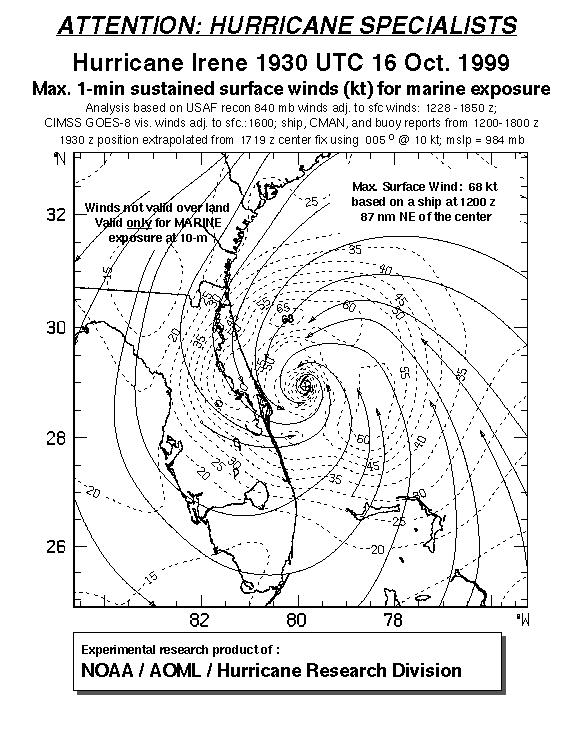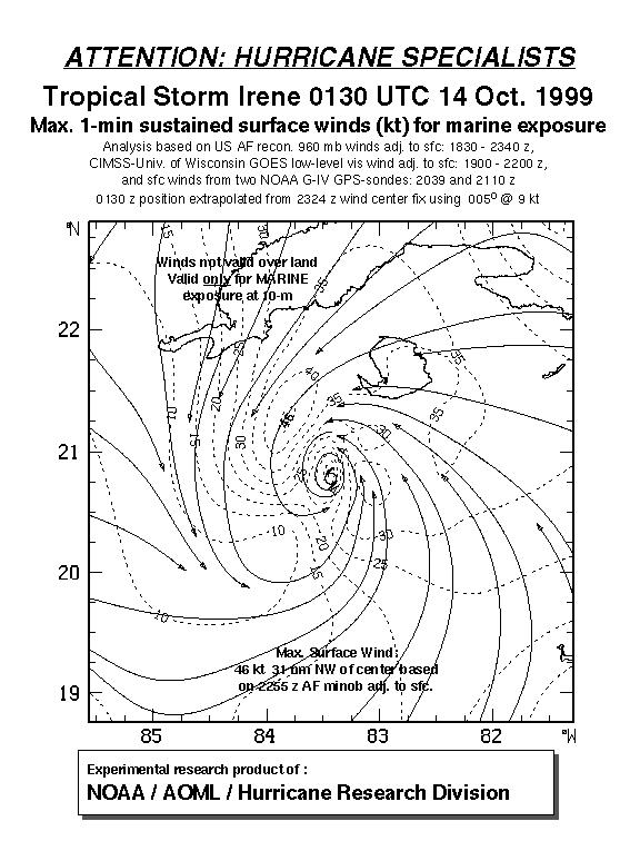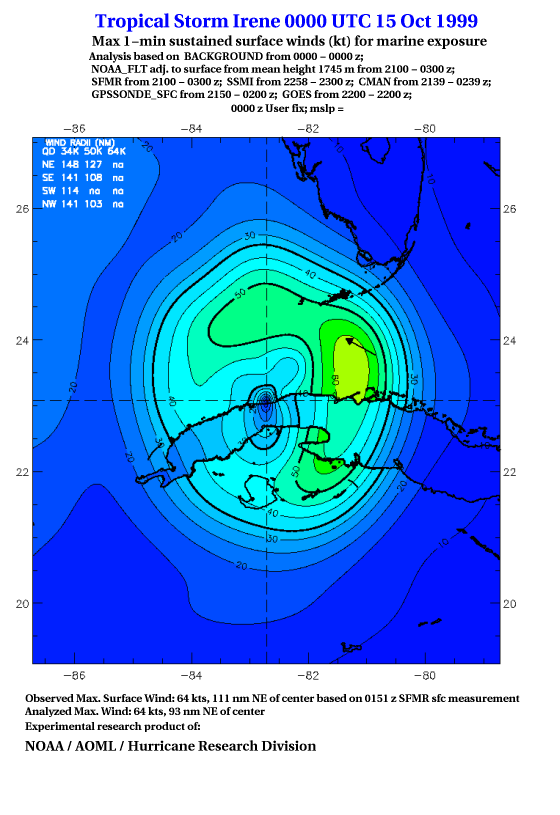 As a public service we are hosting the legacy H*wind archive that was formerly available through NOAA. Most of the archive was conducted in real-time so data collected after the analysis time were not available. Methods used to conduct the analyses evolved over the years. Grid spacing is on the order of 6 km and maximum domain size varies but is typically 8 x 8 degrees. There are known errors in some of the data coverage, mapping, and gridded products. For more information on the archive please go here. For realtime and post storm analysis of the 2014 season and a revised historical archive go here.