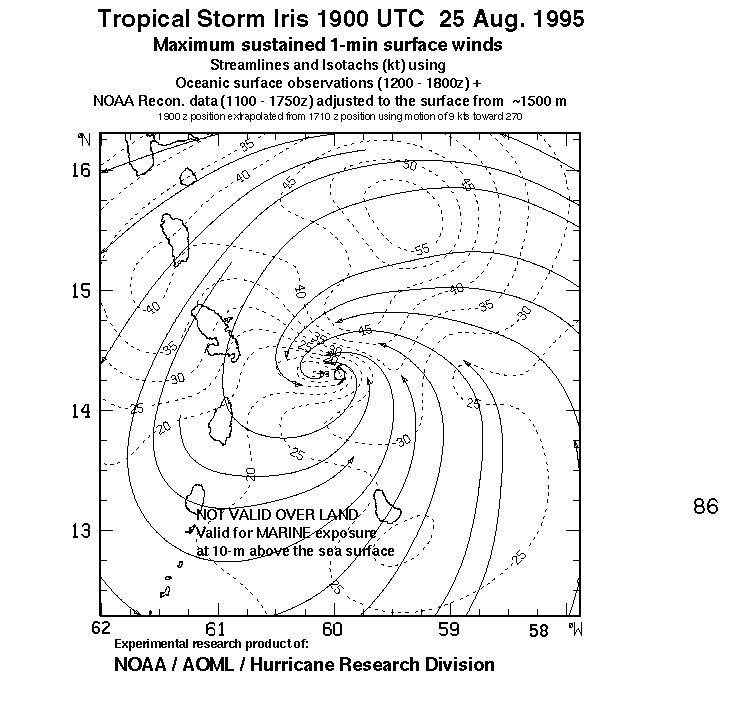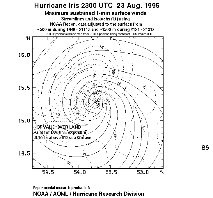 As a public service we are hosting the legacy H*wind archive that was formerly available through NOAA. Most of the archive was conducted in real-time so data collected after the analysis time were not available. Methods used to conduct the analyses evolved over the years. Grid spacing is on the order of 6 km and maximum domain size varies but is typically 8 x 8 degrees. There are known errors in some of the data coverage, mapping, and gridded products. For more information on the archive please go here. For realtime and post storm analysis of the 2014 season and a revised historical archive go here.