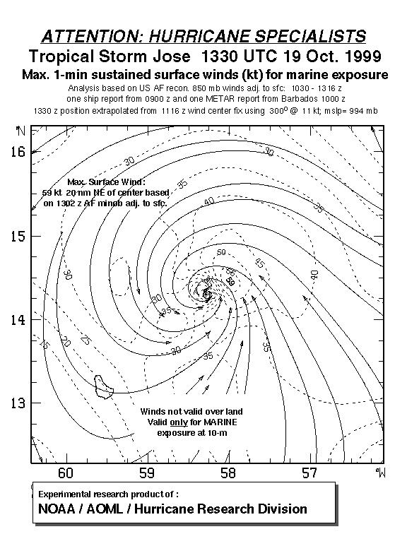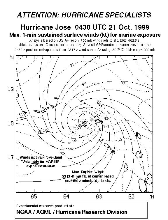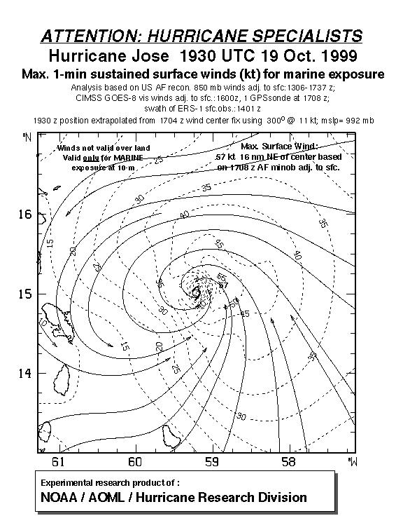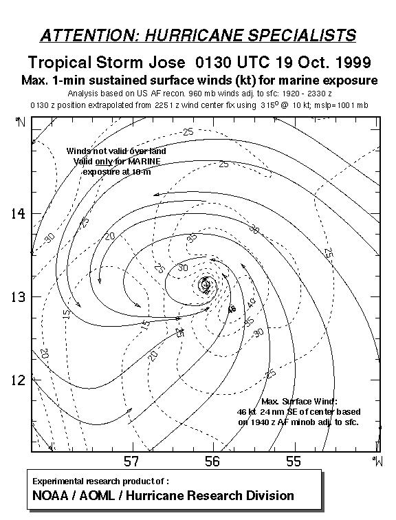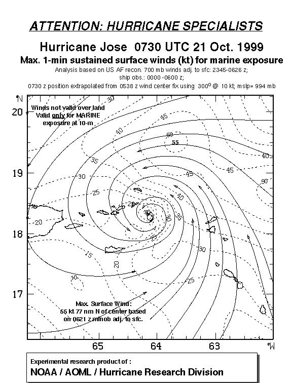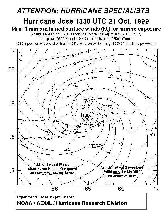 As a public service we are hosting the legacy H*wind archive that was formerly available through NOAA. Most of the archive was conducted in real-time so data collected after the analysis time were not available. Methods used to conduct the analyses evolved over the years. Grid spacing is on the order of 6 km and maximum domain size varies but is typically 8 x 8 degrees. There are known errors in some of the data coverage, mapping, and gridded products. For more information on the archive please go here. For realtime and post storm analysis of the 2014 season and a revised historical archive go here.