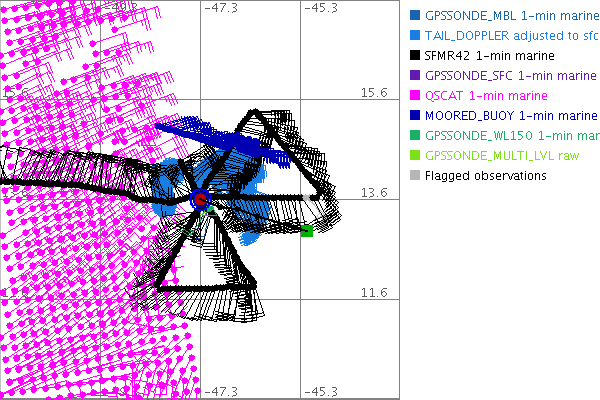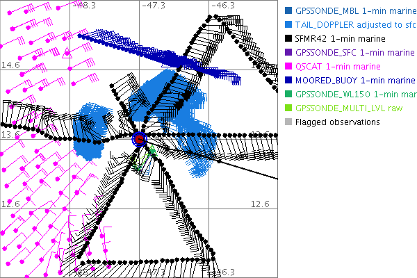 As a public service we are hosting the legacy H*wind archive that was formerly available through NOAA. Most of the archive was conducted in real-time so data collected after the analysis time were not available. Methods used to conduct the analyses evolved over the years. Grid spacing is on the order of 6 km and maximum domain size varies but is typically 8 x 8 degrees. There are known errors in some of the data coverage, mapping, and gridded products. For more information on the archive please go here. For realtime and post storm analysis of the 2014 season and a revised historical archive go here.