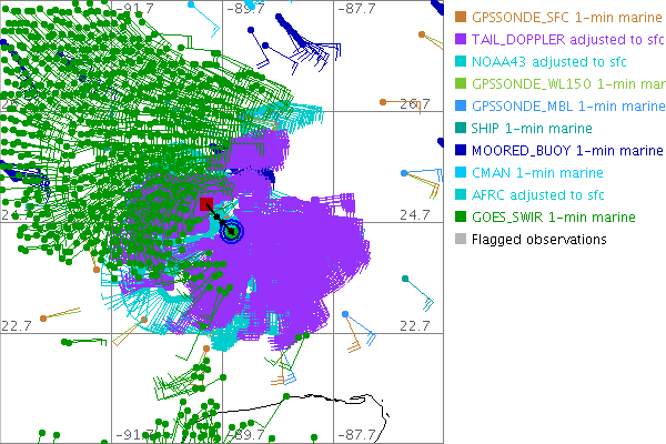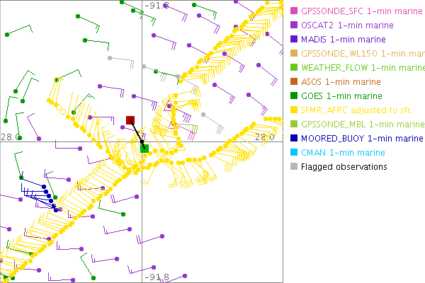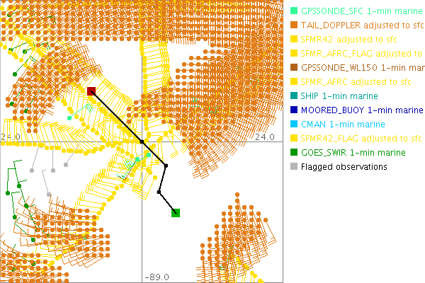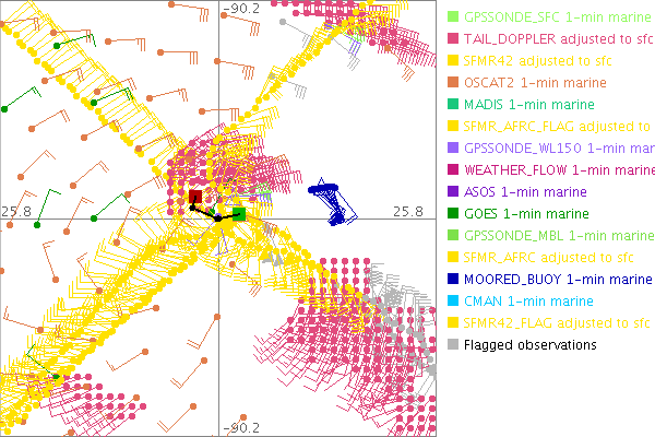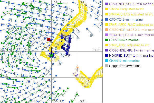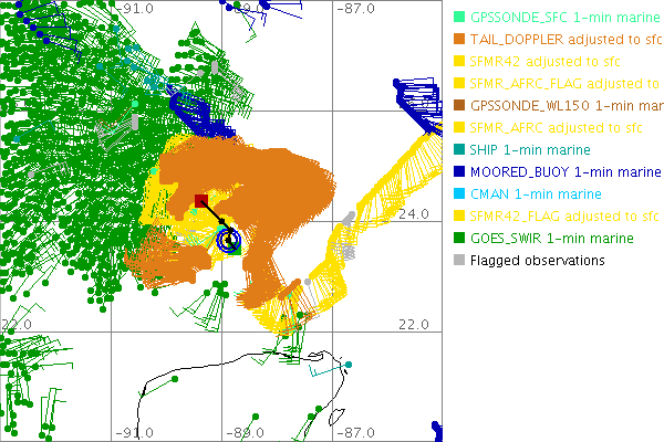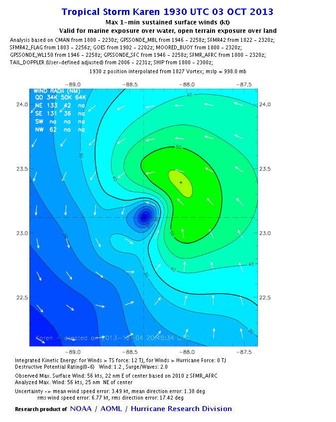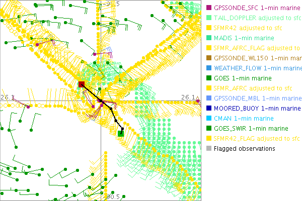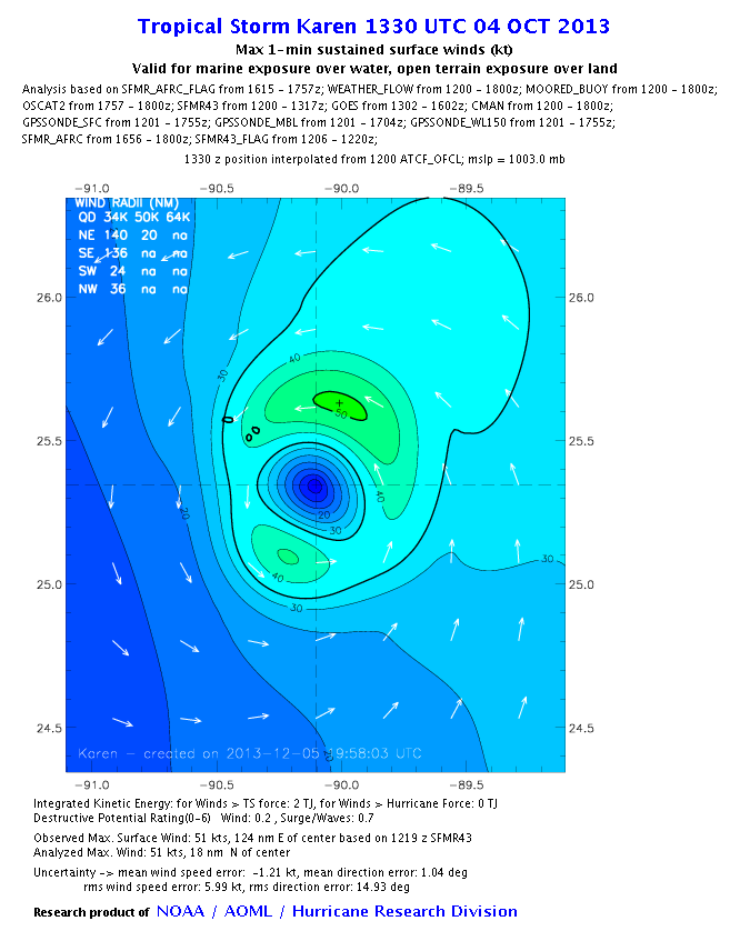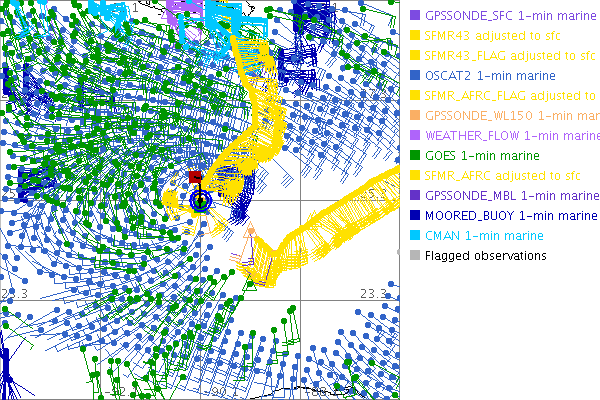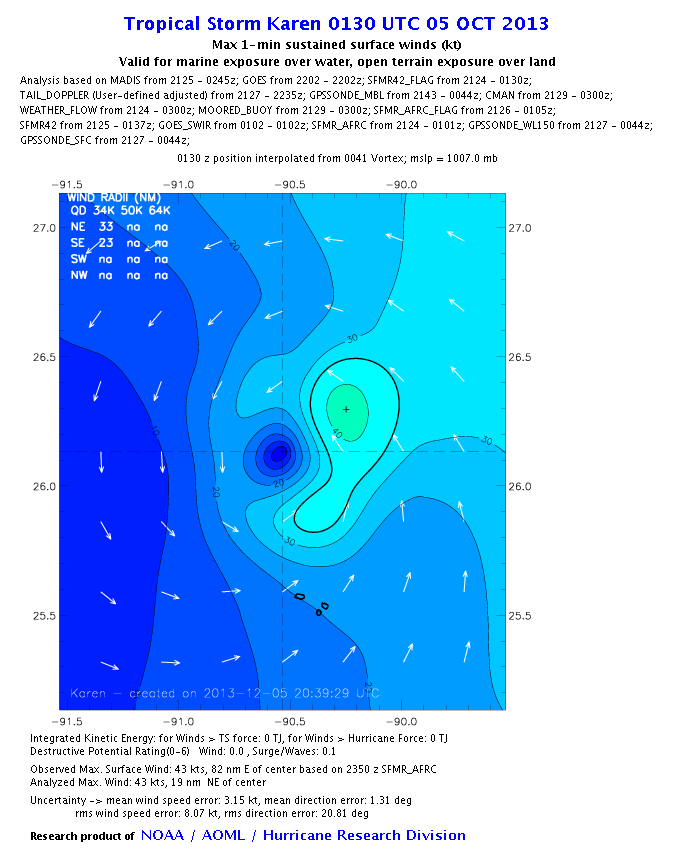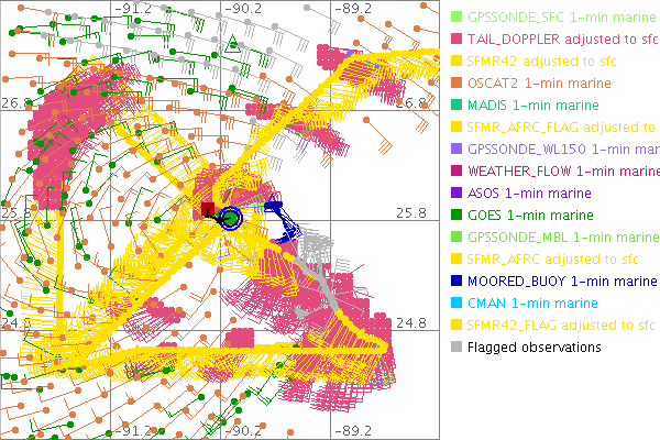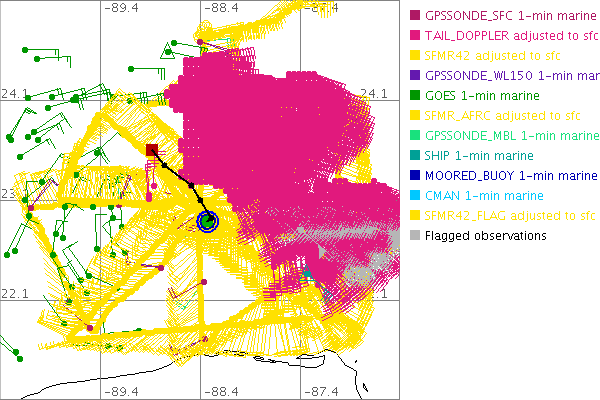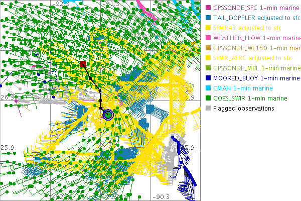As a public service we are hosting the legacy H*wind archive that was formerly available through NOAA. Most of the archive was conducted in real-time so data collected after the analysis time were not available. Methods used to conduct the analyses evolved over the years. Grid spacing is on the order of 6 km and maximum domain size varies but is typically 8 x 8 degrees. There are known errors in some of the data coverage, mapping, and gridded products. For more information on the archive please go here. For realtime and post storm analysis of the 2014 season and a revised historical archive go here.