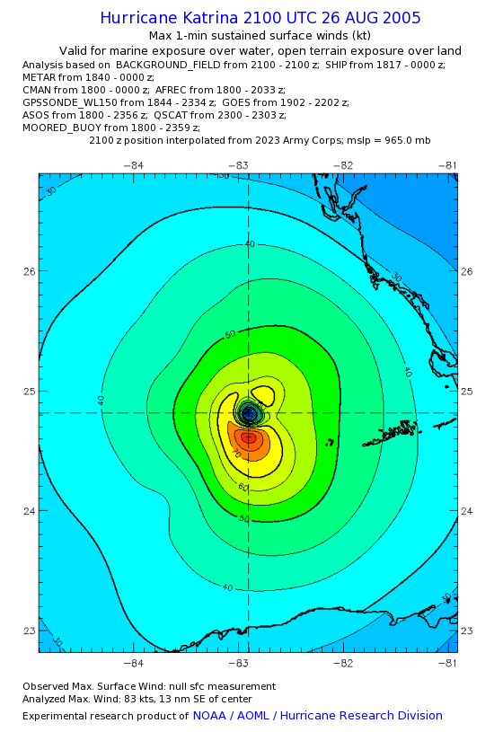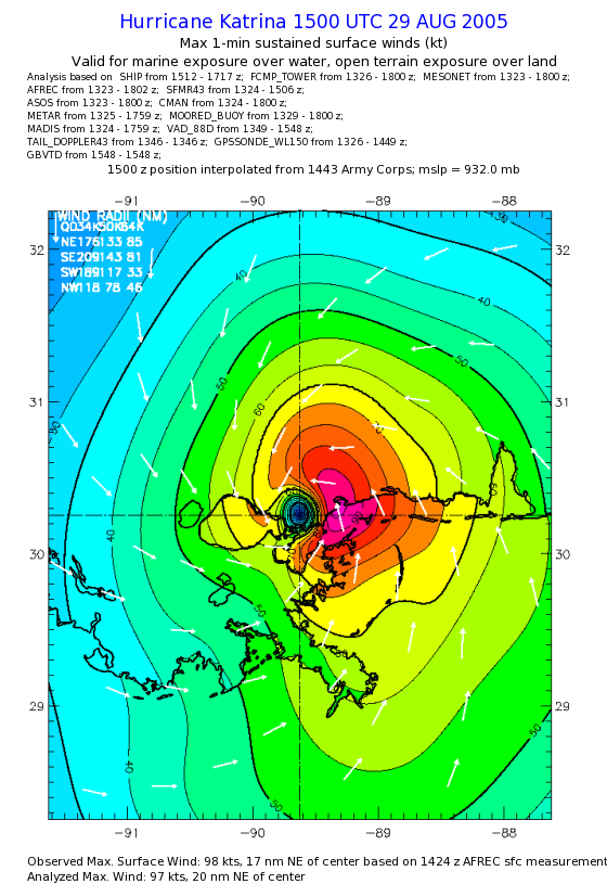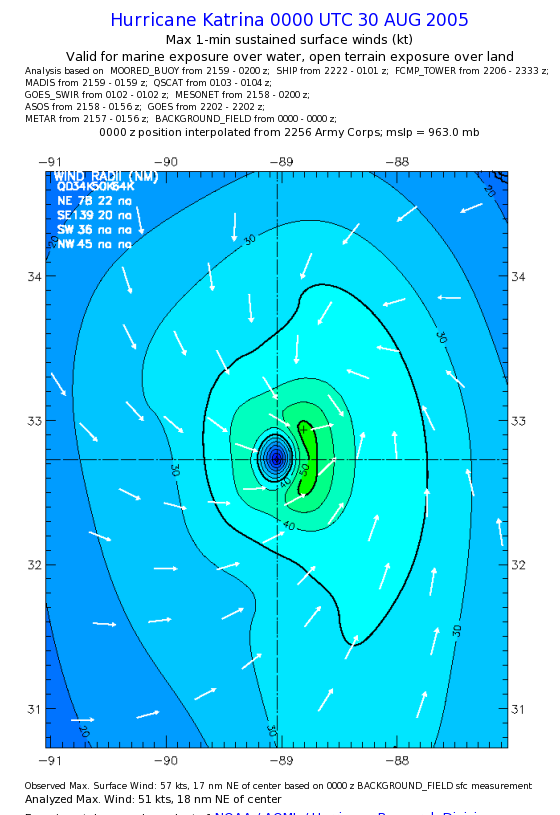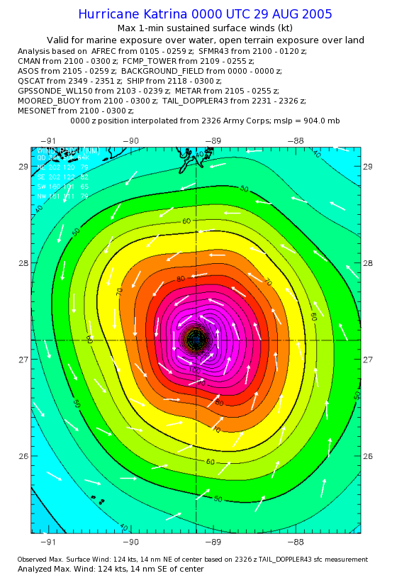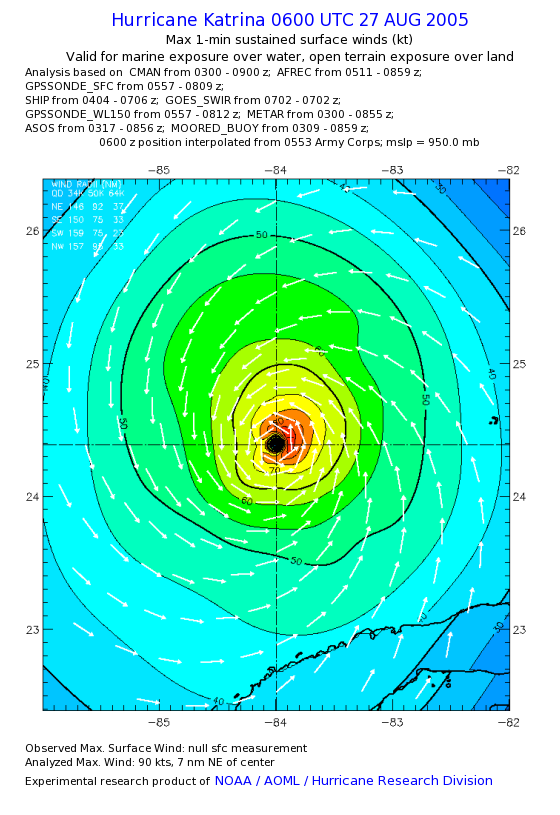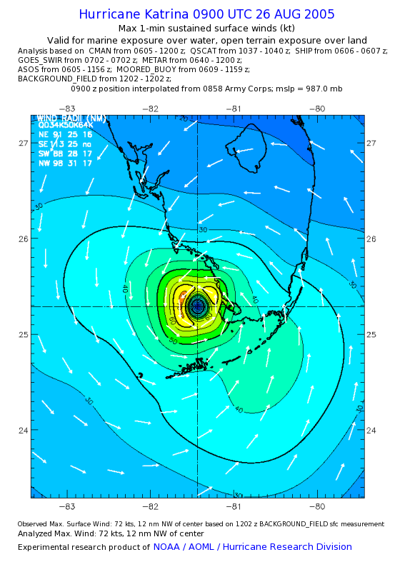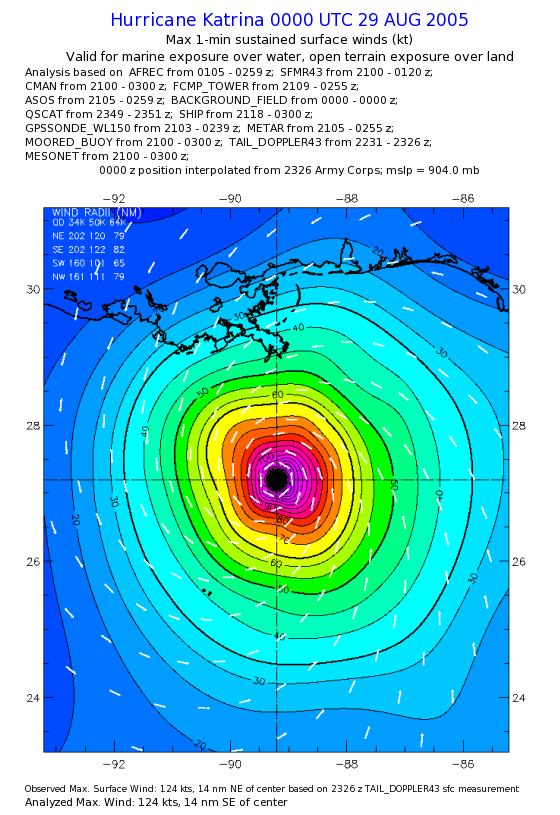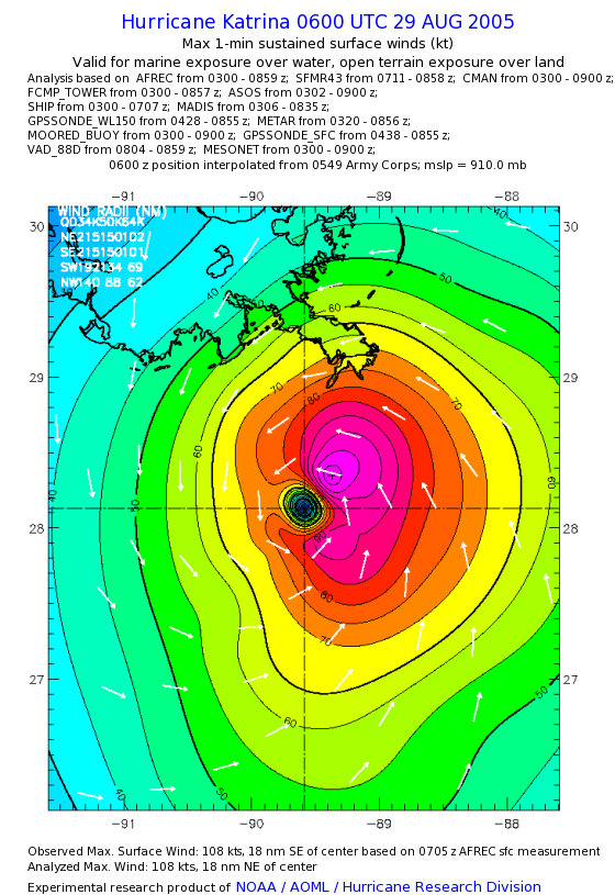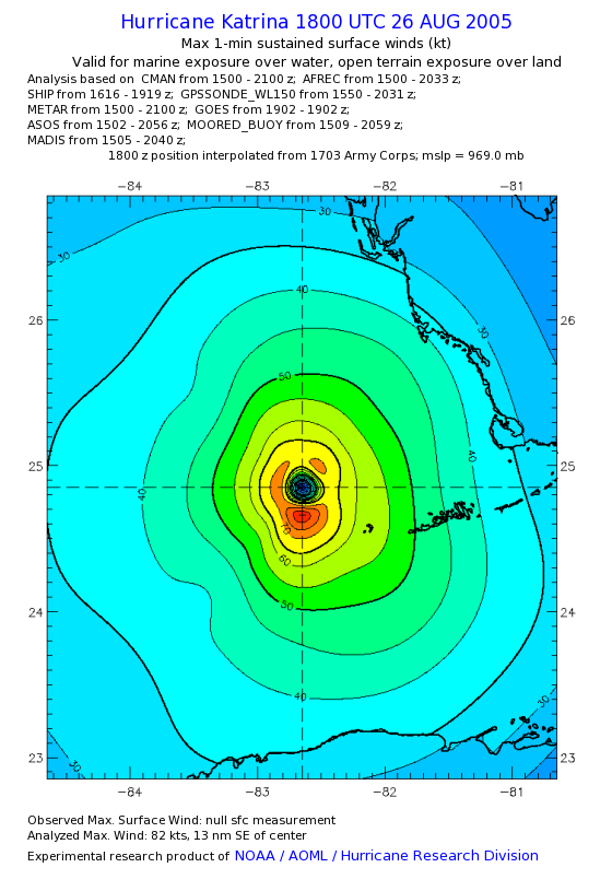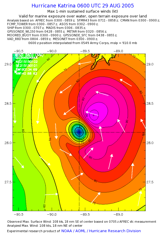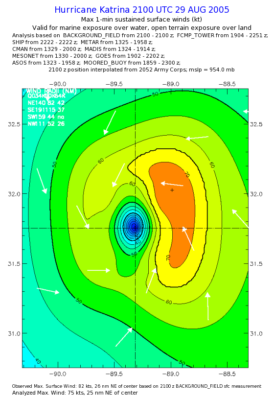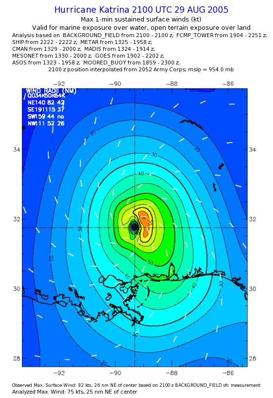 | The following maximum sustained wind swaths for Hurricane Katrina are preliminary results and will be subject to further modifications as new data become available. | |||||||||||
